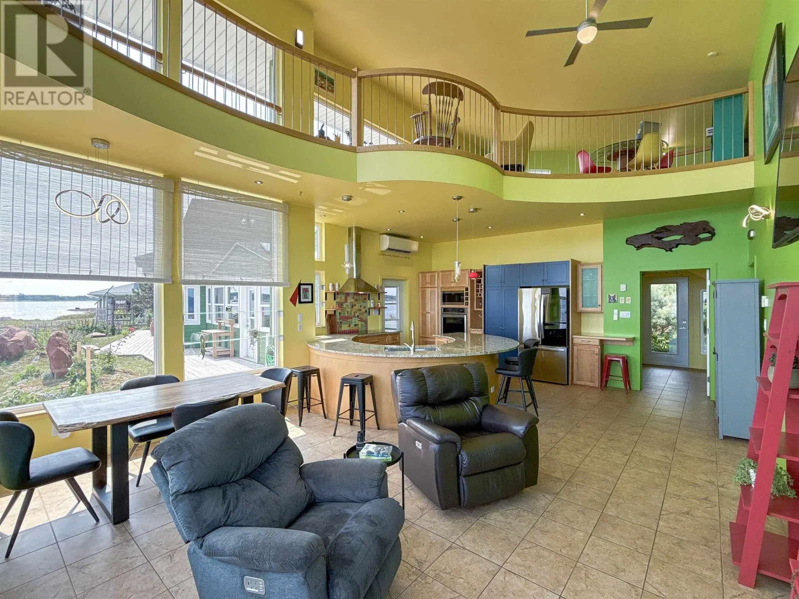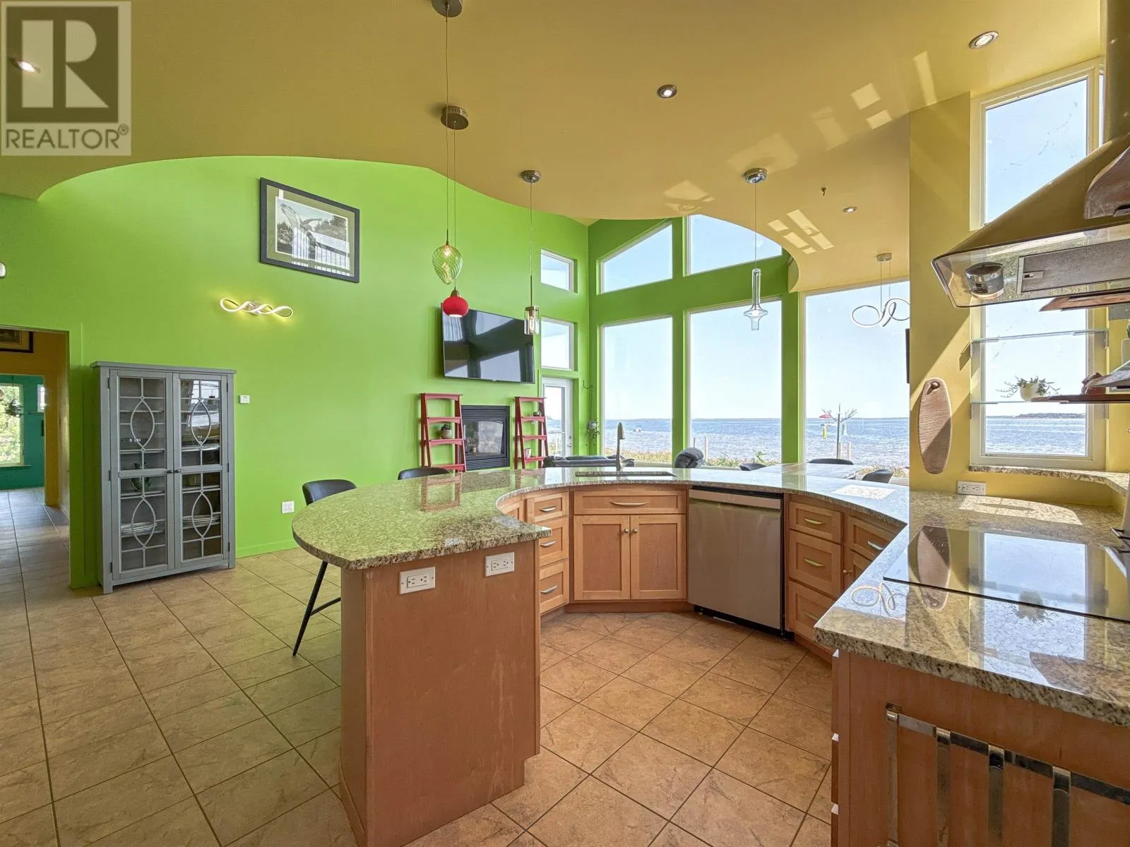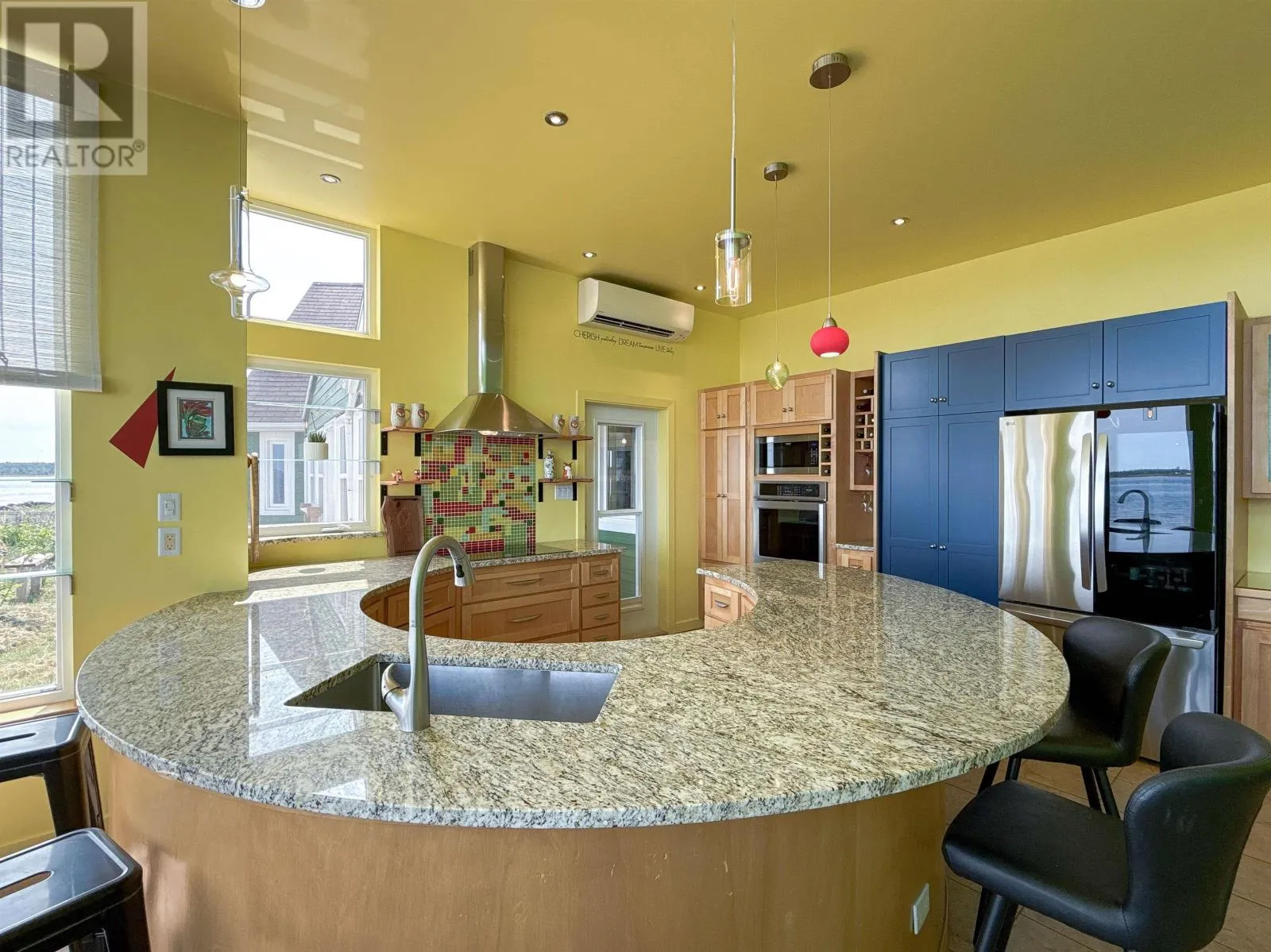 A Rare and Truly Exceptional opportunity to own a year-round waterfront retreat on the stunning Tracadie Bay. "Heron Cove" was Designed and Custom Built with Artistic Vision and Creative Flair, this one-of-a-kind property offers spectacular panoramic water views and complete privacy, making it ideal as a full-time residence or a luxury getaway. The interior is flooded with natural light from dramatic floor-to-ceiling windows, showcasing stunning vistas across the shoreline. The main level features an open-concept layout with soaring ceilings, a Unique kitchen equipped with a granite semi-circular island, under-mount sink, and custom cabinetry. The spacious living and dining areas flow seamlessly, while a loft family room above overlooks the main floor, enhancing the sense of openness and airiness and a view that takes your breath away. There are two primary bedrooms on the main level, with a walk-through closet and private access to a spectacular ?walk-in tub room,? where you can relax in a bath while enjoying the sights and sounds of the surrounding nature, plus a full bathroom with a walk-in shower and dual vanity space. Both Bedrooms have direct access to the deck. The main floor is connected to the garage with a breezeway used as a three-season garden room, just the perfect indoor/outdoor space. There is a private guest suite behind the garage that features the third bedroom, a living room, kitchenette, and an en suite bathroom perfect for extended family, guests, or generating rental income. Outdoors, the home is surrounded by extensive, meticulously maintained perennial gardens, a reading garden, a walkway leading to the shoreline that has been fully protected with immense Shoreline Protection. This is a special opportunity to own a showpiece home that combines artistic design, luxury comfort. Built to the highest level of Quality, Workmanship and Materials used to create this Exceptional Home!! (id:27476)