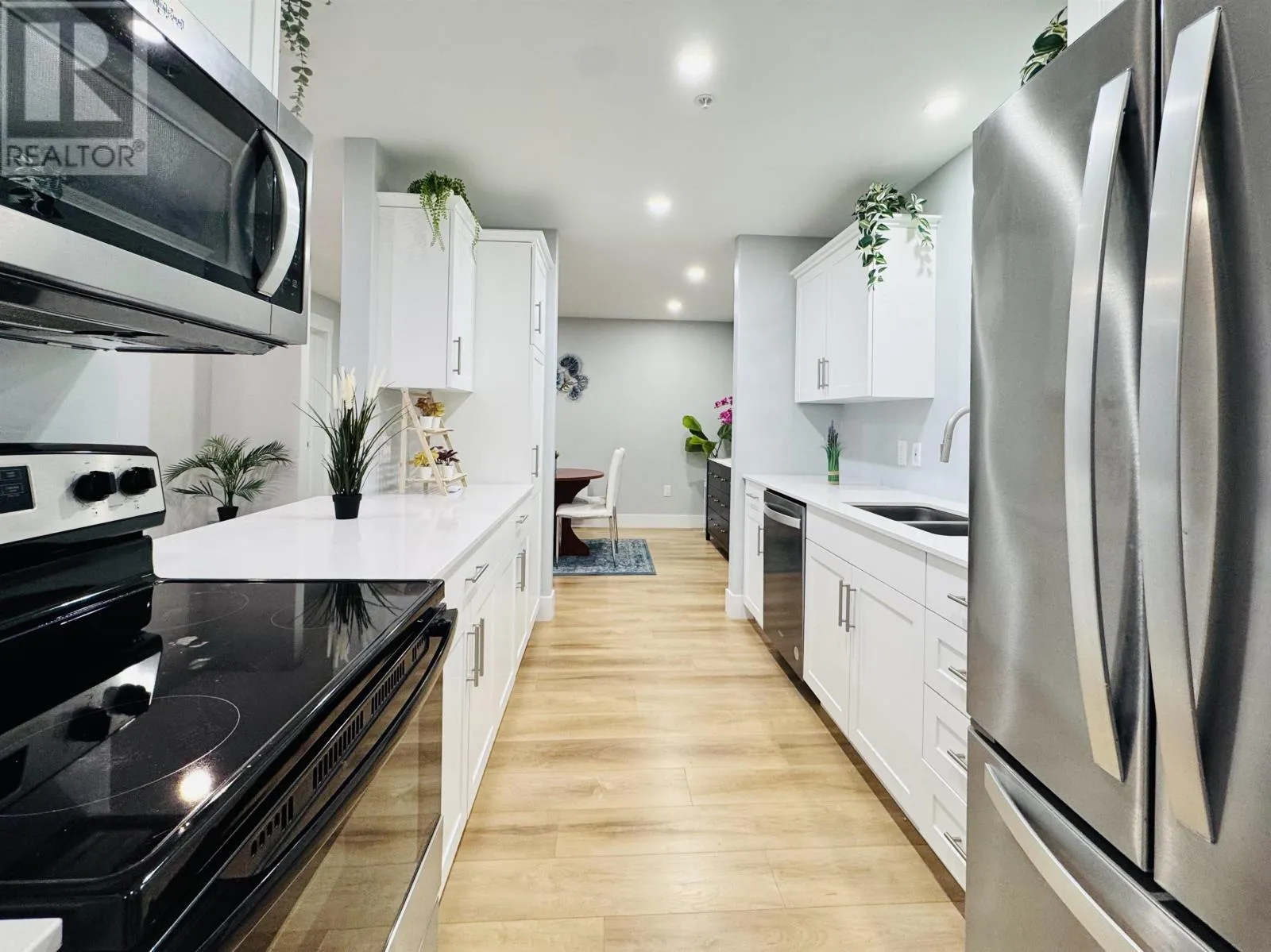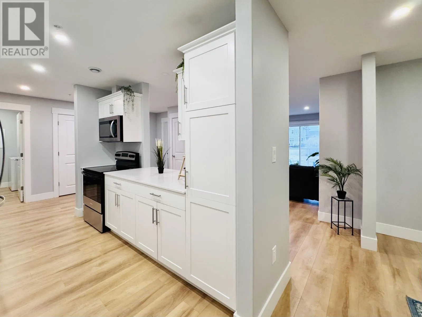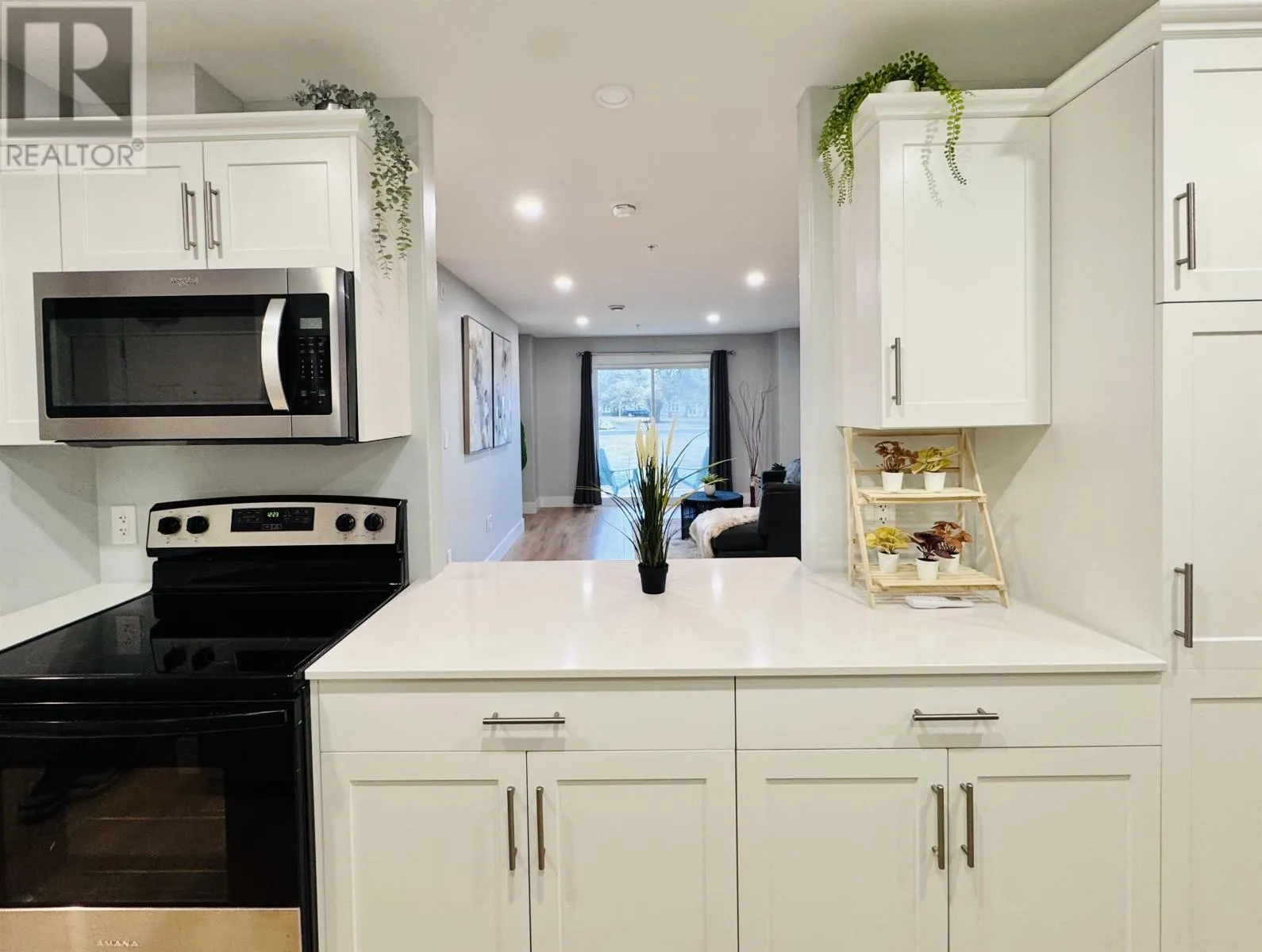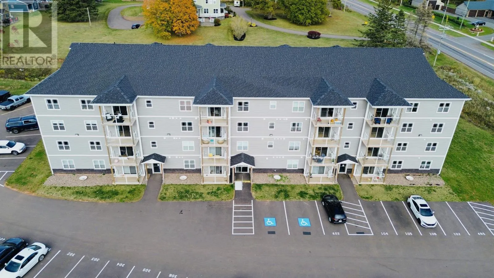 Located in the desirable Montgomery Heights area of Charlottetown (East Royalty), this bright and modern third-floor corner condo offers 1,275 sq. ft. of comfortable living with two bedrooms and two full bathrooms. The open-concept layout features a sun-filled living and dining area, a stylish white kitchen with quartz countertops, stainless steel appliances, and island seating, plus access to a private patio with lovely views. The spacious primary bedroom includes a walk-in closet and ensuite with walk-in shower, while the guest bedroom and full bath provide added flexibility. This well-maintained unit also includes in-suite laundry with extra storage, new custom blinds, laminate and ceramic flooring, and efficient heating and cooling with a heat pump and electric wall radiators. The secure, soundproof building offers an elevator, buzzer entry, and assigned parking, with condo fees covering water, sewer, lawn care, snow removal, and building maintenance. Conveniently located near schools, public transit, and all Charlottetown amenities, this home is move-in ready and still protected under a Lux Home warranty. Sold as is. (id:27476)