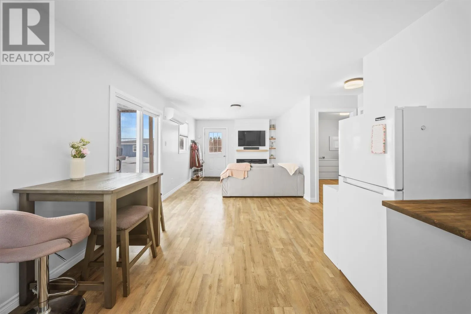 (TO BE MOVED) This charming 2 bedroom 1 bath cottage built in 2021 offers the perfect blend of comfort + simplicity + modern style. Measuring 24 x 28 the home features a bright open concept kitchen and living area that feels welcoming and functional (ideal for relaxing or entertaining). The living space is highlighted by a beautiful built-in electric fireplace with mounted TV above creating a cozy focal point to enjoy year round/ A heat pump provides efficient heating and cooling and the home is fully winterized making it a comfortable four-season cottage or year-round residence. The property includes two well-sized bedrooms and a full bathroom with modern finishes. Neutral colours + clean lines + easy-care flooring throughout give the space a fresh move-in ready feel. Whether you are looking for a weekend getaway or a year-round cottage or exploring the simplicity of tiny home living this newer property offers a fantastic opportunity to enjoy a low-maintenance lifestyle in a comfortable and modern space. (id:27476)