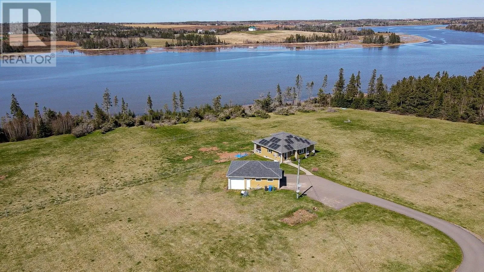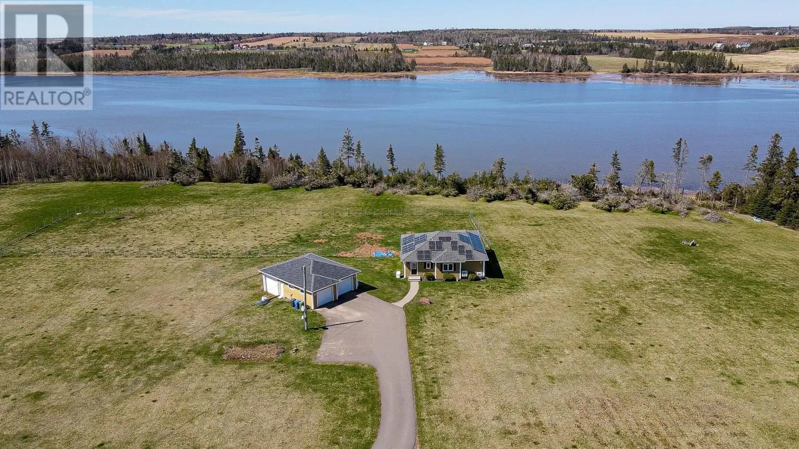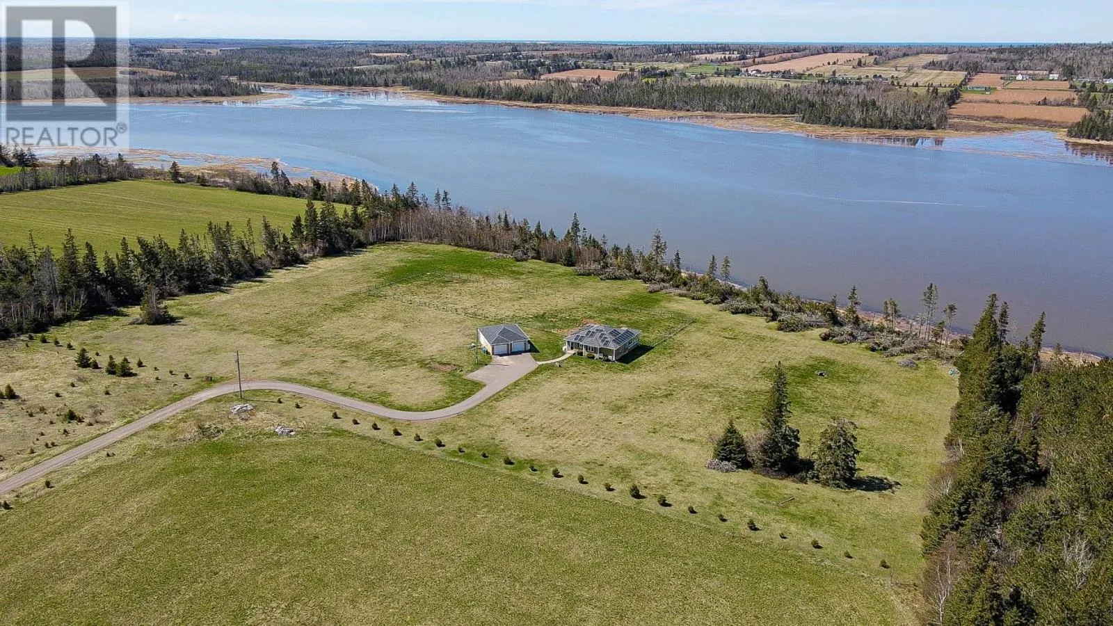 Fort Augustus Road to Five Houses Road to Shore Road, then left onto Patti Lane. Beautiful Water Front Retreat situated on the Hillsborough River approximately 15 minutes east of the capital city of Charlottetown. This idyllic setting has approximately 700 feet of river frontage. The property features hardwood and ceramic flooring throughout, entertain in the beautiful kitchen with custom built cabinets and a center island, The large great room features huge windows that overlook the water, 2 good size bedroom and 2 bathroom, a mud room, laundry and a private gym area. This property also features a large 3 car garage and work area. Relax on the waterside deck and watch river go by or you can enjoy the river with a kayak or canoe. The 8 acres gives you ample space and privacy. Includes; Fridge, stove, microwave, dishwasher, Bar fridge, Bar chairs, two Propane tanks, Generact. Bowflex treadmill, robotic window cleaner. (id:27476)