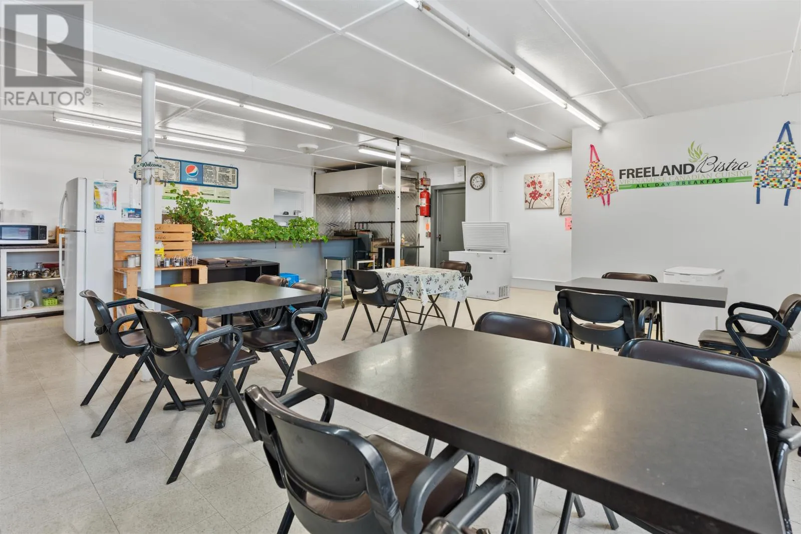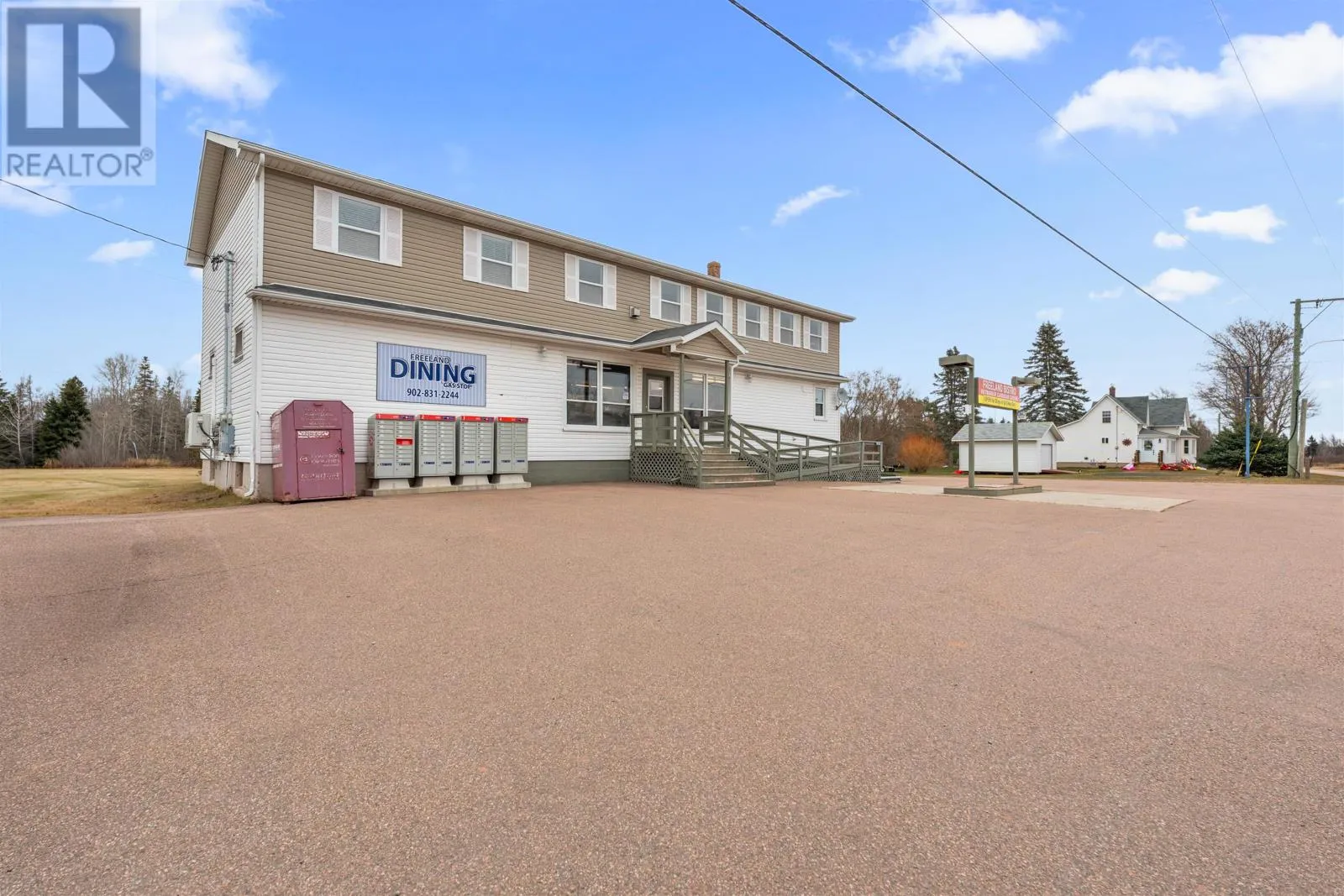 Head west on Highway #2, turn right onto the Conway Road Rte 175. Drive to the end of the Conway Road. Property is located straight ahead at the intersection. Welcome to an exceptional opportunity in the heart of Freeland. Home to the well-known Freeland Bistro ? Vietnamese & Canadian Cuisine. This versatile commercial property offers tremendous potential for entrepreneurs, investors, or those seeking a unique live/work lifestyle in a well-maintained building. The main level features a fully equipped restaurant and convenience store space, including all contents, chattels, and commercial kitchen equipment ready for immediate operation. Previously a year-round business, the property was converted to seasonal use, and as a result, the fuel provider removed the pumps. The underground tanks and required infrastructure remain in place, offering the potential to reinstate fuel service with a year-round business model. The possibilities here are truly endless. The lower level offers a generous unfinished area with an unloading door, ideal for storage, expansion, or transforming into additional revenue-generating space. The upper level features over 1,800 sq. ft. of bright residential living quarters, including a spacious open-concept living area, three bedrooms, and a full bath?perfect for owner occupancy, staff housing, or long-term rental income. Adding even more value, the property includes a 40' x 22' attached garage with an unfinished loft area, offering further development potential. Outdoors, the pavement and parking area are in excellent condition, providing ample customer parking and easy access year-round. This is a rare chance to acquire a turn-key commercial property with multiple income streams and room to expand. Financial statements available with a signed NDA. Don?t miss the opportunity to bring your vision to life. (Bedrooms photos are digitally staged). (id:27476)