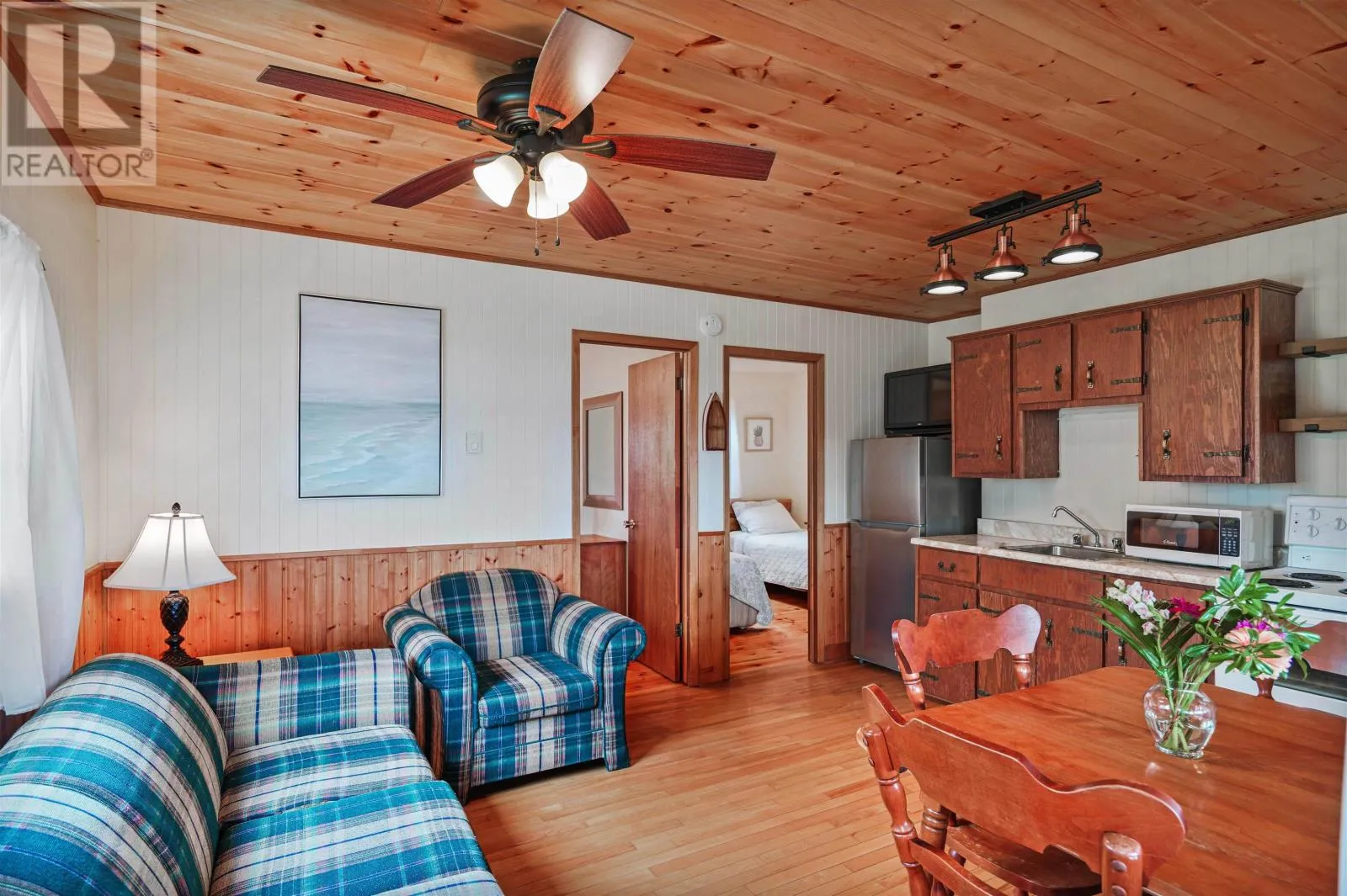 Tucked along the gently sloping shores of the Brudenell River, Cottage 6 at DeRoma offers a private and peaceful escape where summer still feels like summer. Set within a 6.5 wooded and open acres subdivision with land ownership of 0.033 acres this well-spaced three bedroom seasonal cottage offers serene water views, a walkable river beach, and the kind of quiet rarely found in today's world. Inside, warm pine walls frame a classic open-concept layout with an eat-in kitchen, a cozy living area, three comfortable bedrooms, and a full bathroom. The screened sunporch and private deck offer a front-row seat to sunrises, evening skies, and the surrounding green space that stretches to the water's edge. The real magic lies just steps from your door. The sandy beach is ideal for swimming, wading, kayaking, clam digging, or a bonfire under the stars. The property is well set back from the road and shielded by mature trees, offering a truly tranquil and family-friendly setting. Each cottage is generously spaced to preserve privacy. Located only two kilometers from the charming waterfront village of Georgetown, with its marina, theatre, and summer cafés, and less than six kilometers from the Island?s premier golf courses at Dundarave and Brudenell, this location combines quiet seclusion with access to Prince Edward Island's best attractions. This turnkey offering includes furniture, appliances, and everything needed for seasonal living from May through October. The monthly condo fee of two hundred dollars includes water, septic, lawn care, and road maintenance. Whether you seek a personal retreat or an investment in one of PEI's most naturally beautiful settings, Cottage 6 delivers comfort, character, and waterfront living with timeless appeal. (id:27476)