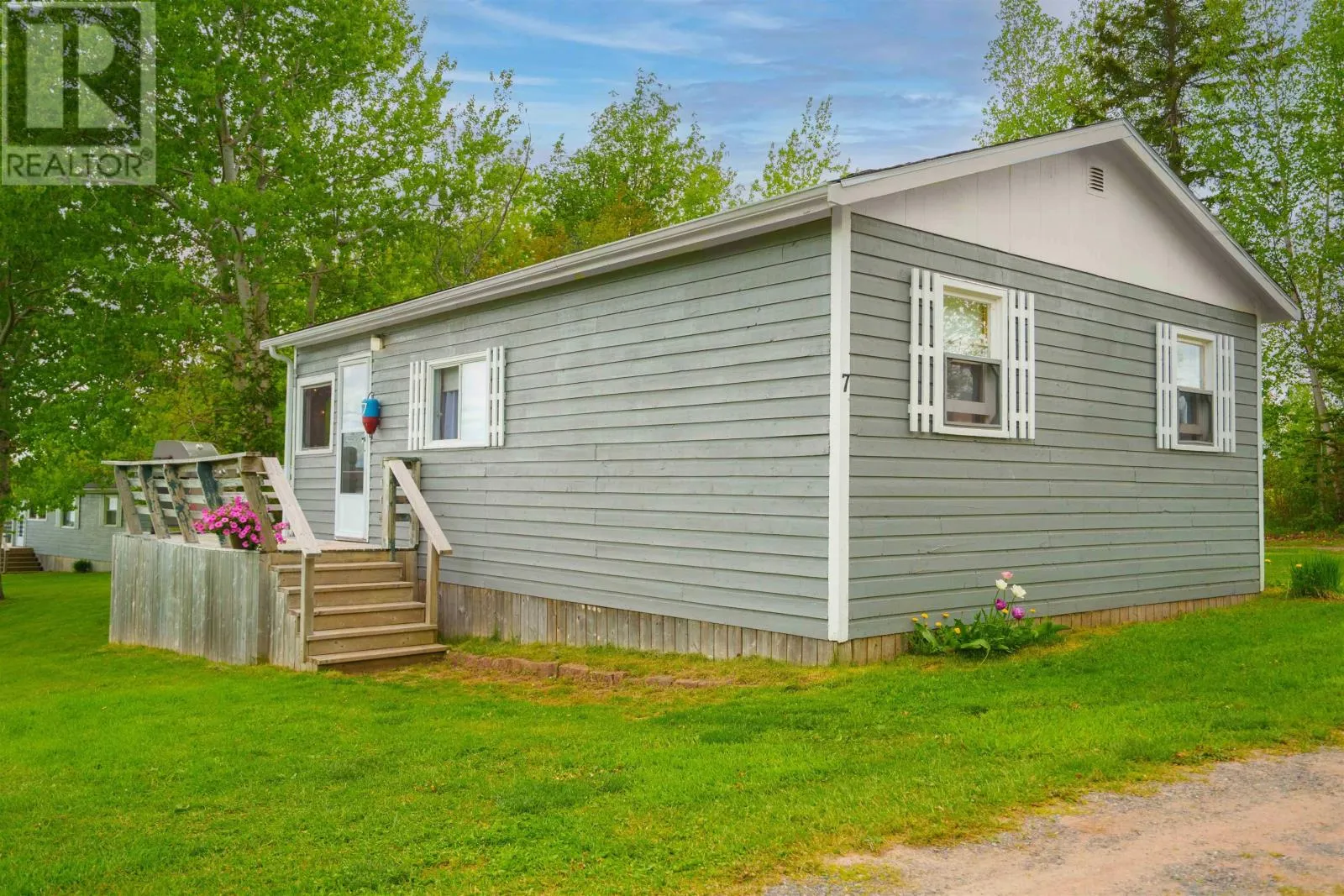 Tucked along the gently sloping shores of the Brudenell River, Cottage 7 at DeRoma offers a private and peaceful escape where summer still feels like summer. Set within a 6.5 wooded and open acres subdivision with land ownership of 0.028 acres this well-spaced three-bedroom seasonal cottage offers serene water views, a walkable river beach, and the kind of quiet rarely found in today's world. Inside, warm pine walls frame a classic open-concept layout with an eat-in kitchen, a cozy living area, two comfortable bedrooms, and a full bathroom. The screened sunporch and private deck offer a front-row seat to sunrises, evening skies, and the surrounding green space that stretches to the water's edge. The real magic lies just steps from your door. The sandy beach is ideal for swimming, wading, kayaking, clam digging, or a bonfire under the stars. The property is well set back from the road and shielded by mature trees, offering a truly tranquil and family-friendly setting. Each cottage is generously spaced to preserve privacy. Located only two kilometers from the charming waterfront village of Georgetown, with its marina, theatre, and summer cafés, and less than six kilometers from the Island's premier golf courses at Dundarave and Brudenell, this location combines quiet seclusion with access to Prince Edward Island's best attractions. This turnkey offering includes furniture, appliances, and everything needed for seasonal living from May through October. The monthly condo fee of two hundred dollars includes water, septic, lawn care, and road maintenance. Whether you seek a personal retreat or an investment in one of PEI's most naturally beautiful settings, Cottage 7 delivers comfort, character, and waterfront living with timeless appeal. (id:27476)