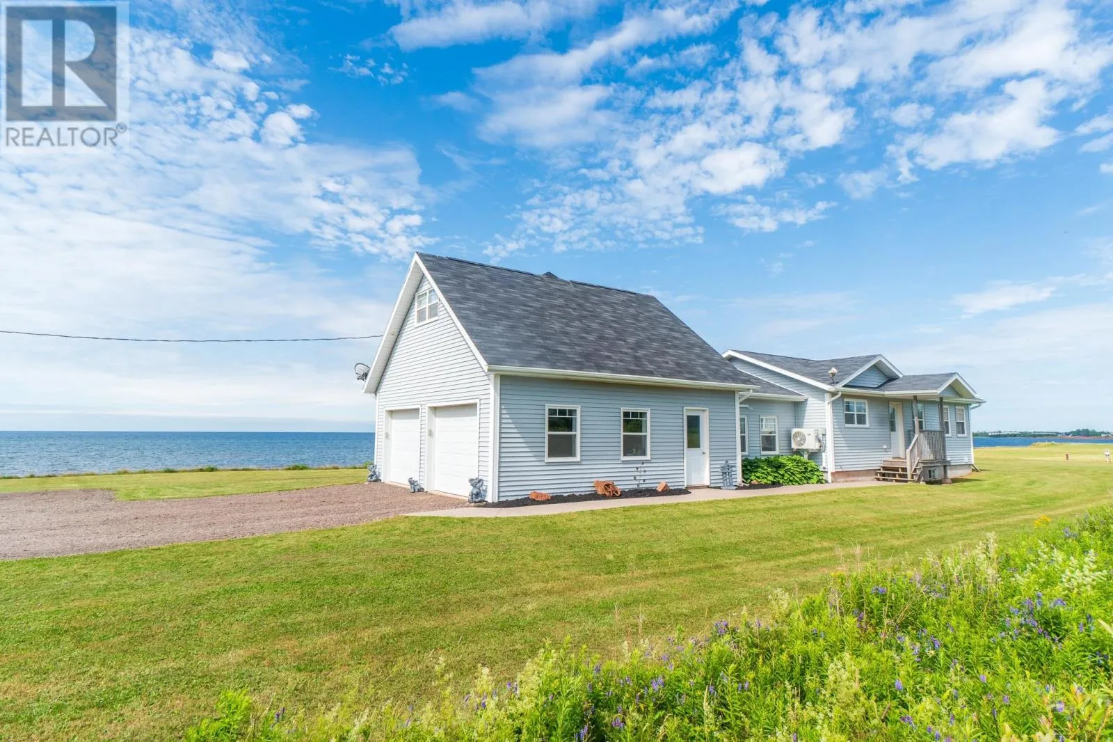 Waterfront living with breathtaking views of the Northumberland Strait! Welcome to 18 Shore Rd E in the beautiful seaside community of Hampton, PEI. Built in 2018, this unique waterfront property offers a rare opportunity to own a spacious and versatile home on a stunning 1.7 acre lot with an incredible 555 feet of shoreline along the Northumberland Strait. The main home features a bright and inviting open-concept kitchen and dining area, a spacious living room with water views, two well-appointed bedrooms, and a full bathroom. Adding to the property's appeal is a second living space located above the attached garage, with the lower level of the garage featuring the kitchen/dining area, as well as the home's laundry room. This guest suite includes one bedroom, one full bathroom, and a cozy den area that looks directly out over the water - the perfect retreat for visitors, extended family, or even a rental opportunity. Step outside and you'll find a thoughtfully constructed retaining wall along the shoreline, ensuring peace of mind and enhanced use of your waterfront. Life on the beach will be perfect - at low tide you can walk for miles, and when the tides in you'll never want to leave the water. The expansive yard offers ample space for outdoor entertaining, gardening, family bonfires overlooking the water, and even future possibilities with the space including building an in-law suite addition to the existing home or perhaps place a tiny home on the vacant land beside the existing house. Whether it is a morning coffee on the deck or sunset dinners overlooking the ocean and distant view of the Confederation Bridge, this is a place where summer memories are made. Just a short drive (or even walk) to Victoria-by-the-Sea and only 30 minutes to Charlottetown, this property is one you'll want to check out! (id:27476)