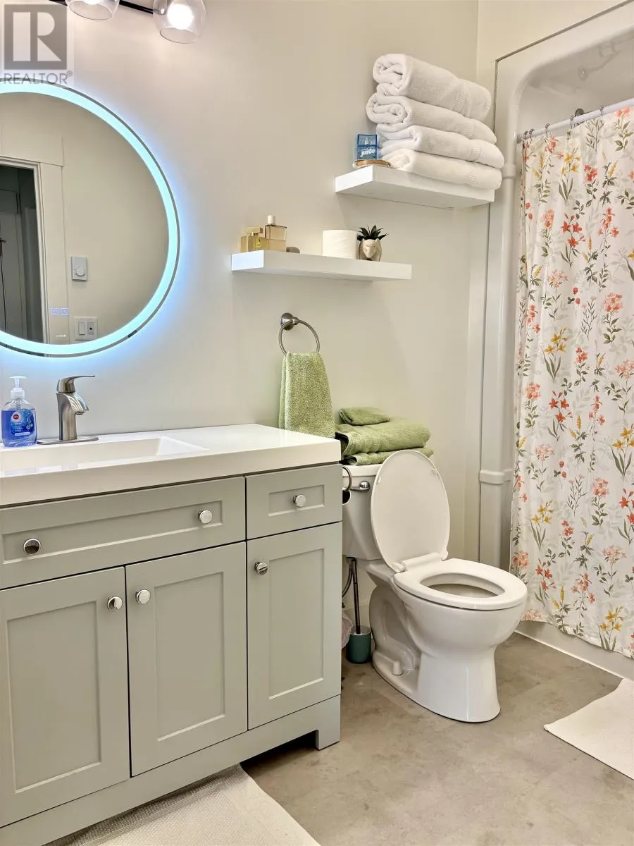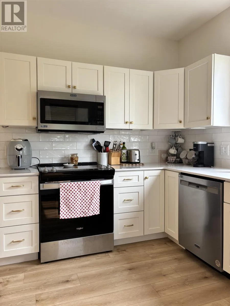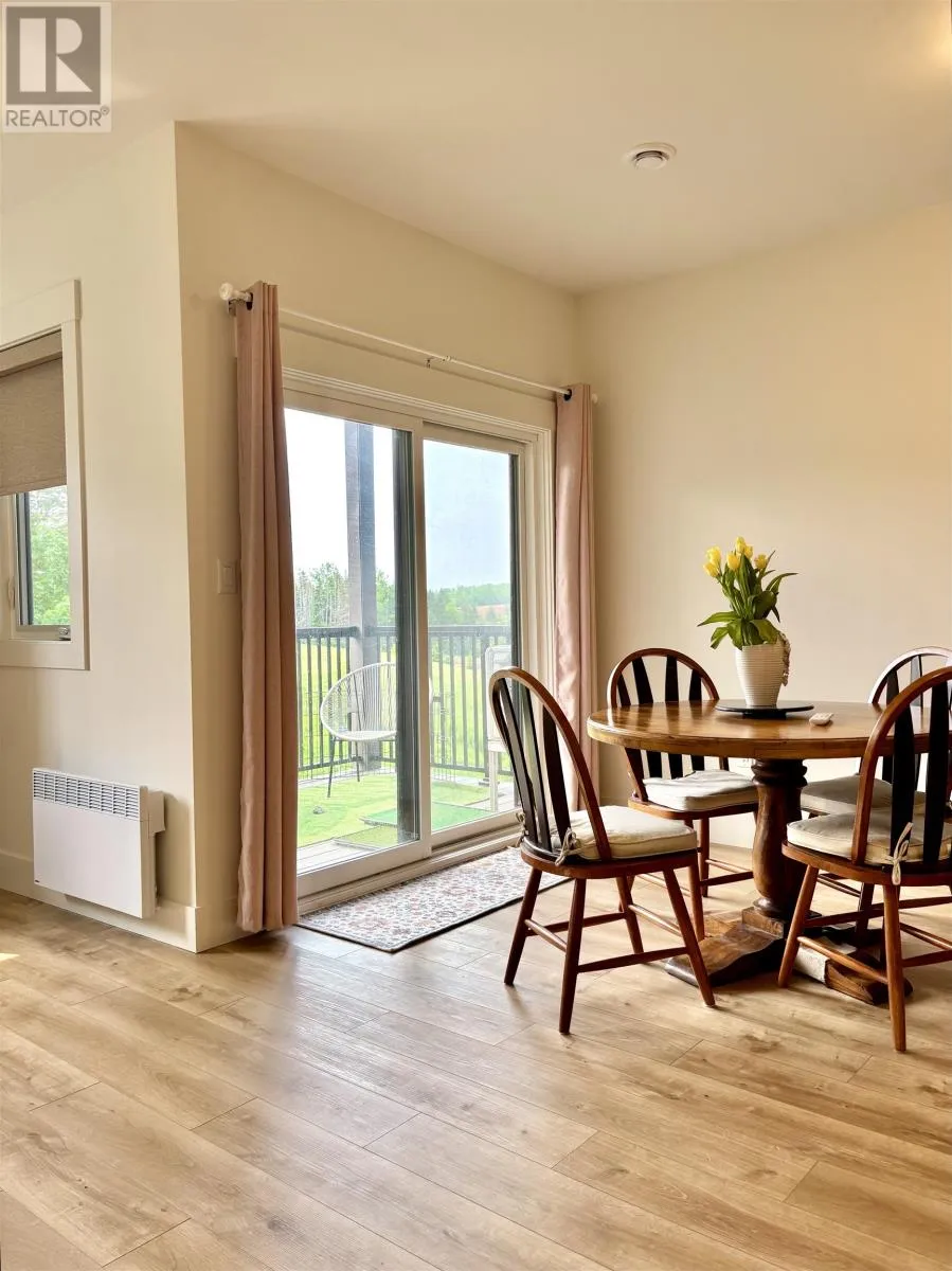 Located in Hunter River, 19719 Route 2 in the big Clock tower building "The Churchill" condominium units. Welcome to "The Churchill" in beautiful Hunter River, PEI! This second floor, 2 bedroom, 1 bathroom luxury condominium offers 890 square feet of modern, open concept living. Enjoy a bright, spacious interior, a sleek kitchen with high end finishes, and a private covered patio with serene woodland views. Both bedrooms are generously sized, with spacious closets. While the bathroom features stylish, contemporary fixtures and a warm light touch mirror, perfect for your morning routine. Extras include one assigned paved parking space along with first come first serve extra parking. You'll find access to a large common room, perfect for social gatherings. Ideally located between Charlottetown and Summerside. Not to mention, you're close to the Confederation Trail, Harmony House, Cavendish, and Rustico as well as many amenities, like the Hunter River Pharmacy, Irving, and so much more. Perfect as a year-round home or peaceful retreat?don?t miss this rare opportunity! The civic number is 303 but 203 on the official survey plan. (id:27476)