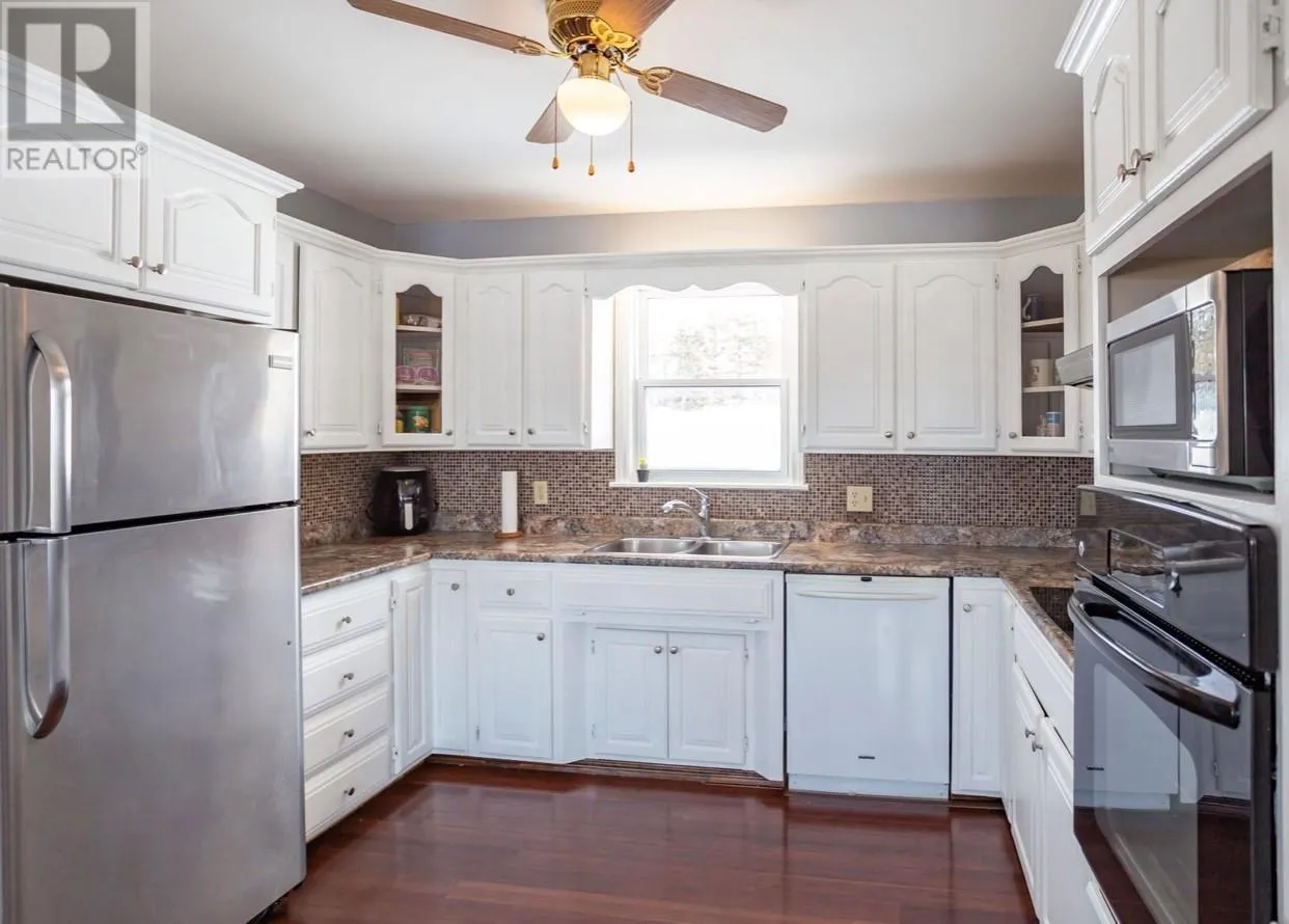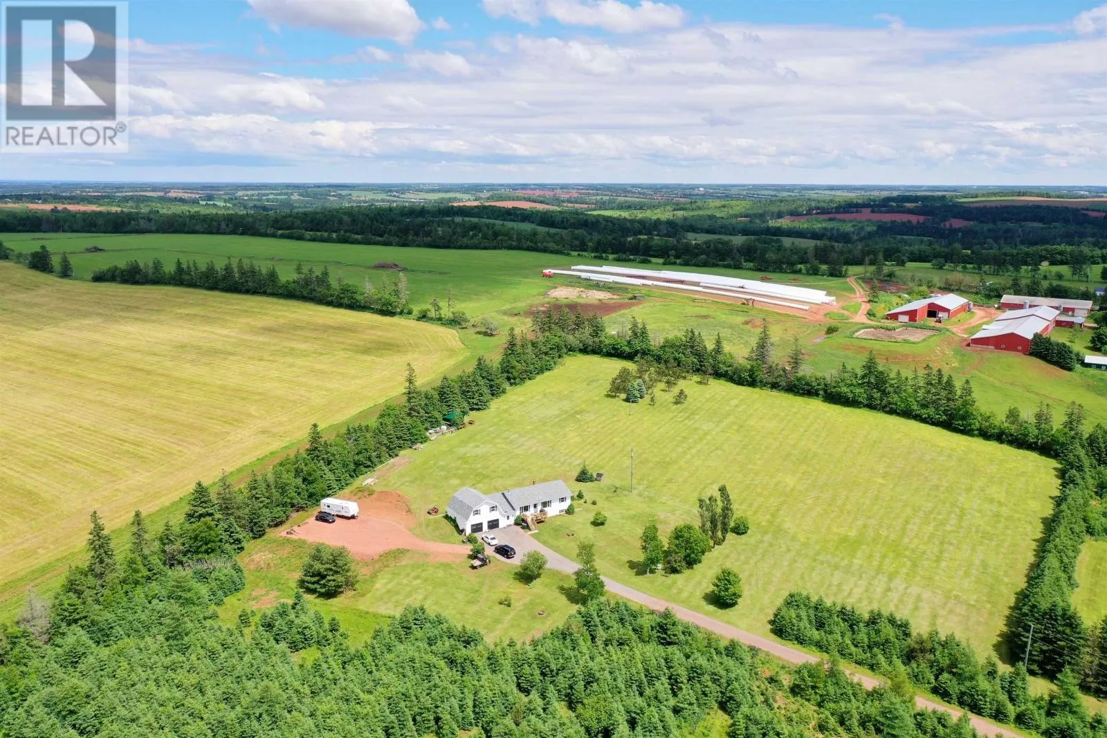 RTE 2 Hunter River Gorgeous 5 bedroom home on 6.77 private acres in central PEI with amazing 2,581 square feet. Only a short 20 minute drive to the city of Charlottetown for shopping, airport and QEH. Incredible countryside views nestled on a private setting among the rolling hills in Hunter River and close to everything such as beaches, golf courses, gas stations, parks, stores, schools, churches, banks, walk trails, restaurants, coffee shops, Harmony House & Lions club, community centre and so much more. This beautiful home features attached large 2 car garage, an open concept kitchen, dining & living room with new floors, fully equipped kitchen with fridge, oven, cooktop and dishwasher and a beautiful cozy propane fireplace in the living room. Main level laundry room and space off the entrance for an office. Wake up every morning and enjoy your coffee atmosphere in the stunning country setting on 6.77 acres. This well-appointed home has wonderful features large primary bedroom with large closets, heat pump and a patio door that leads to a private back deck. Main level also has 2 guest bedrooms and there is 2 other bedrooms downstairs with a second bathroom. The lower level has a wonderful entertaining area in a beautiful finished lower level. This fabulous 5 bedroom home is in an exceptional location only 15 minutes from Charlottetown and is very spacious throughout, plus has many fabulous features such as a gorgeous yard, large main entrance and easy access to the 2 car garage. There is already a large shale pad to build a large shop or barn. Here are some of the great updates: Heat pump 2021, Septic pumped 2021, New flooring in kitchen, dining and living room 2021, Shale pad 40x40 for barn/ workshop 2021, New garage doors 2021, New washer and dryer 2021, New hot-water tank 2021. All measurements are approximate and to be verified by the Purchaser if deemed necessary.. (id:27476)