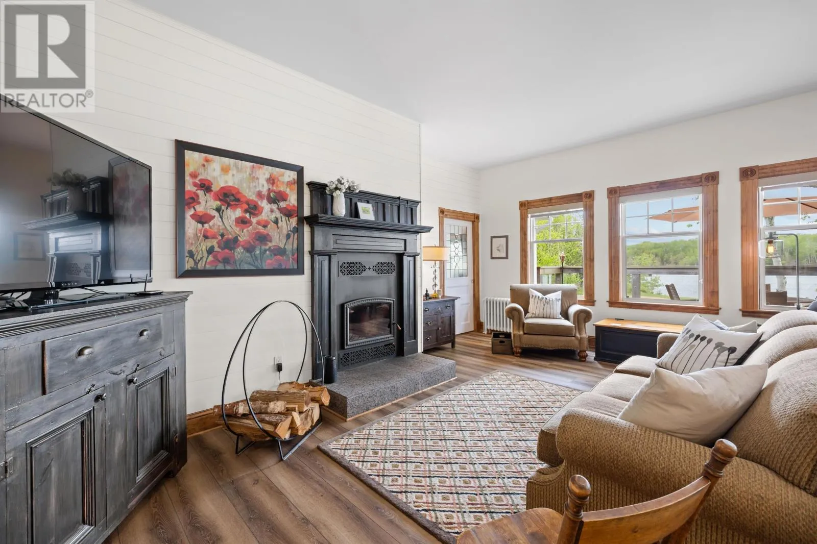 Stunning Home on 56 Hutt Lane Welcome to your year-round dream home on 56 Hutt Lane, nestled along the picturesque Montrose Kildare River. This exceptional property offers a perfect blend of charm and modern luxury, providing you with a tranquil retreat from the hustle and bustle of everyday life. This spacious home features 3 bedrooms and 2.5 bathrooms, spanning over 3700 square feet. The open concept design and 10-foot ceilings create an airy and bright living space. The wood fireplace adds a cozy touch, perfect for those chilly evenings. Step outside onto the walk-out deck, surrounded by glass, and enjoy breathtaking views of the river. On the back, a private patio nestled in the trees provides a peaceful sanctuary for outdoor relaxation. The lower level offers a walk-out to a hot tub and a private dock, perfect for water activities and boating enthusiasts. You can also unwind at the tiki hut and enjoy a refreshing drink. Throughout the home, you'll find solid maple trim, handcrafted by local artisans, adding a touch of elegance and local craftsmanship. The house is fully wheelchair accessible, ensuring convenience and comfort for all residents. Additional features of this remarkable property include timers on walkways for lighting, a wet bar for entertaining, and an incredible kitchen with ample cabinet space and high-end quality finishes. Located just minutes from all the amenities of Alberton, this home offers the perfect balance of privacy and convenience. It's an ideal location for those seeking a peaceful escape while still being close to everything you need. Don't miss the opportunity to make this extraordinary property your own. Exceptional ,charm, quality and most of all privacy. (id:27476)
