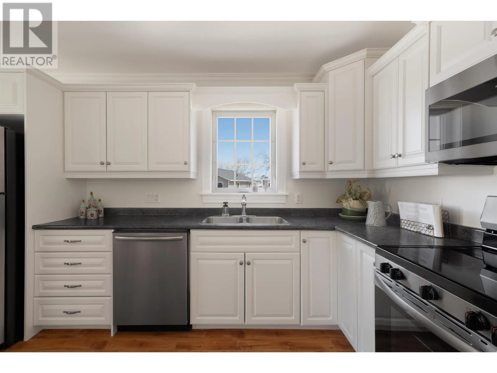Welcome to this beautifully designed and meticulously maintained back-split townhouse that seamlessly blends modern living with timeless comfort. Nestled on a serene and private street, this gem has never been on the market before - offering a rare opportunity to own a truly special home. Step inside to a bright, open-concept layout that combines the living/dining/kitchen - perfect for entertaining or relaxing in style. Soaring daylight windows flood both levels with natural light, enhanced by full southern exposure on the back bringing warmth and charm to both levels. The main floor features two spacious bedrooms, including one with direct access to a lovely private deck overlooking the Confederation Trail System. A full bathroom and convenient main-floor laundry add ease to everyday living. The attached garage boasts sleek epoxy flooring, ideal for storage, a gym, or a clean workspace. The expansive lower-level impresses with a large third bedroom, a full bathroom, and a generous family room - perfect for guests, a home office, or extra living space. With oversized daylight windows, you never feel like you're in a lower level. *Photos are for a staged unit of the same layout. ** assess value will be determined at close ***condo fees $350/month and include snow removal, lawn care, and all exterior. ****listing agent is a shareholder. (id:27476)