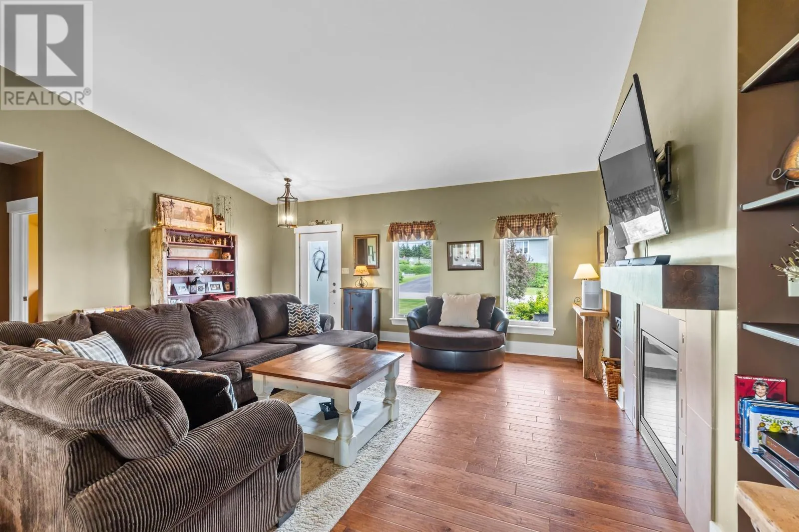 Welcome to 30 Sunset Drive ? A Truly Exceptional Home! Boasting over 3700 square feet of beautifully finished living space this stunning property offers comfort functionality and style in every corner. The main floor features a bright open-concept layout with a dream kitchen that any culinary enthusiast would love a spacious dining area and a cozy living room complete with a propane fireplace. The main level also includes two generously sized bedrooms and two full bathrooms. The primary suite is a true retreat featuring a luxurious ensuite bath and direct access to a three-season sunroom with its own propane fireplace ? the perfect spot to enjoy your morning coffee or unwind in the evening. A unique spiral staircase leads to the expansive lower level where you'll find a fantastic family room outfitted with a home theatre and pool table area ? ideal for entertaining. This level also includes a third bedroom a full bathroom and a fully equipped workshop with an overhead door offering direct access to the fenced backyard. Outside enjoy multi-tiered decks a fire pit area and distant water views. From the back of the home soak in breathtaking sunsets that truly live up to the street?s name. This one-of-a-kind property must be seen in person to be fully appreciated! All sizes are approximate and should be verified by purchaser. (id:27476)