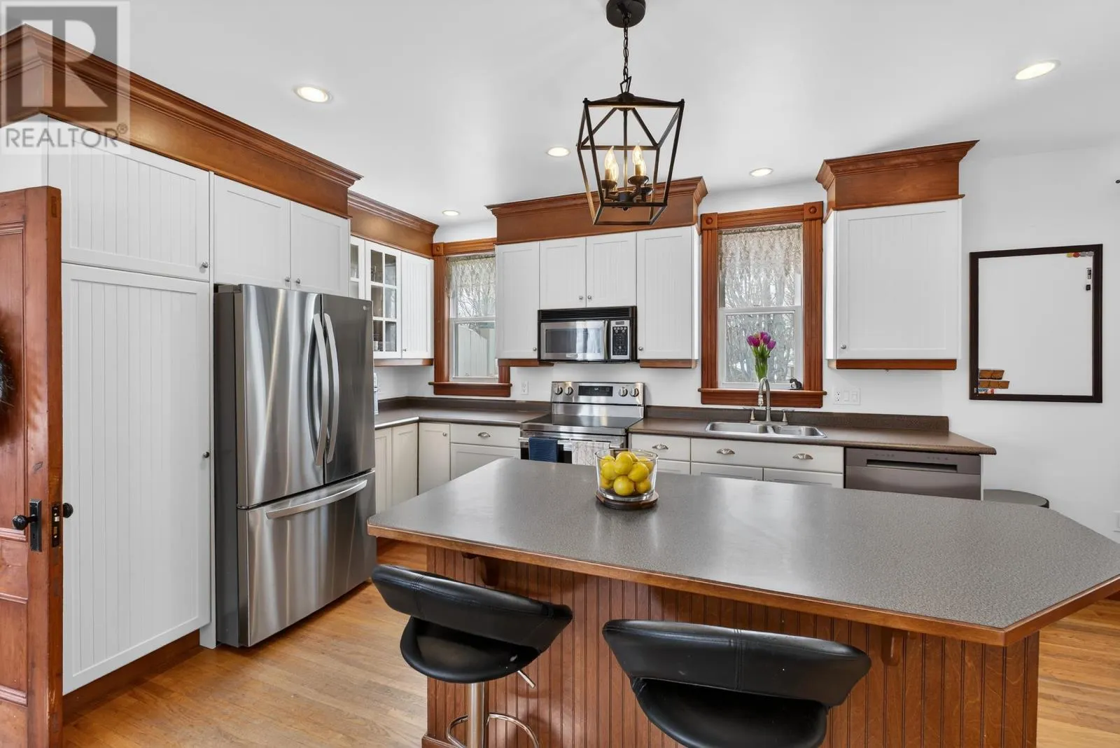 timeless century home nestled in the town of Kensington with many updates and a blend of historic charm and contemporary convenience this home is a true gem. The heart of this home boasts a stunning modern farmhouse kitchen that features a spacious dining nook and a generous island as the centerpiece. The kitchen seamlessly flows into the family room creating an open and inviting space. Large windows fill the home with natural light along all sides while the layout ensures that family and friends can gather and connect effortlessly. On the main level is a second living room that can double as a childrens play space or extra bedroom. A main level laundry room and an additional bathroom further enhance the convenience of this home on the main level. A standout feature of this property is the wrap around covered deck featuring a large outdoor area with southern exposure where the main entrance faces towards the backyard and away from the main road for extra privacy. The enchanting outdoor space is perfect for enjoying a morning coffee or simply unwinding after a long day. Upstairs are four spacious bedrooms each with unique charm including an extra large master bedroom with walk in closet and vaulted ceilings. The walk in attic on the very top is ready for creativity and offers limitless potential to tailor to customize in future. Outside the backyard features lush mature landscaping mature trees flower beds and garden areas. The detached garage offers extra storage and hobby space with a wrap around driveway and two road access points. The property backs onto the Confederation Trail and is a short walk or 1 minute drive to Kensingtons main amenities. A 15 minute drive to downtown Summerside or 40 minutes to downtown Charlottetown offers a central Island location with quick access to north shore beaches. Recent upgrades include new appliances installed in 2024 2025 a new heat pump system 2 pumps 5 heads and a new hot water t (id:27476)