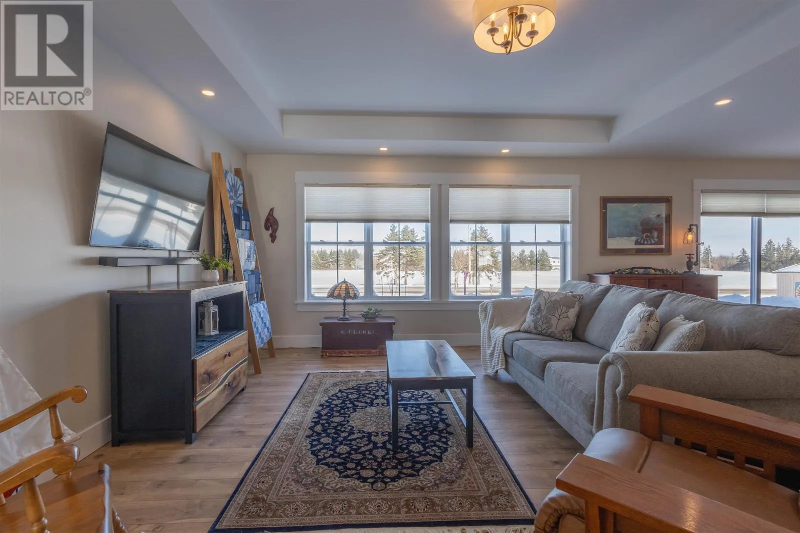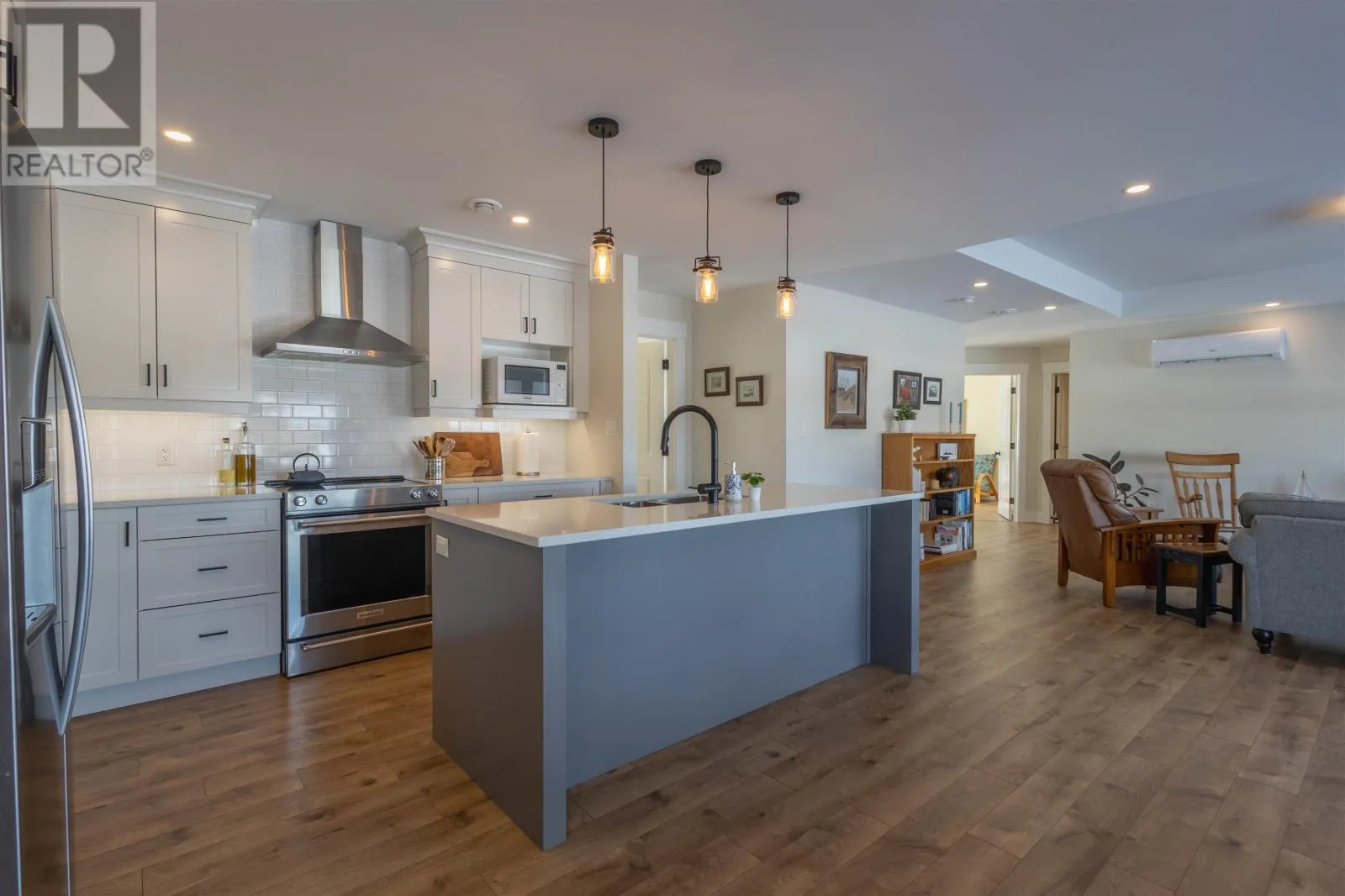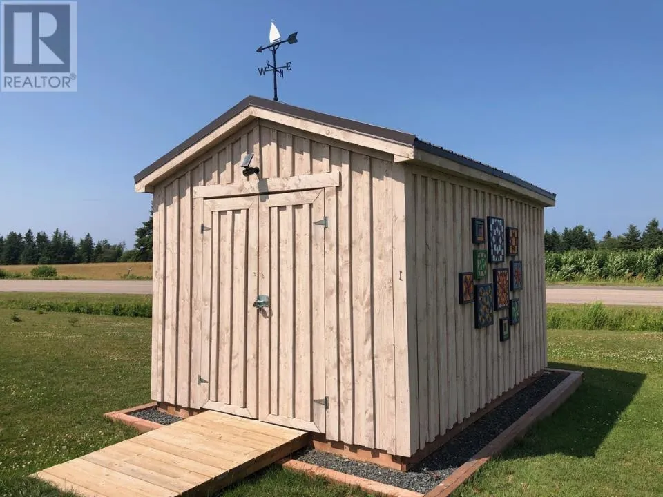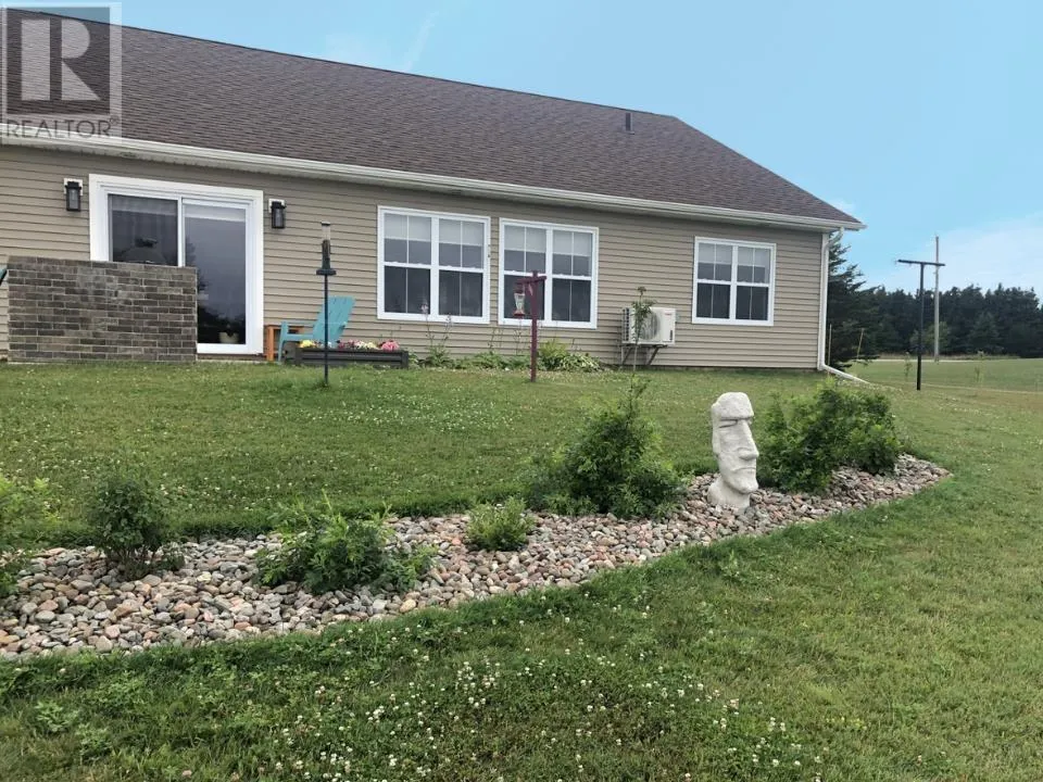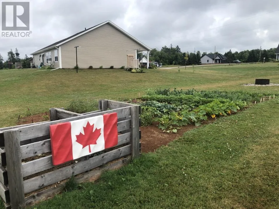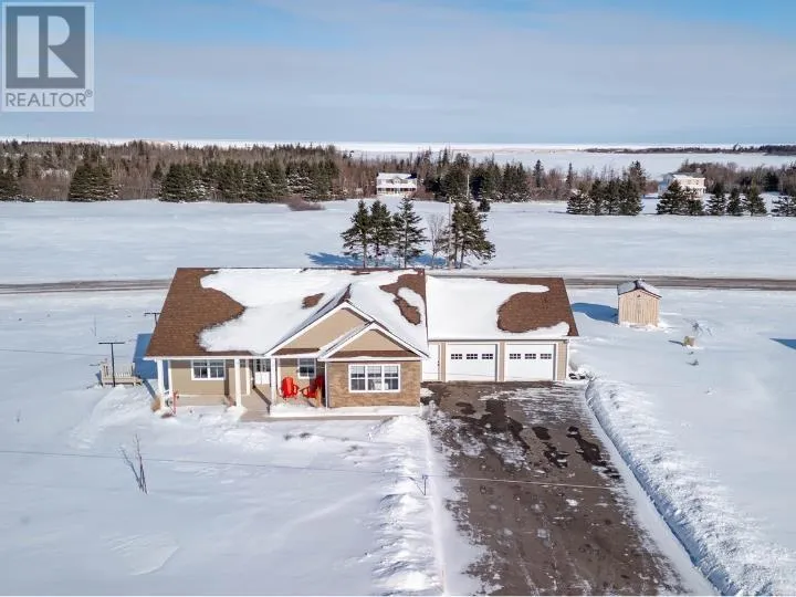 St Peters Highway to Lakeside Road, to Oceanlinks Lane. This thoughtfully designed bungalow offers the perfect blend of luxury and leisure, situated just a short walk or bike ride from the sandy shore of Lakeside Beach and the world-renowned Crowbush Cove Golf Course. Enter the home from the sunny, south-facing covered front patio, through to the bright, welcoming open-concept living area. The living room serves as a beautiful focal point, featuring a tray ceiling that adds architectural interest to the space. The kitchen features quartz countertops and a large central island, perfectly suited for cooking for family or hosting friends. The dining area opens directly onto a large back patio, making indoor-outdoor entertaining and cooking on the Kamado Joe grilling station effortless. The primary suite is a sunny sanctuary designed for relaxation. It features a private en-suite bathroom, complete with a free-standing soaker tub, a dual-sink vanity, and a separate shower, plus a walk-in closet with custom shelving. Two additional bedrooms with large custom closets and a second full bathroom provide space for family or guests. The meticulously kept, large yard showcases perennial gardens and a variety of planted berries and trees. Practicality meets charm with a 10'x14' garden shed and a sturdy, custom-built clothesline with its own platform. The attached two-car garage features a heat pump for year-round comfort, ample shelving and storage space, a workbench, and it leads into a functional mudroom and a separate laundry room in the home. With numerous upgrades and a desirable location in a newer North Shore subdivision, this property offers an ideal setting for nature lovers and beach enthusiasts! (id:27476)