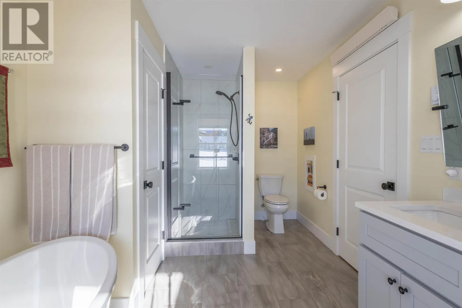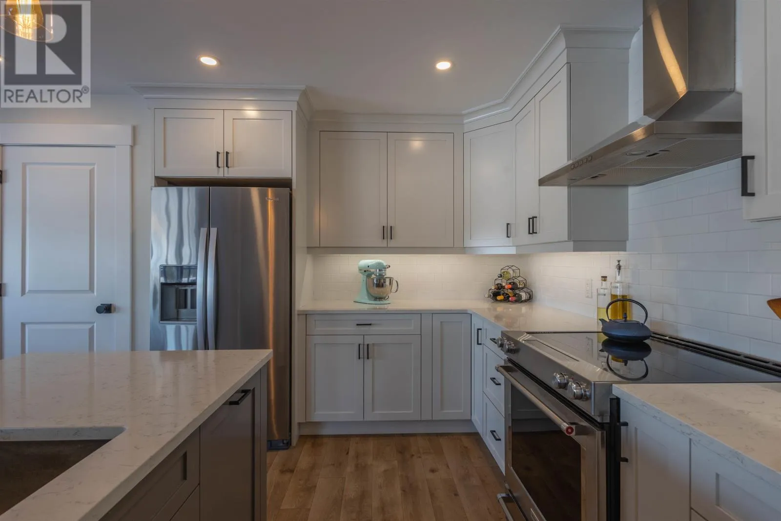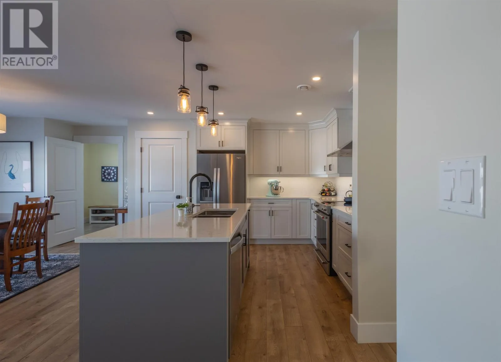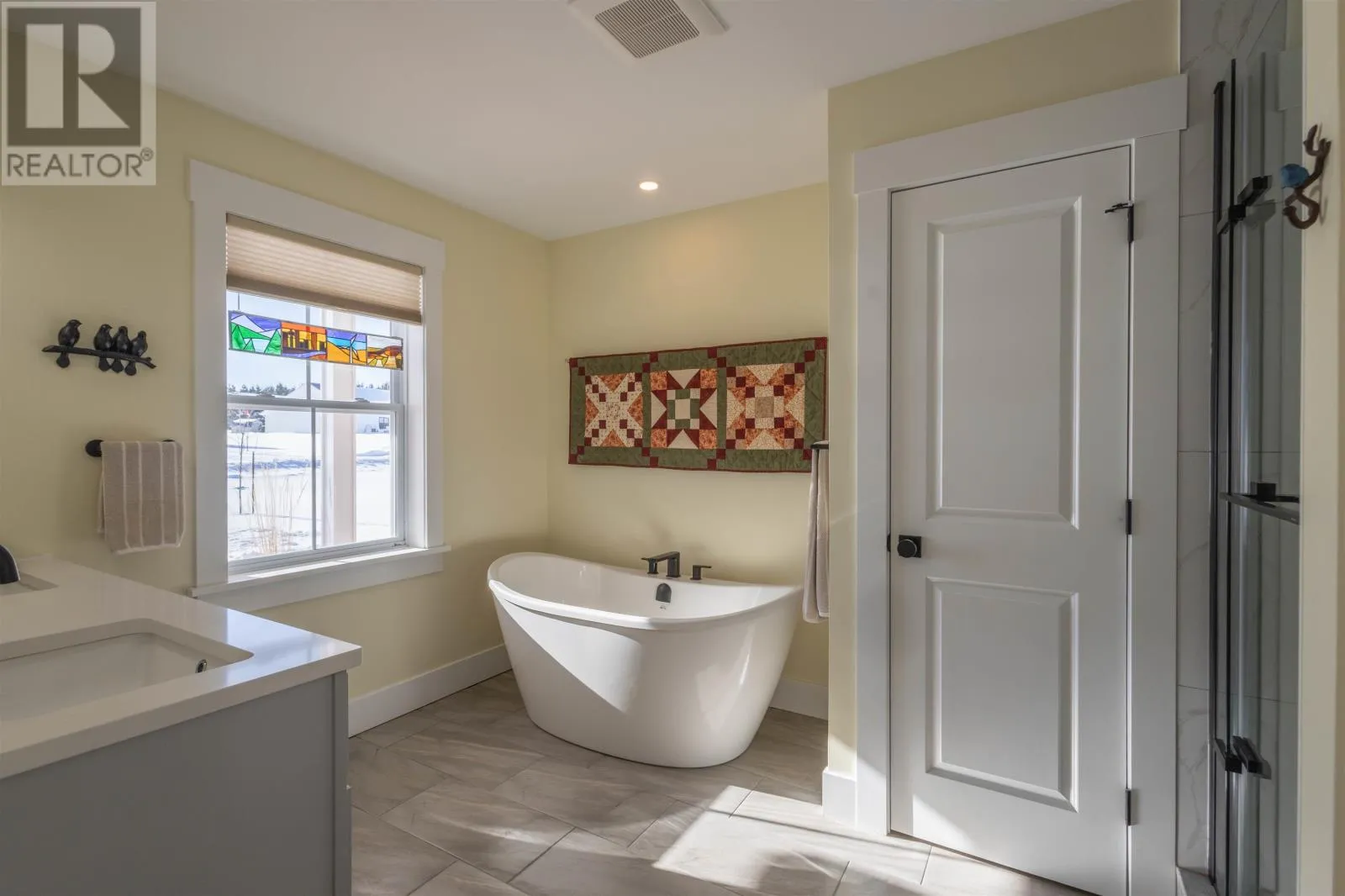 St Peters Highway to Lakeside Road, to Oceanlinks Lane. This thoughtfully designed bungalow offers the perfect blend of luxury and leisure, situated just a short walk or bike ride from the sandy shore of Lakeside Beach and the world-renowned Crowbush Cove Golf Course. Enter the home from the sunny, south-facing covered front patio, through to the bright, welcoming open-concept living area. The living room serves as a beautiful focal point, featuring a tray ceiling that adds architectural interest to the space. The kitchen features quartz countertops and a large central island, perfectly suited for cooking for family or hosting friends. The dining area opens directly onto a large back patio, making indoor-outdoor entertaining and cooking on the Kamado Joe grilling station effortless. The primary suite is a sunny sanctuary designed for relaxation. It features a private en-suite bathroom, complete with a free-standing soaker tub, a dual-sink vanity, and a separate shower, plus a walk-in closet with custom shelving. Two additional bedrooms with large custom closets and a second full bathroom provide space for family or guests. The meticulously kept, large yard showcases perennial gardens and a variety of planted berries and trees. Practicality meets charm with a 10'x14' garden shed and a sturdy, custom-built clothesline with its own platform. The attached two-car garage features a heat pump for year-round comfort, ample shelving and storage space, a workbench, and it leads into a functional mudroom and a separate laundry room in the home. With numerous upgrades and a desirable location in a newer North Shore subdivision, this property offers an ideal setting for nature lovers and beach enthusiasts! (id:27476)