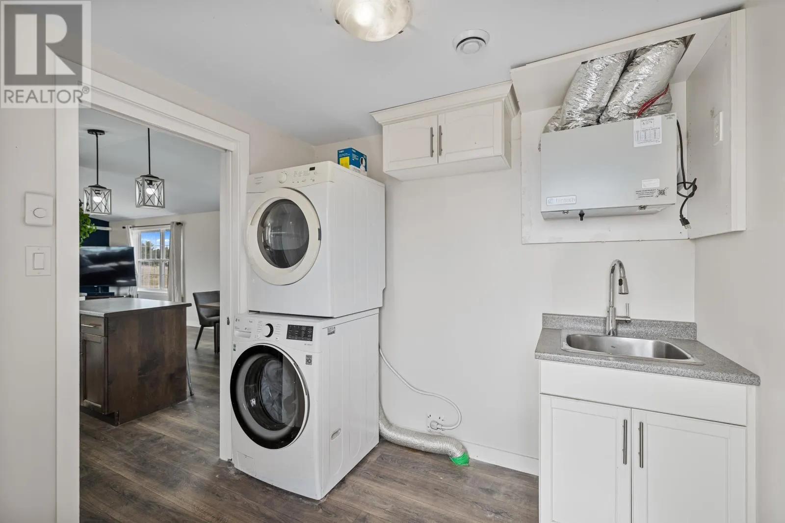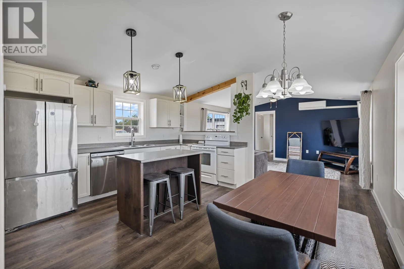 READY TO MOVE!! Wondering what to do with that vacant lot you haven't done anything with yet? This stylish 3 bed, 2 bath mini home could be the perfect solution! Its modern, open concept layout seamlessly combines the kitchen, dining, and living areas. The kitchen features white cabinetry with a dark wood island, while the living room showcases a bold navy accent wall and large windows that fill the space with light. The bedrooms are uniquely styled with vibrant colors, and the primary bedroom includes a custom built closet with wooden shelving. Additional highlights include a well appointed bathroom with a tub/shower combo, a separate laundry area with stackable washer and dryer, and a neutral exterior with classic black shutters. Turn your unused lot into a move-in-ready home today! (id:27476)