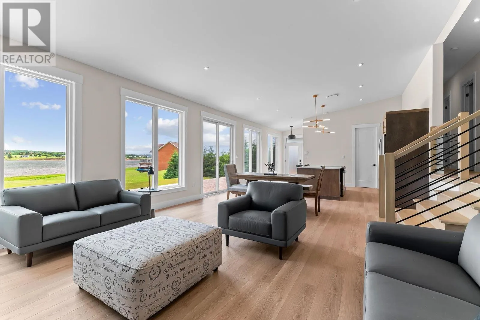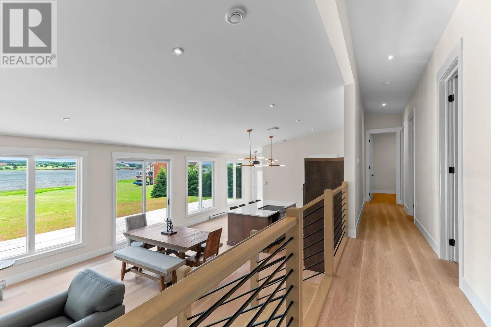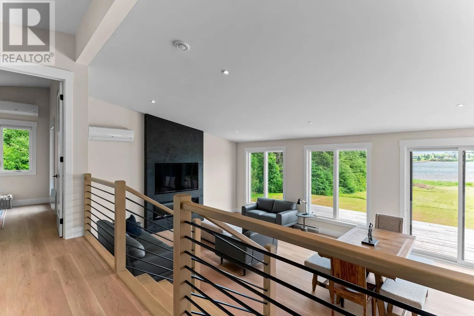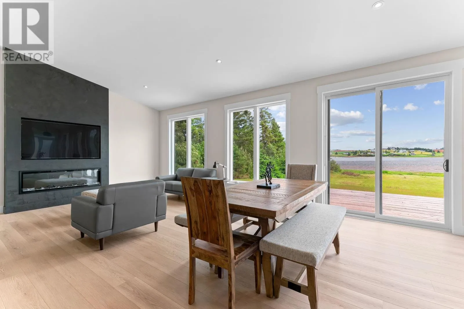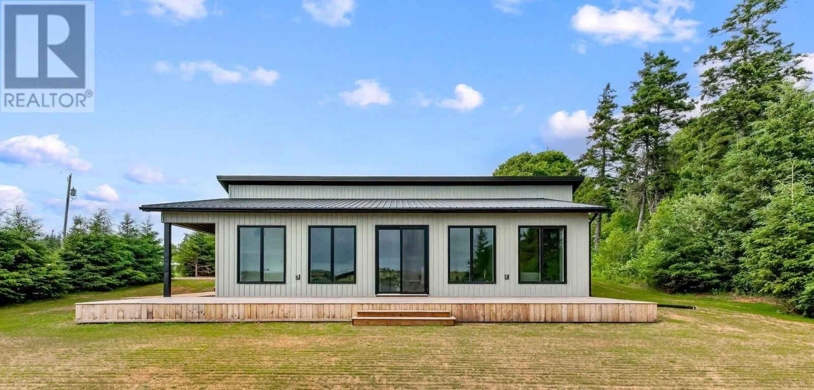 From Burlington Road take Wharf Road to stop sign then right onto Pine Grove Road. Stay right on Pine Grove Road until stop sign then left onto Fitzsimmons Lane and take your first left onto Sunnyside Drive. House is on the left just before the waterfront. Experience refined coastal living in Long River - a modern, low-maintenance residence that blends East Coast practicality with high-end finishes ideal for a year-round home or premium rental. Flooded with natural light from towering 8-ft windows and patio doors, the open-concept living area features vaulted ceilings and flows seamlessly to nearly 700 sq ft of natural decking, including a covered BBQ/entry deck for effortless indoor-outdoor entertaining. The custom kitchen is crafted for both style and function: quartz counters, stainless appliances, warm wood cabinetry with deep drawers, hidden waste/recycling, and a walk-in pantry. Thoughtful built-ins, automatic blinds, and auto on/off closet lighting enhance everyday convenience. Three well-separated bedrooms include an expansive primary suite with ensuite and walk-in closet, plus a polished guest bath and dedicated laundry/linen storage. Designed for longevity and comfort, your future home is secure with high efficiency systems, a durable metal roof, matching 12x16 storage shed, exterior soffit lighting, and deck power for evening entertaining or holiday displays. The home is surrounded on 3 sides by mature trees and privacy hedges, and multiple, deeded, open-access zones that expand across the waterfront areas of the subdivision. Exceptionally marketable to short-term renters, this sophisticated property presents a rare opportunity to own a serene coastal retreat that delivers both year-round lifestyle and strong rental appeal. Agent is vendor. (id:27476)