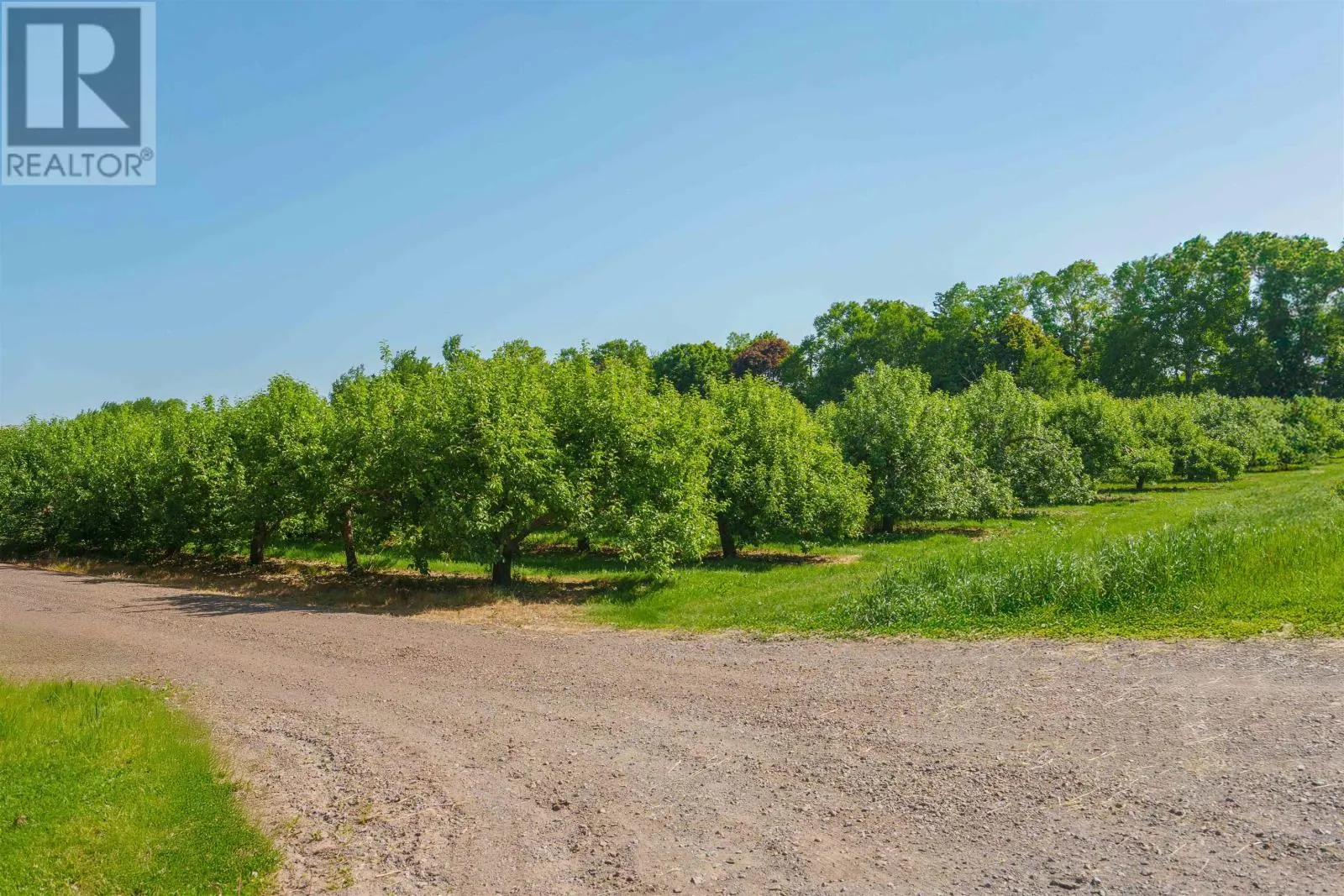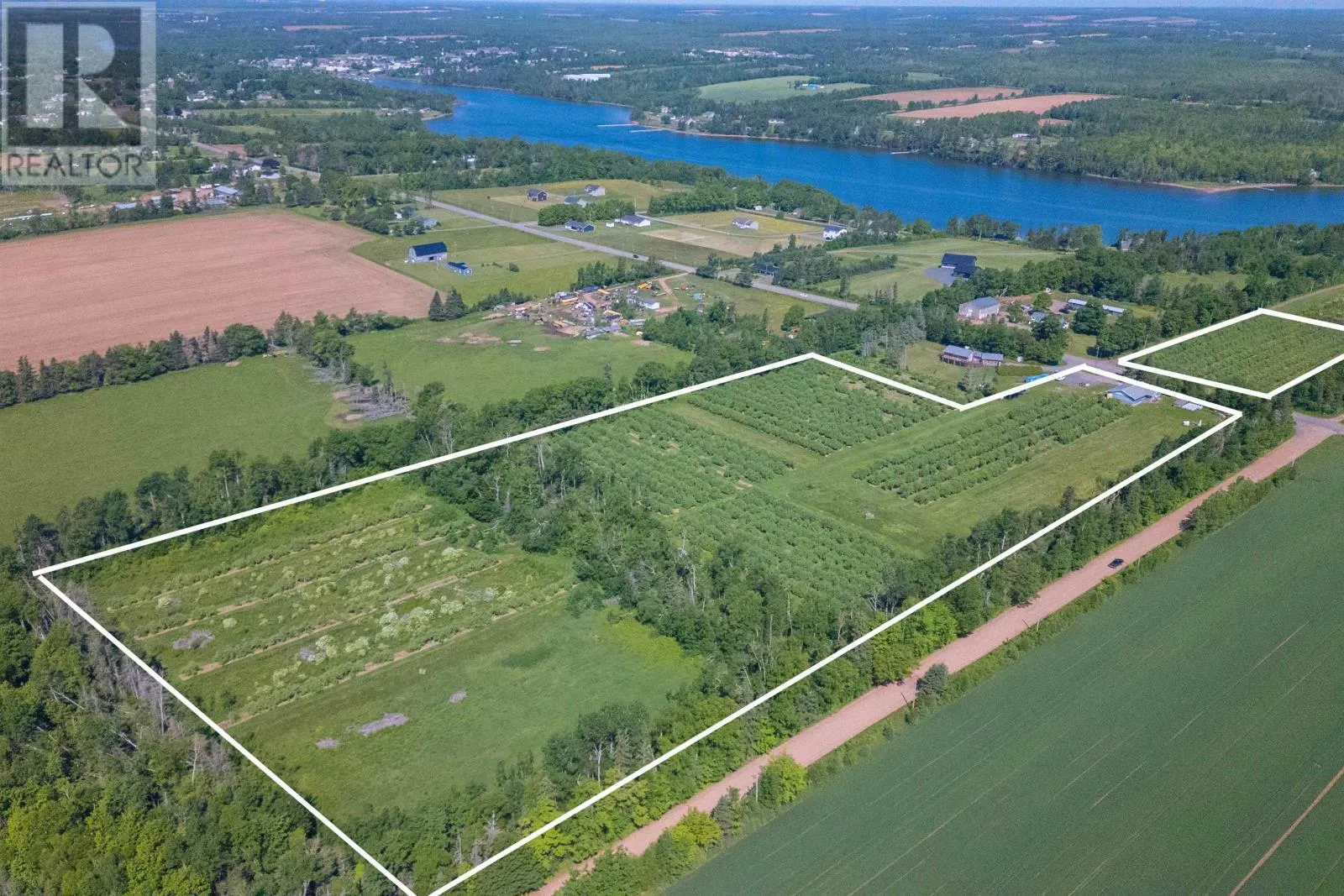 An established apple orchard with decades of continuous production, located along Route 17 in Lower Montague within the Municipality of Three Rivers, Prince Edward Island. Planted in Cortland, McIntosh, and Jonagold, the trees are mature, well spaced, and actively managed. The land is functional and well laid out, supporting both continued orchard operations and future agricultural use. The property includes two parcels totaling 20.4 acres, positioned on the north and south sides of Route 17 with direct road frontage and multiple access points. A steel-frame warehouse sits on the southern parcel, offering approximately 2,400 square feet of space with a concrete floor, high ceilings, one overhead door, ceiling-mounted ventilation, electrical service, and on-site diesel storage. A drilled well supplies water for spray and utility use. One parcel is zoned Agricultural and the other Commercial, offering flexibility for a range of uses under the jurisdiction of Three Rivers. The combination of infrastructure, road exposure, and established productivity makes this a strategic landholding in one of Eastern Prince Edward Island's most active farming regions. 2025 Orchard Harvest (apples) not included. (id:27476)