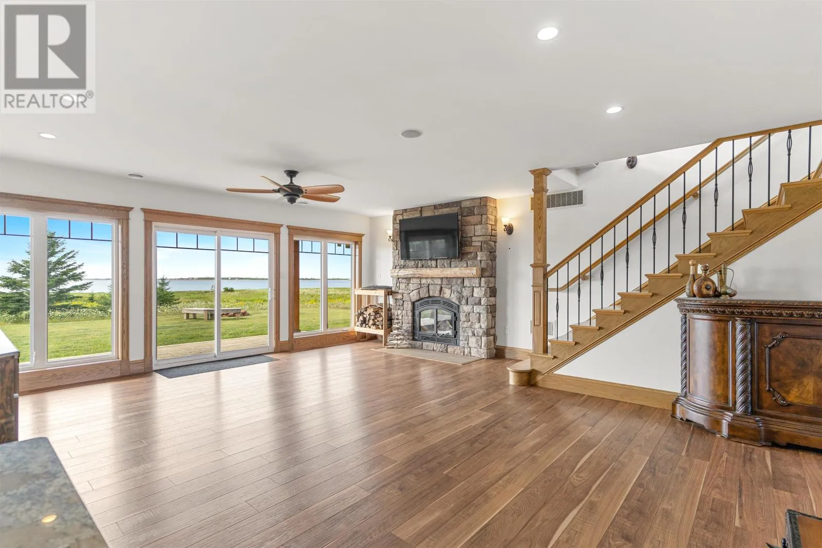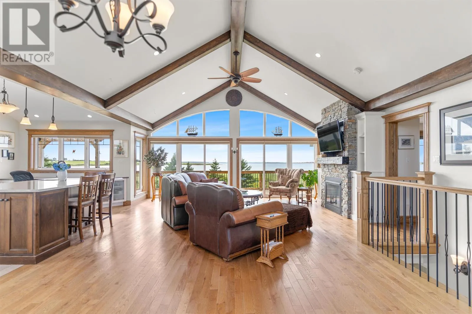 Discover a property where exceptional craftsmanship meets the tranquility of coastal beauty tucked away at the end of a long winding private lane. 127 Sailors Lane offers a rare blend of seclusion and architectural elegance, designed specifically to embrace the Island lifestyle. From the moment you step through the Red Western Cedar covered entry The home exudes warmth highlighted by the rich Red Western Oak trim and holden hour light flooding the large west-facing windows. Whether you are hosting friends by the custom wet bar or relaxing in the vaulted cedar solarium The atmosphere is one of relaxed sophistication and comfort. Built in 2016 This 2441sf residence prioritizes durability and style Featuring foam insulation Hurricane ties and A ducted heat pump for efficiency. The main level invites entertainment with a Napolean wood fireplace surrounded by custom stonework and heated tile floors Alongside two flexible bedrooms One featuring a Murphy bed And a full bath. A heated double garage with floor drains add practical convenience. Ascend the oak staircase to the vaulted second level where faux beams add an open concept create an airy atmosphere. The custom chef's kitchen boasts quartz composite counters and GE Cafe appliances while the primary suite offers a sanctuary with a clawfoot tub and walk in shower. A family room anchored by a propane fireplace serves as the perfect spot to unwind. The iconic beauty of Malpeque is on full display here Particularly from the expansive second storey cedar deck where you can witness unforgettable sunsets and sweeping Bay views through arched windows. With an optional 1.5 acre adjoining lot available for future growth or privacy This solid beautiful home is ready to be filled with new memories. We invite you to experience the serenity and superior quality of this coastal gem firsthand. (id:27476)