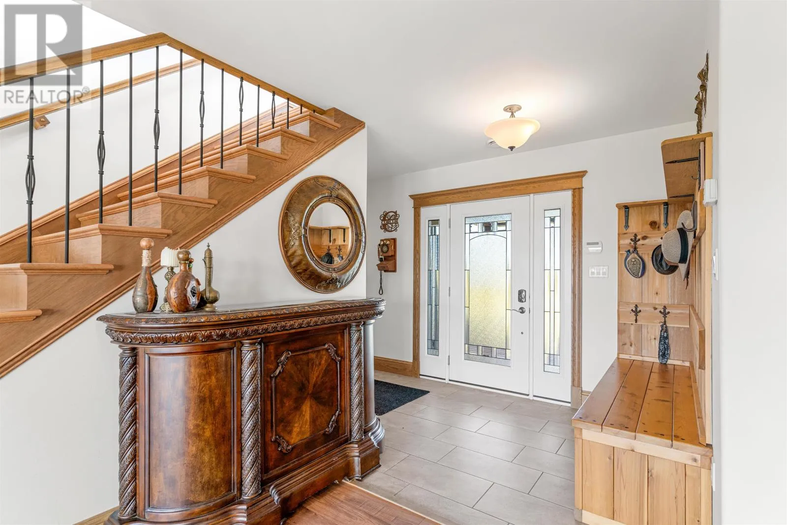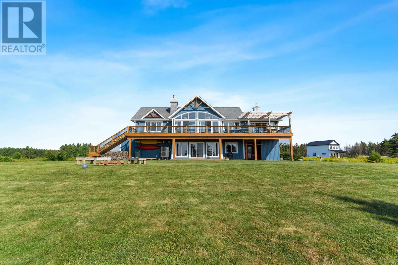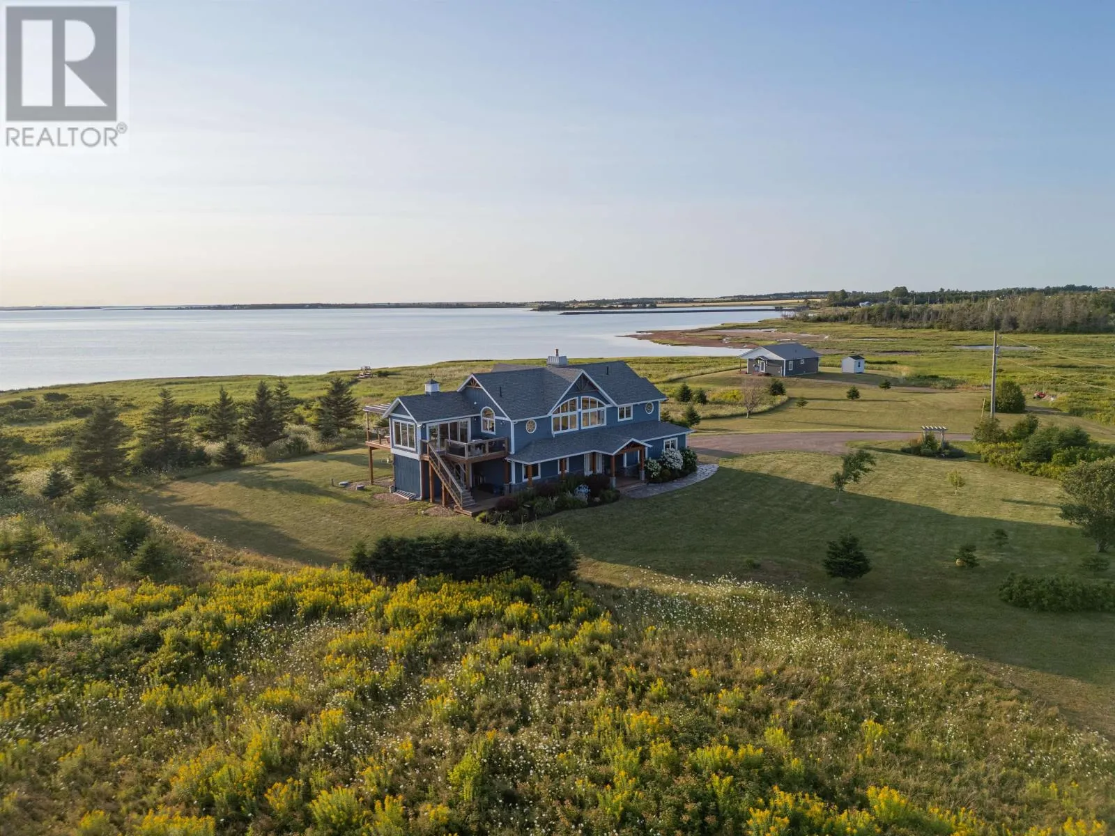 Discover the perfect blend of seclusion craftsmanship and panoramic coastal beauty where a winding lane delivers you to a private estate that feels worlds away yet firmly anchored in the Island's most iconic setting. With sweeping views of Malpeque Bay and over three acres of protected land This residence offers a rare balance of elegance and peace. Sunlight pours through expansive west and east facing windows Filling the rooms with golden warmth While soaring ceilings and hand finished woodwork create a sense of timeless quality. Whether gathering around the stone-cladded fireplace or watching the sun sink beyond the horizon from the upper cedar deck life here is refined and restorative. Built in 2016 with purpose and permanence This 2441sf home features hurricane ties and foam insulation for superior coastal resilience. The main level hosts two bedrooms including one with a clever Murphy bed and a bright entertaining space with a custom wet bar and high efficiency Napolean wood fireplace alongside a practical heated double garage. Upstairs a chef's kitchen by Tops to Floors with quartz counters and GE cafe appliances opens to a family room with a propane fireplace and a cedar wrapped solarium for year round enjoyment, The primary suite is a true retreat Offering a spa inspired ensuite with a clawfoot tub and walk in shower all accented by Red Western Oak trim and a Red Western Cedar entry. Set within Malpeque's stone coastal community you are mere moments from sandy beaches Fresh seafood markets and celebrated dining Yet the property feels entirely private. For those seeking the ultimate protected coastal retreat 127 Sailors Lane is a statement of living well and ready to welcome you home. (id:27476)