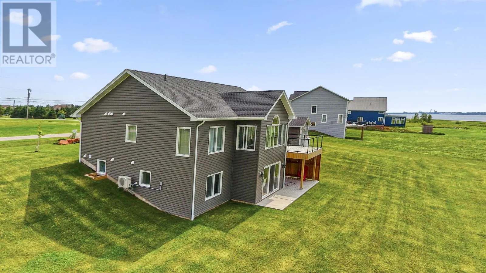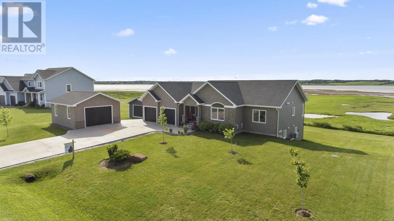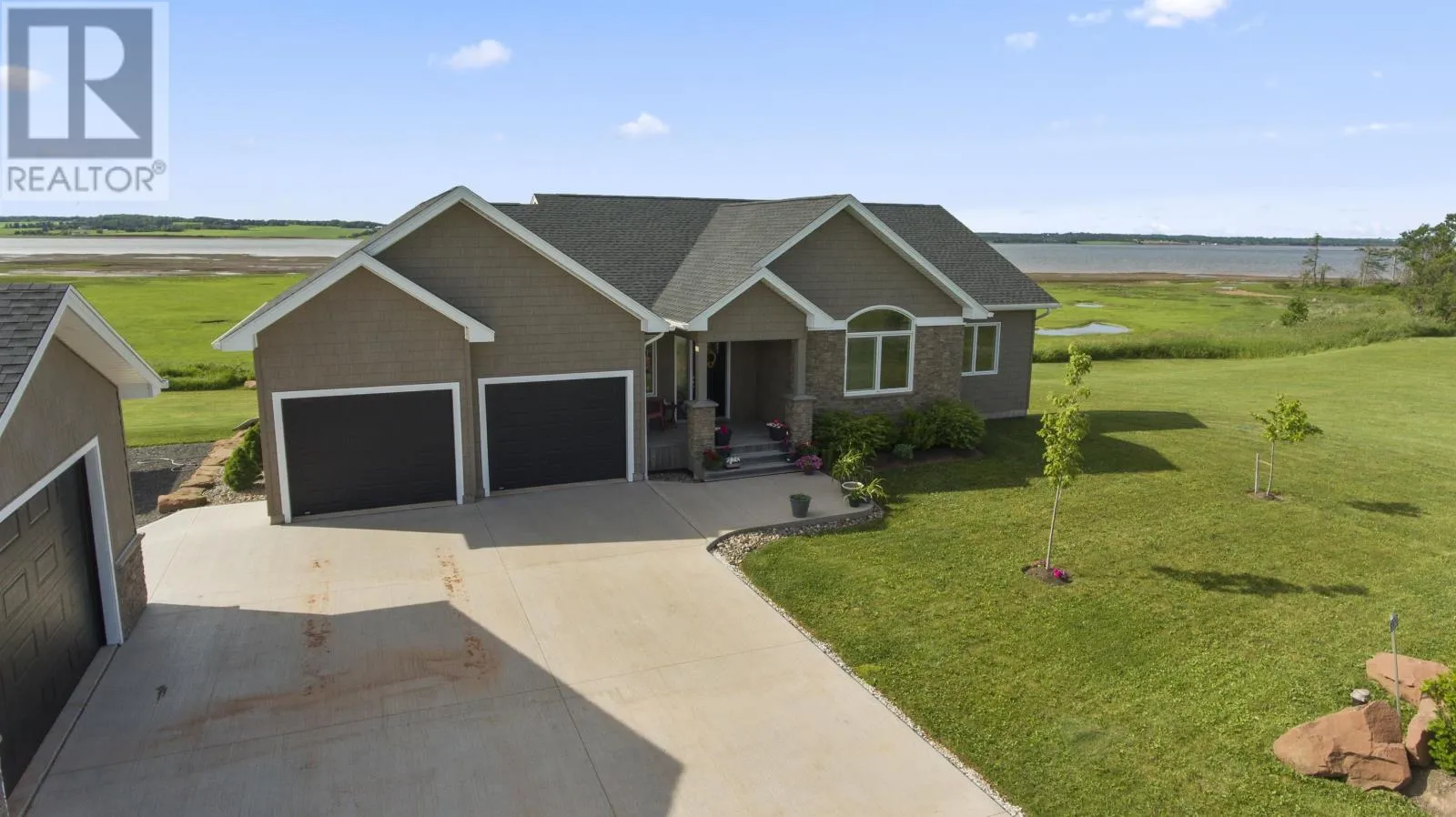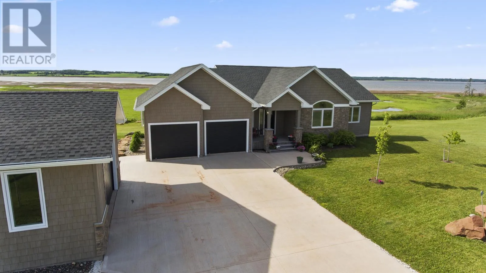Discover the beauty of waterfront living in this newly built six-bedroom, four-bathroom home, perfectly positioned on the scenic shores of the Hillsborough River. Located just 10 minutes from downtown Charlottetown in the charming community of Mermaid, this property offers breathtaking water views and stunning sunsets. The spacious open-concept main floor is flooded with natural light from large windows, creating a warm and inviting atmosphere. Relax in the living room, where a cozy propane stove enhances the picturesque setting. The kitchen is designed for both style and function, featuring custom cabinetry, a 10-foot quartz island, and seamless access to the dining area. Triple patio doors lead to a covered deck, extending your living space outdoors. The main level includes a luxurious primary suite with a walk-in closet, plus two additional good sized bedrooms and a full bathroom. The walk-out lower level offers incredible versatility, with three more bedrooms, two full bathrooms, and a generous family room. A private external entrance, along with pre-installed plumbing and electrical connections, makes this space ideal for a secondary suite - simply add kitchen fixtures to complete the setup. Outside, enjoy a beautifully maintained lot in a quiet, family-friendly neighbourhood. There is lots of parking and storage, thanks to an attached two-car garage, a detached single-car garage, a storage shed, and a spacious concrete driveway. Laundry connections are roughed in upstairs should you wish to move them up. Don't miss the chance to own this stunning waterfront property! All measurements are approximate and should be verified by the Buyer(s). The listing agent is the seller's brother. (id:27476)