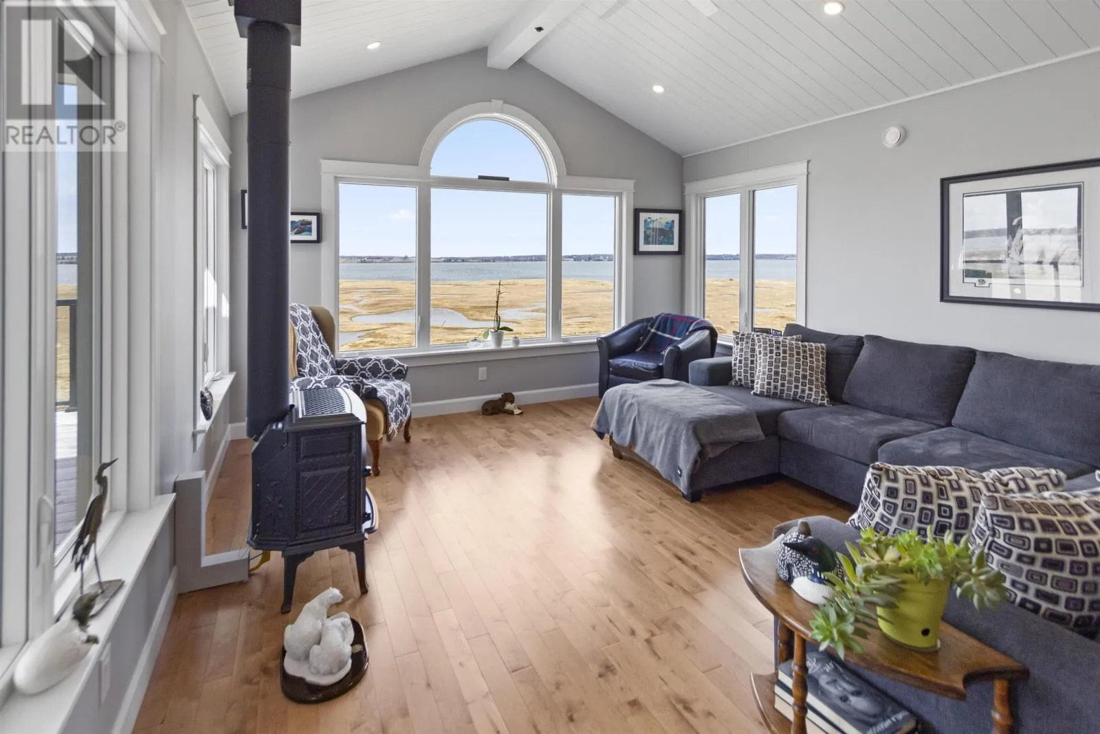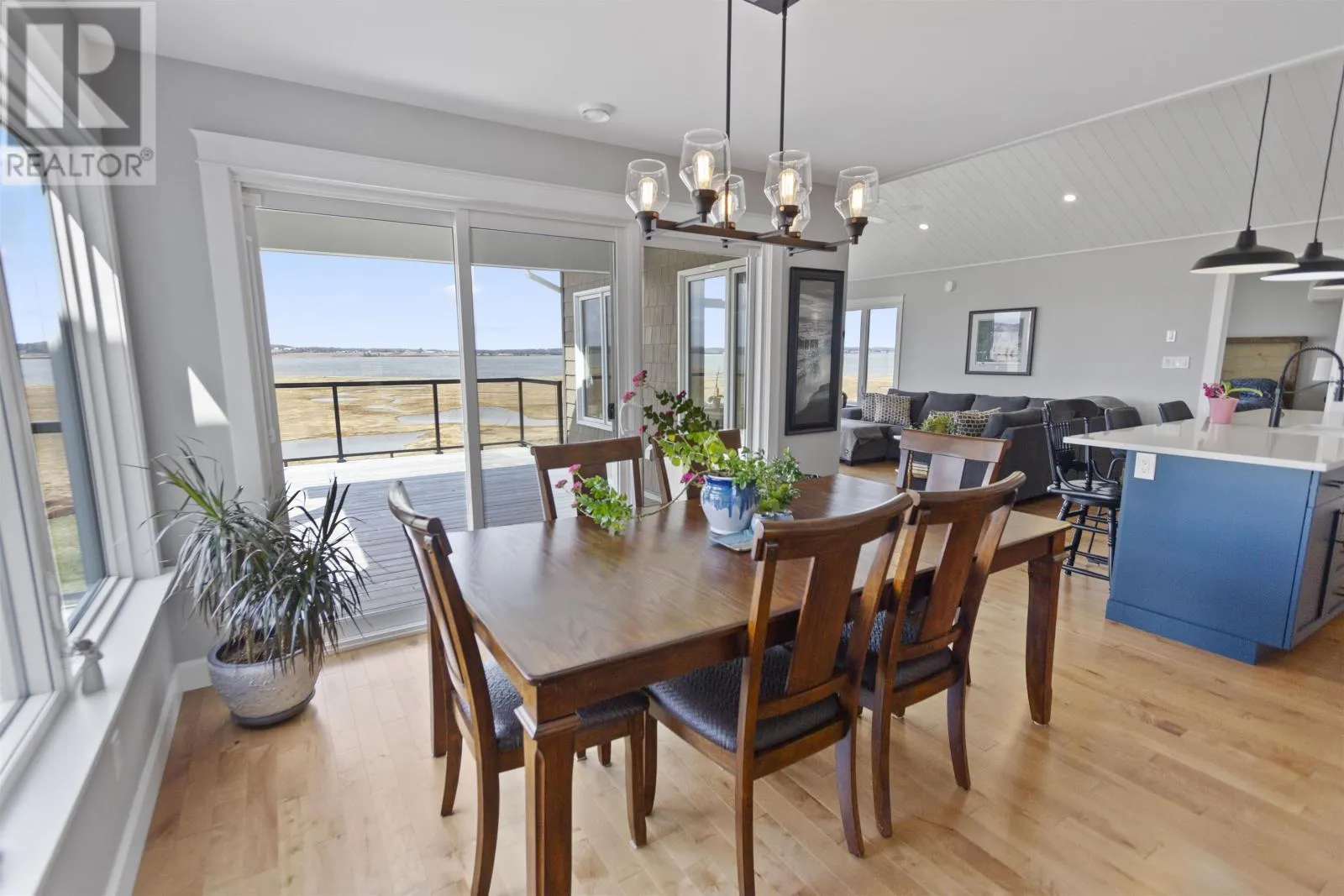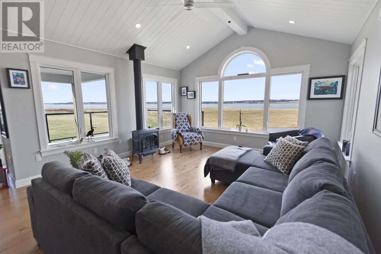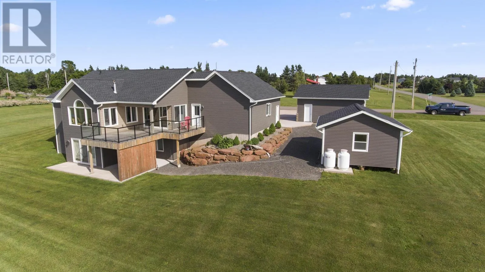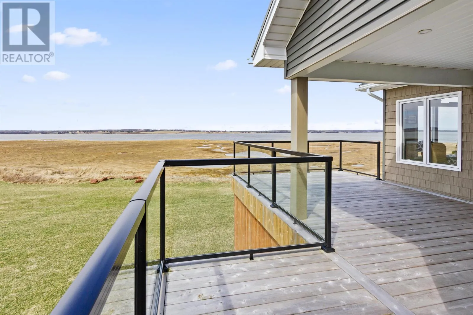 Discover the beauty of waterfront living in this newly built six-bedroom, four-bathroom home, perfectly positioned on the scenic shores of the Hillsborough River. Located just 10 minutes from downtown Charlottetown in the charming community of Mermaid, this property offers breathtaking water views and stunning sunsets. The spacious open-concept main floor is flooded with natural light from large windows, creating a warm and inviting atmosphere. Relax in the living room, where a cozy propane stove enhances the picturesque setting. The kitchen is designed for both style and function, featuring custom cabinetry, a 10-foot quartz island, and seamless access to the dining area. Triple patio doors lead to a covered deck, extending your living space outdoors. The main level includes a luxurious primary suite with a walk-in closet, plus two additional good sized bedrooms and a full bathroom. The walk-out lower level offers incredible versatility, with three more bedrooms, two full bathrooms, and a generous family room. A private external entrance, along with pre-installed plumbing and electrical connections, makes this space ideal for a secondary suite - simply add kitchen fixtures to complete the setup. Outside, enjoy a beautifully maintained lot in a quiet, family-friendly neighbourhood. There is lots of parking and storage, thanks to an attached two-car garage, a detached single-car garage, a storage shed, and a spacious concrete driveway. Laundry connections are roughed in upstairs should you wish to move them up. Don't miss the chance to own this stunning waterfront property! All measurements are approximate and should be verified by the Buyer(s). The listing agent is the seller's brother. (id:27476)