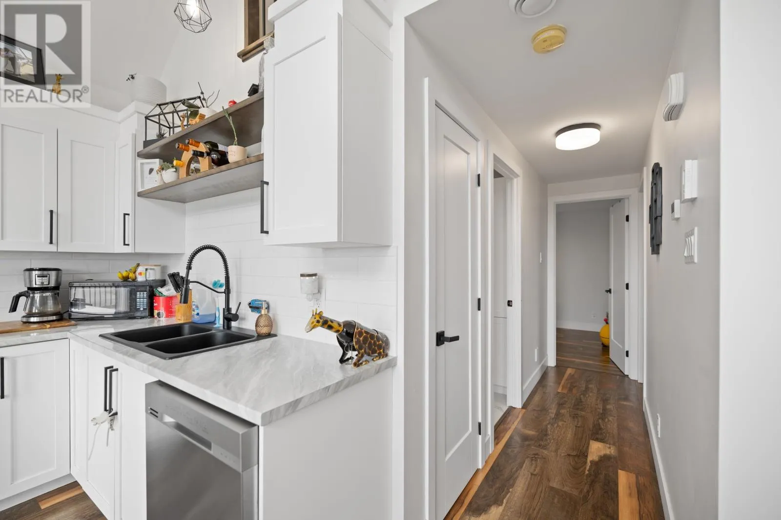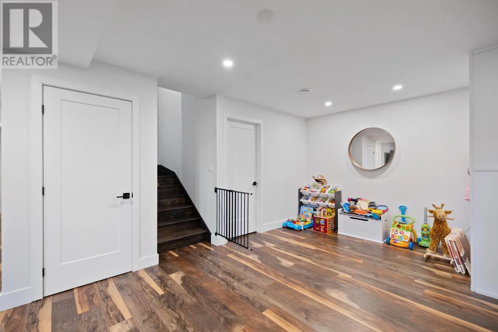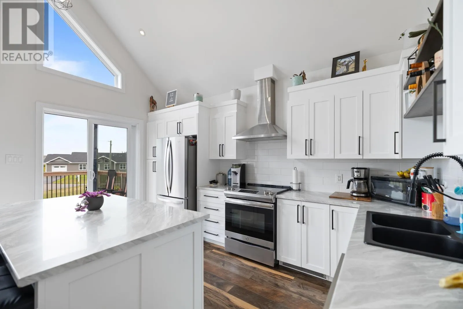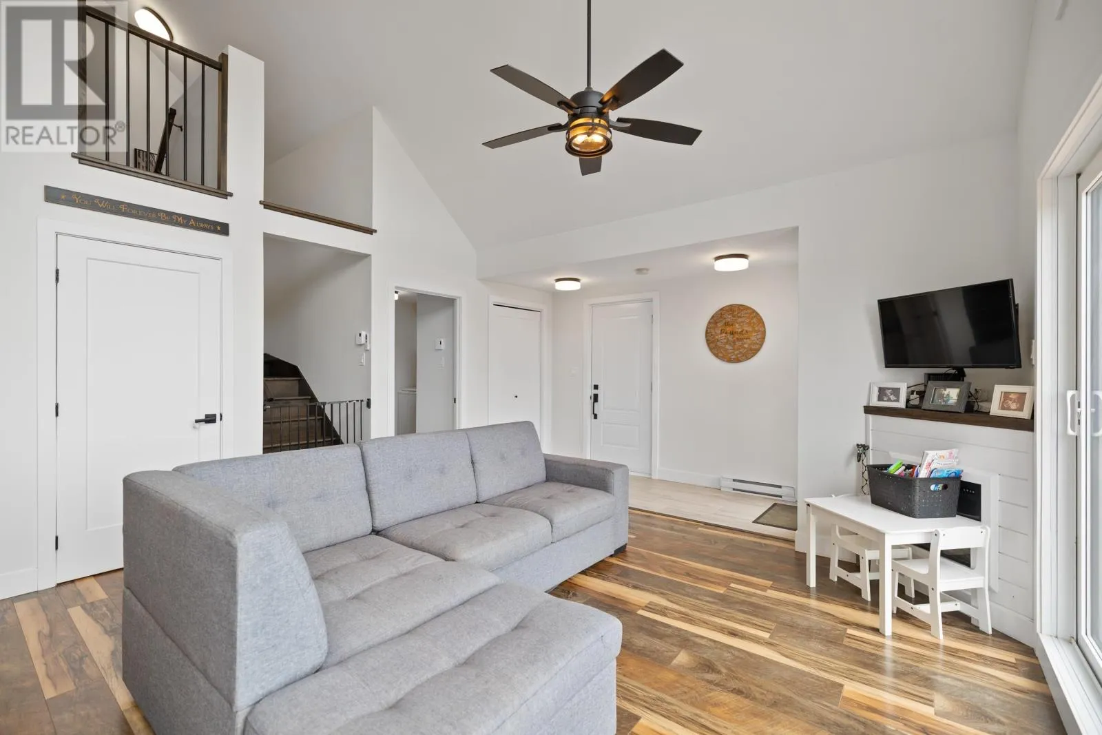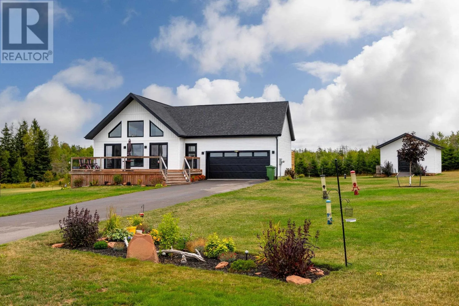 Turn onto Heritage River Road from Fort Augustus in Mermaid. Take a right onto Rebecca Lane and the house is on your right as you enter the cul-de-sac Welcome to this beautiful 5 bedroom, 2 bathroom home with an attached garage, thoughtfully designed for today?s modern family. The home?s striking exterior features crisp white siding, black-framed windows, and a spacious wooden deck, ideal for entertaining or simply enjoying a quiet evening. Inside, the bright open-concept main level is the heart of the home, featuring vaulted ceilings and oversized windows that fill the space with natural light. The kitchen boasts sleek white cabinetry, stainless steel appliances, a subway tile backsplash, and a large center island. The walk-in pantry and combined laundry room offer exceptional convenience and storage. The functional layout includes two bedrooms and a full bathroom on the main floor. Upstairs, a loft overlooks the living room and kitchen, and there's an additional bedroom. The fully finished basement adds two more bedrooms, a second full bathroom, and a spacious family room, perfect for a kids? play area, home theater, or guest space. With its stylish finishes and plenty of room to grow, this home is waiting for its next family. (id:27476)