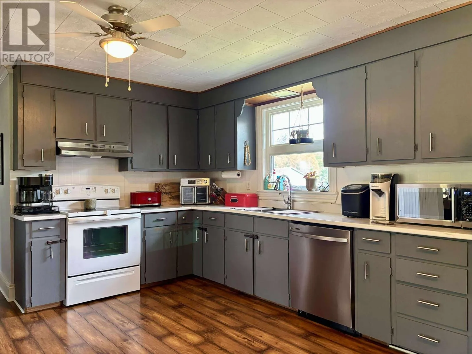 Directly located off Line Road Welcome to 749 Line Road! Set on 3.4 acres of private countryside, this well-maintained 3-bedroom home offers comfortable main-floor living just 5 minutes from Montague, 30 minutes to Charlottetown and 15 minutes from the Northumberland Ferry. The home features an open-concept kitchen and living area, full bathroom, laundry nook, and access to private porch, perfect for relaxing and enjoying the peaceful surroundings. A full basement with new flooring currently being installed provides excellent potential for future finished living space, whether for additional bedrooms, a rec room, or home office. Heating is provided by a wood boiler and stove, with a recently installed heatpump offering efficient year-round comfort and a secondary heat source. With two outbuildings for storage or hobbies, and a practical layout suited for first-time home buyers, young families or retirees seeking one-level living, this property blends rural charm with modern convenience. (id:27476)