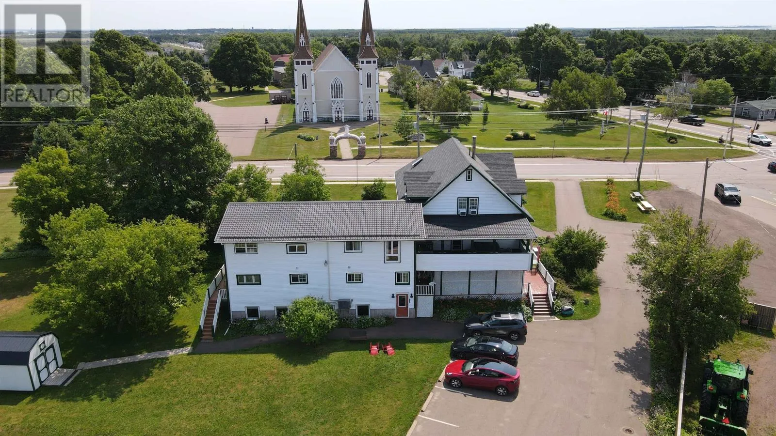 Welcome to the Prince County Guest House, a rare and exceptional opportunity to acquire a fully operational 4-star inn in the quaintand cozy community of Miscouche, Prince Edward Island. Situated on a generous 2-acre lot, this beautifully maintained historicproperty is just 5 minutes from Summerside, 30 minutes from the Confederation Bridge, and 50 minutes to Charlottetown.Directlyacross from the iconic St. John the Baptist Catholic Church and the Acadian Museum, the inn benefits from strong visibility and aprime, high-traffic location with no local competition. The grounds are meticulously maintained, offering stunning views from multipledecks and common areas. Guests are also within close proximity to two provincial parks with beaches, a golf course, the Credit UnionPlace Sports Complex, and a horse racing track.This grand century home features 17 fully renovated guest rooms, each with its ownprivate ensuite bathroom, combining modern amenities with the timeless charm of preserved original character. Additionally, there isa large attic room with a private bathroom?currently used for storage?that can be converted into extra guest accommodations. Aseparate unit with a private bath currently serves as an office. A professionally installed sprinkler system adds to the safety and functionality of the property.The property also includes a fully renovated on-site pub (completed in 2022), which is currently not inoperation but presents excellent potential for future revenue. Beyond lodging, the Prince County Guest House is a successful events and wedding venue, with strong bookings already secured for 2025. There is also untapped potential for winter room rentals, adding to its year-round business viability. A storage shed for bicycles and ample parking enhance the guest experience. Whether you're looking to invest in a turn-key hospitality business or expand an already thriving operation, Prince County Guest House represents a unique and profitable o (id:27476)
