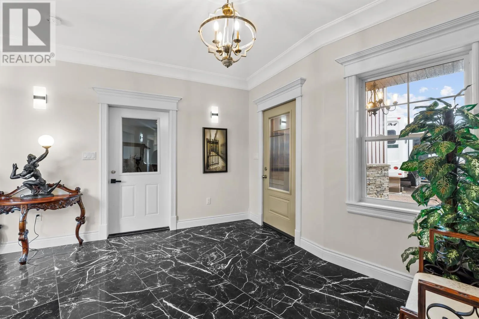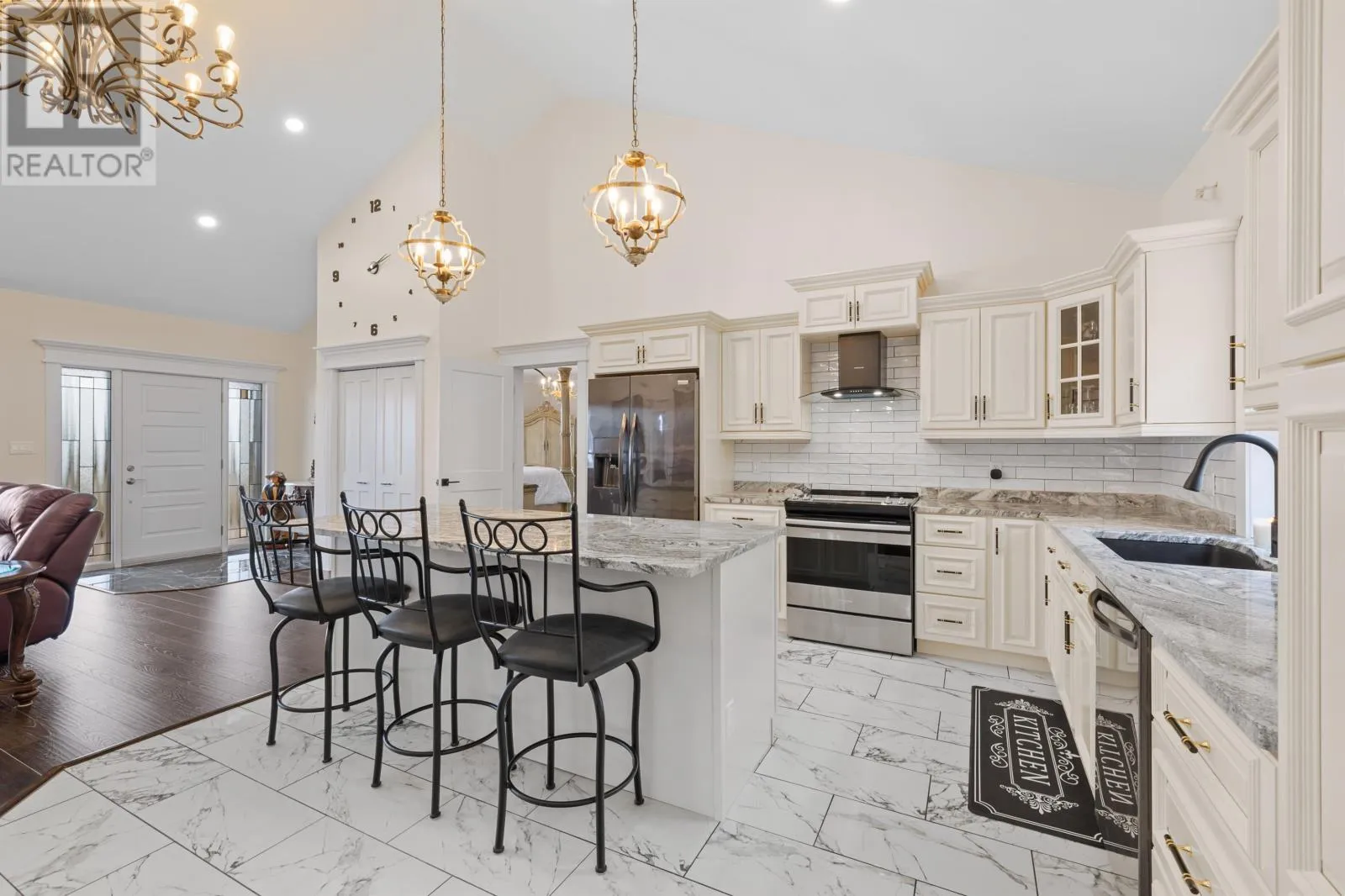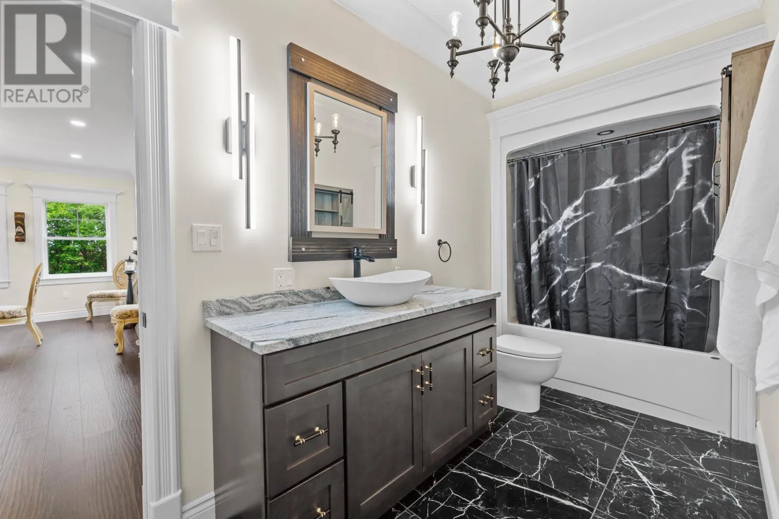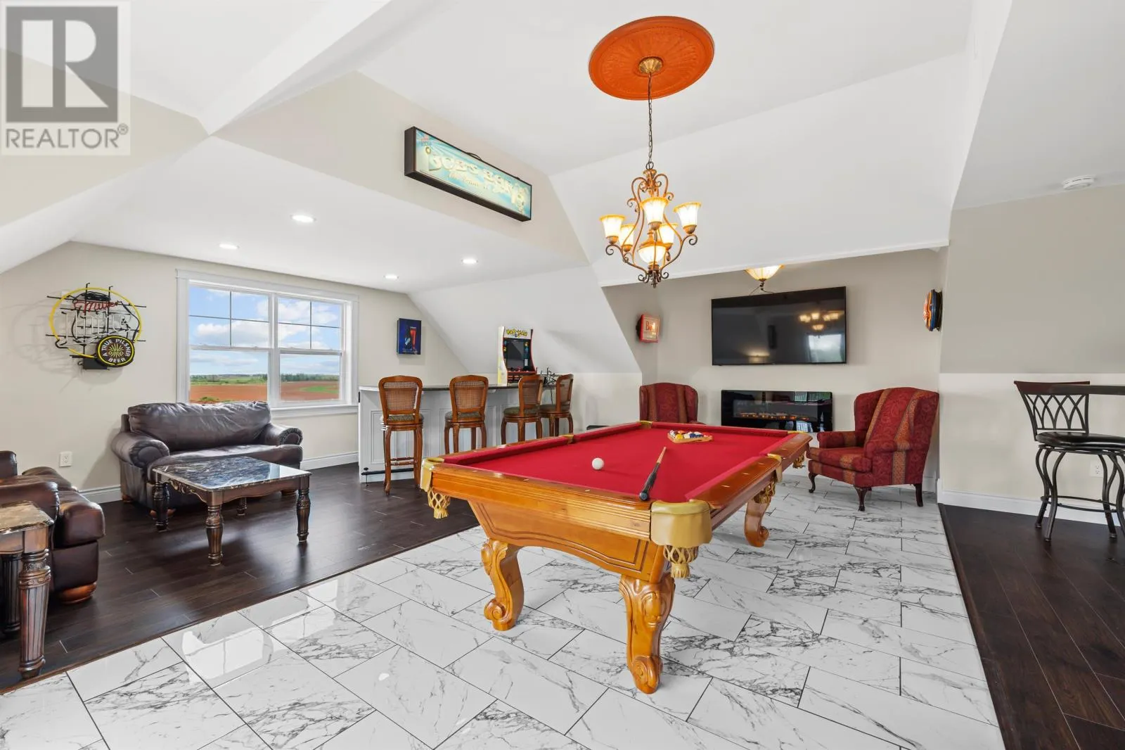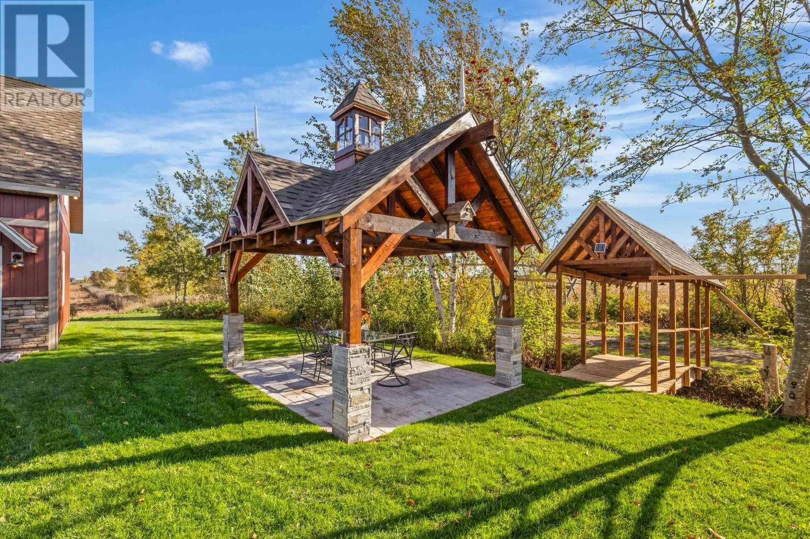 Last house on right hand side on Laughlin Come home to PEI at 29 Laughlin Street in Miscouche where executive luxury meets peaceful East Coast Living. This 3 year old home is tucked away on a quiet cul-de-sac and set on a private 0.4 acre lot. This exceptional property offers over 4000 sq. ft. of refined living space designed for comfort entertainment and flexibility. Just minutes to Summerside and within easy reach of PEI's beaches boating dining and amenities this location delivers both privacy and convenience. Inside the bright open-concept layout impresses with Soaring ceilings Oversized windows Custom moldings and Elegant marble tile flooring. The chef inspired kitchen is a showstopper featuring high-end Appliances Quartz countertops Striking marble backsplash and Ample storage perfect for gatherings large or small. Multiple living and dining areas provide versatile spaces for hosting relaxing or working from home. The primary suite is a true retreat with its own Private deck Spacious walk-in closet and Spa-like ensuite complete with glass raindrop shower Deep soaker tub and Floor-to-ceiling marble. Two additional bedrooms each offer private ensuite baths ideal for family or guests. The property also features two double car garages including a detached garage with its own driveway and fully finished bonus rooms above each ideal as a Fourth bedroom Media room Home office Studio In-law suite or Business space. Outdoor living feels like a private resort with multiple decks A covered stone-floor pergola Charming covered bridge and Matching garden shed All surrounded by mature landscaping for ultimate serenity. (id:27476)
