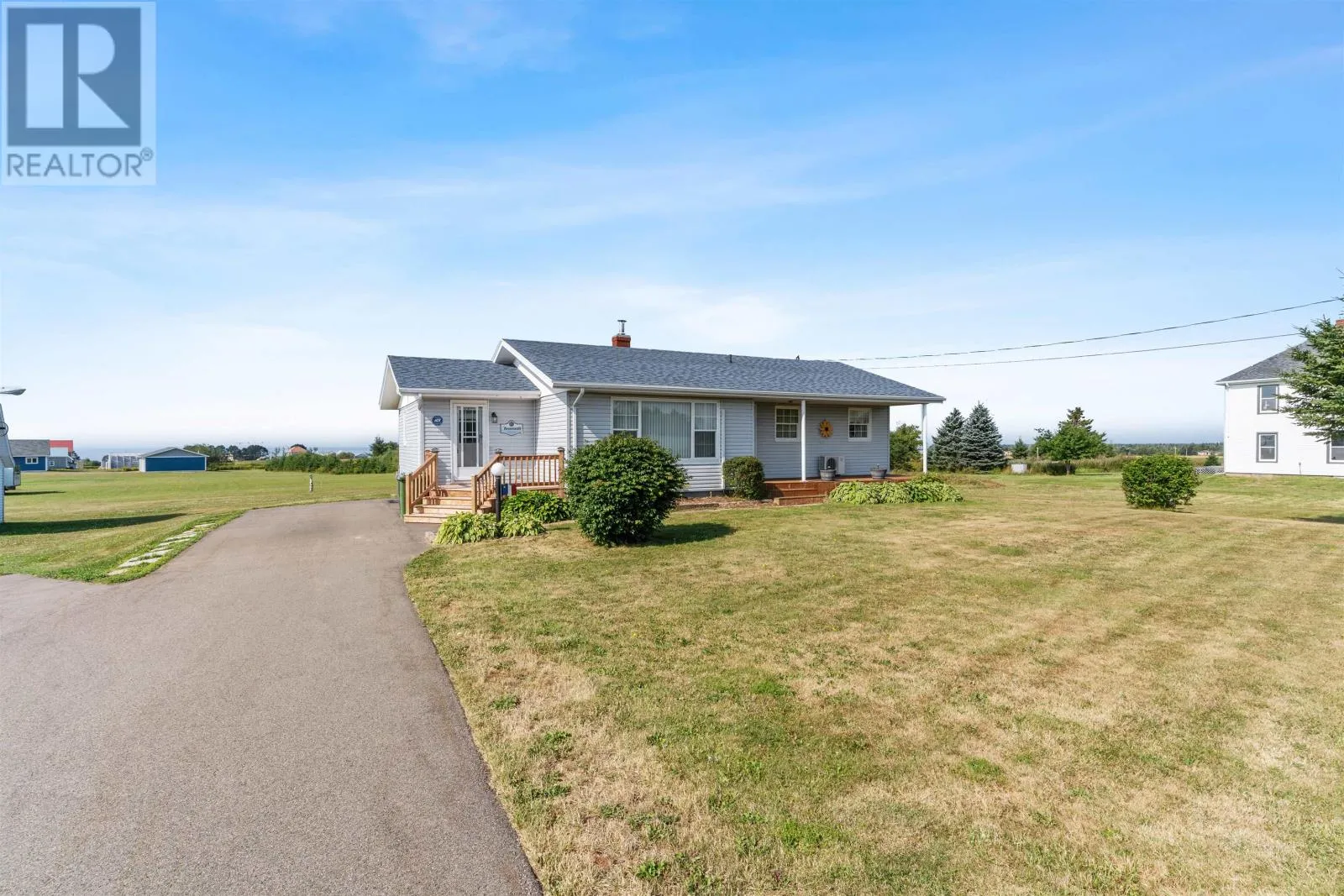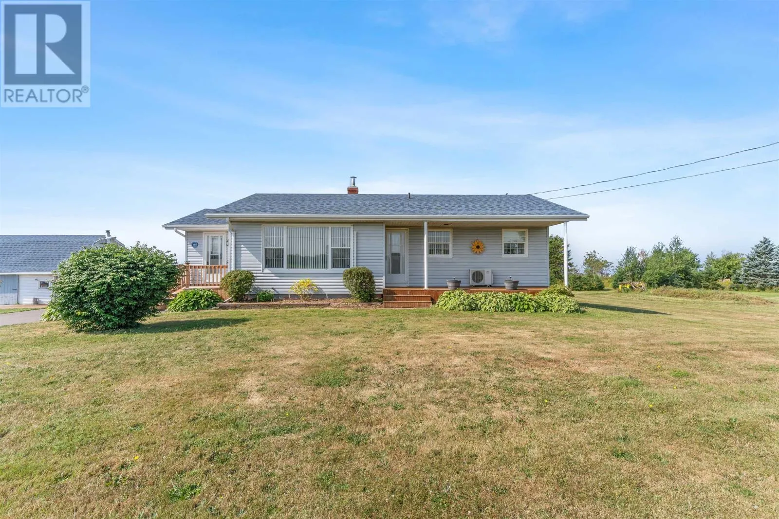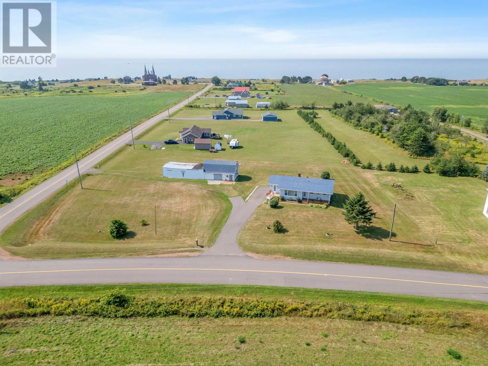 Take a left from Highway 2 towards Wellington, at the stop sign continue straight towards Mont-Carmel, turn left onto Cannontown Road then the property is on the right hand side. This well-cared-for 3-bedroom bungalow offers stunning views of the iconic Mont-Carmel Church and the Northumberland Strait. Situated on 1.26 acres, the property includes a wired 20 Ã 30 barn with a 20 Ã 40 lean-to, plus an 8 Ã 12 shed?ideal for storage, a workshop, or hobby space. Inside, you'll find a spacious kitchen and dining area perfect for hosting, a bright living room that opens to the front veranda, and three generous bedrooms?one featuring convenient main-floor laundry. A full bath and plenty of storage complete the main level. The lower level offers a large rec room, additional storage, and a versatile space ideal for a home office or gym. Heating options include three heat pumps, a wood/oil furnace, and convect air for added comfort. With a peaceful setting, functional outbuildings, and move-in-ready charm, this property is a must-see. Conveniently located just 20 minutes from Summerside, close to all amenities and within walking distance to the beautiful beaches on the south shore of PEI. Don't miss your chance to view this property. (id:27476)