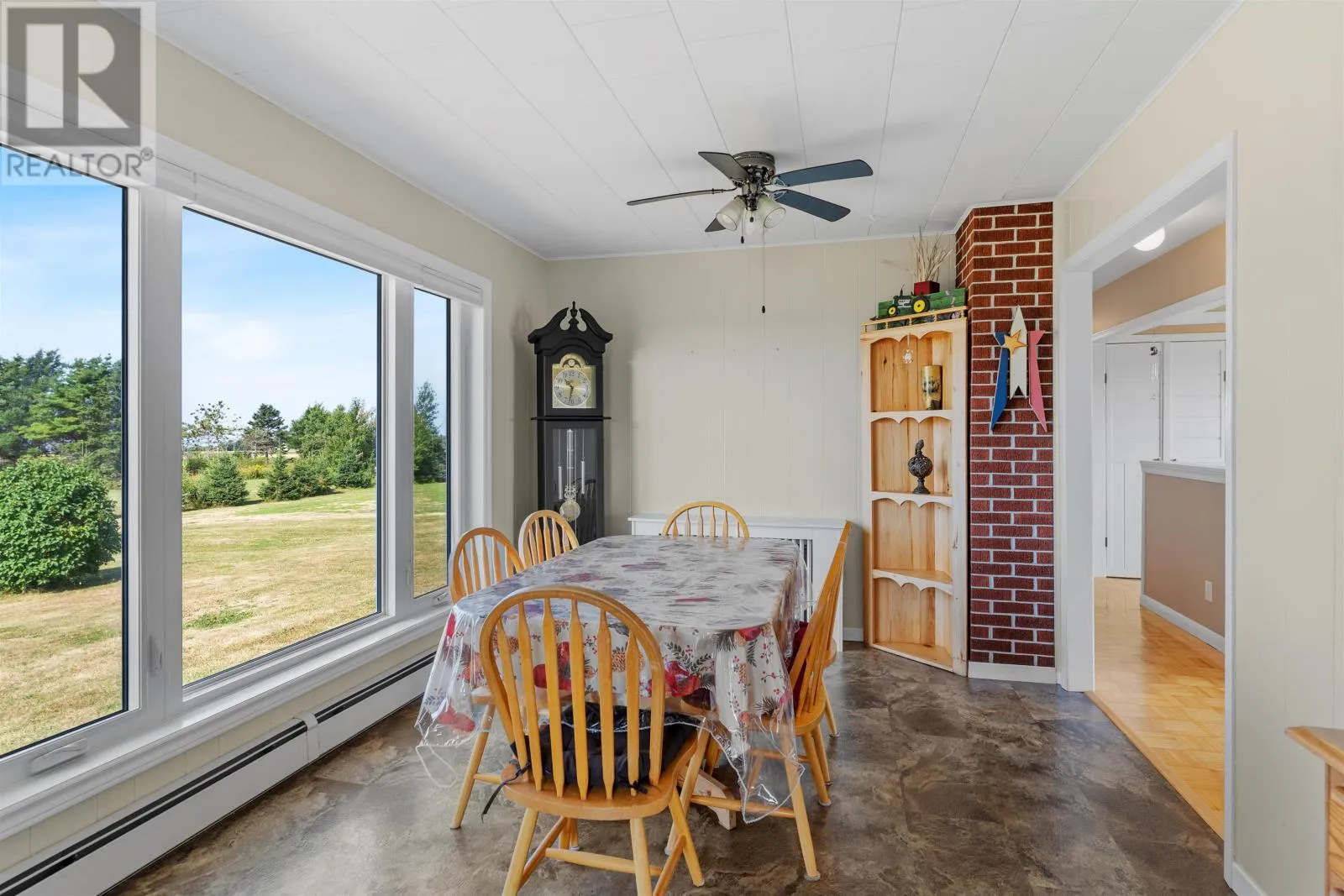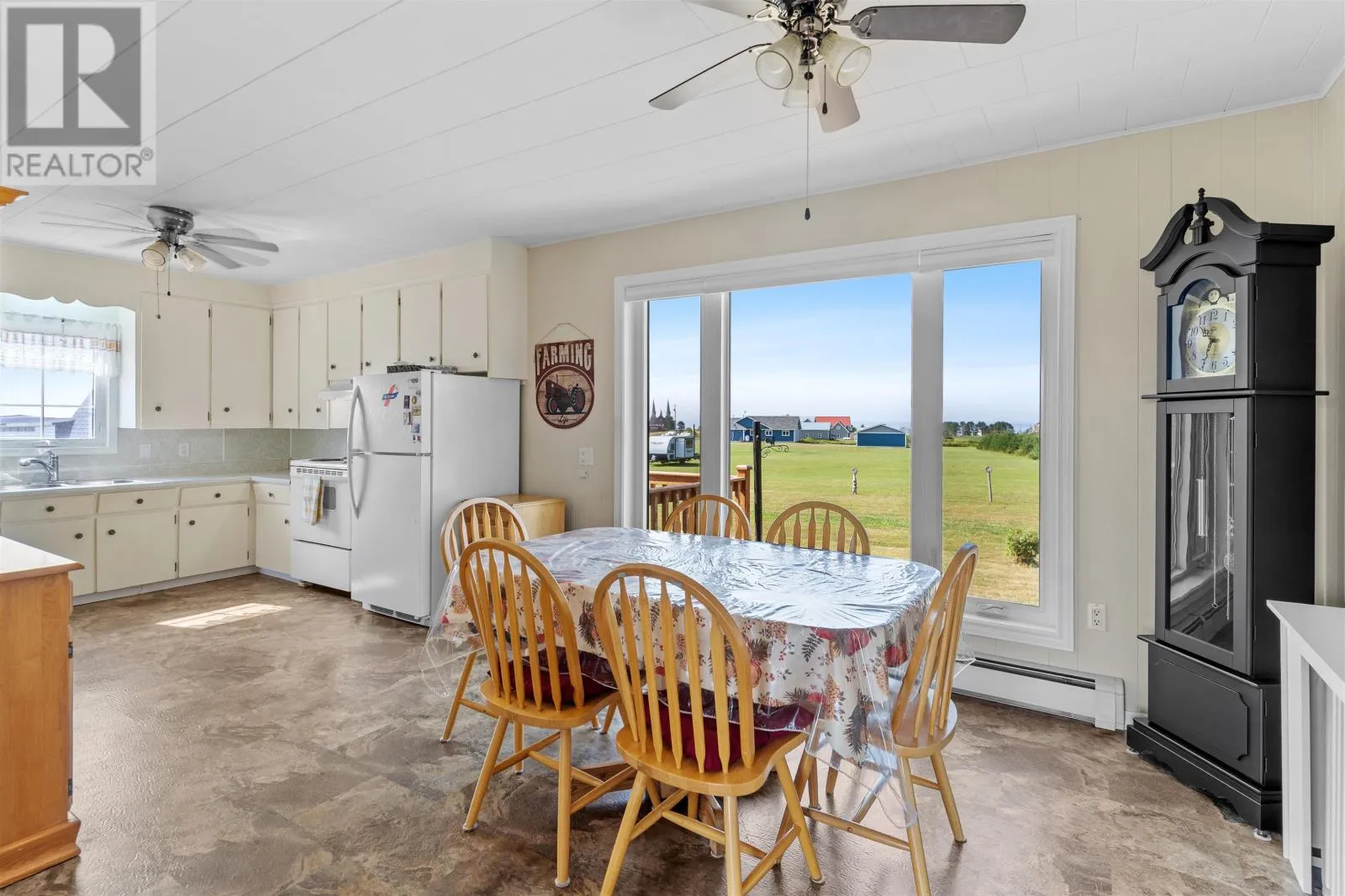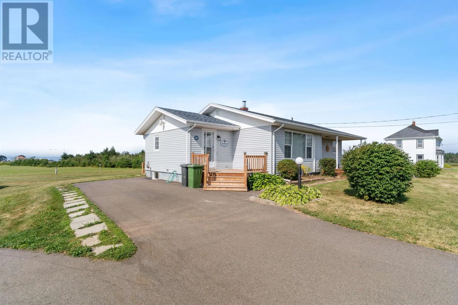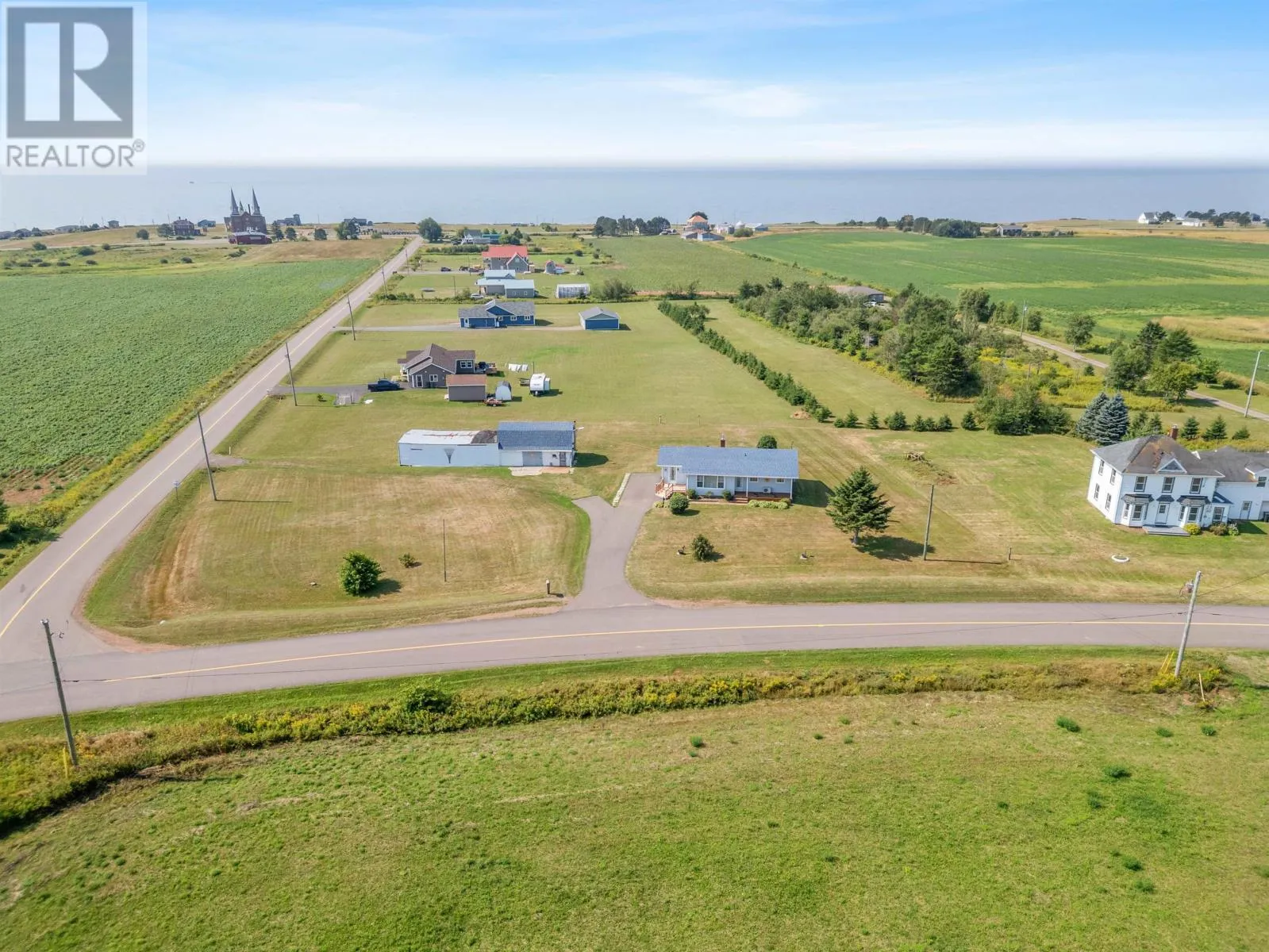 Take a left from Highway 2 towards Wellington, at the stop sign continue straight towards Mont-Carmel, turn left onto Cannontown Road then the property is on the right hand side. This well-cared-for 3-bedroom bungalow offers stunning views of the iconic Mont-Carmel Church and the Northumberland Strait. Situated on 1.26 acres, the property includes a wired 20 Ã 30 barn with a 20 Ã 40 lean-to, plus an 8 Ã 12 shed?ideal for storage, a workshop, or hobby space. Inside, you'll find a spacious kitchen and dining area perfect for hosting, a bright living room that opens to the front veranda, and three generous bedrooms?one featuring convenient main-floor laundry. A full bath and plenty of storage complete the main level. The lower level offers a large rec room, additional storage, and a versatile space ideal for a home office or gym. Heating options include three heat pumps, a wood/oil furnace, and convect air for added comfort. With a peaceful setting, functional outbuildings, and move-in-ready charm, this property is a must-see. Conveniently located just 20 minutes from Summerside, close to all amenities and within walking distance to the beautiful beaches on the south shore of PEI. Don't miss your chance to view this property. (id:27476)