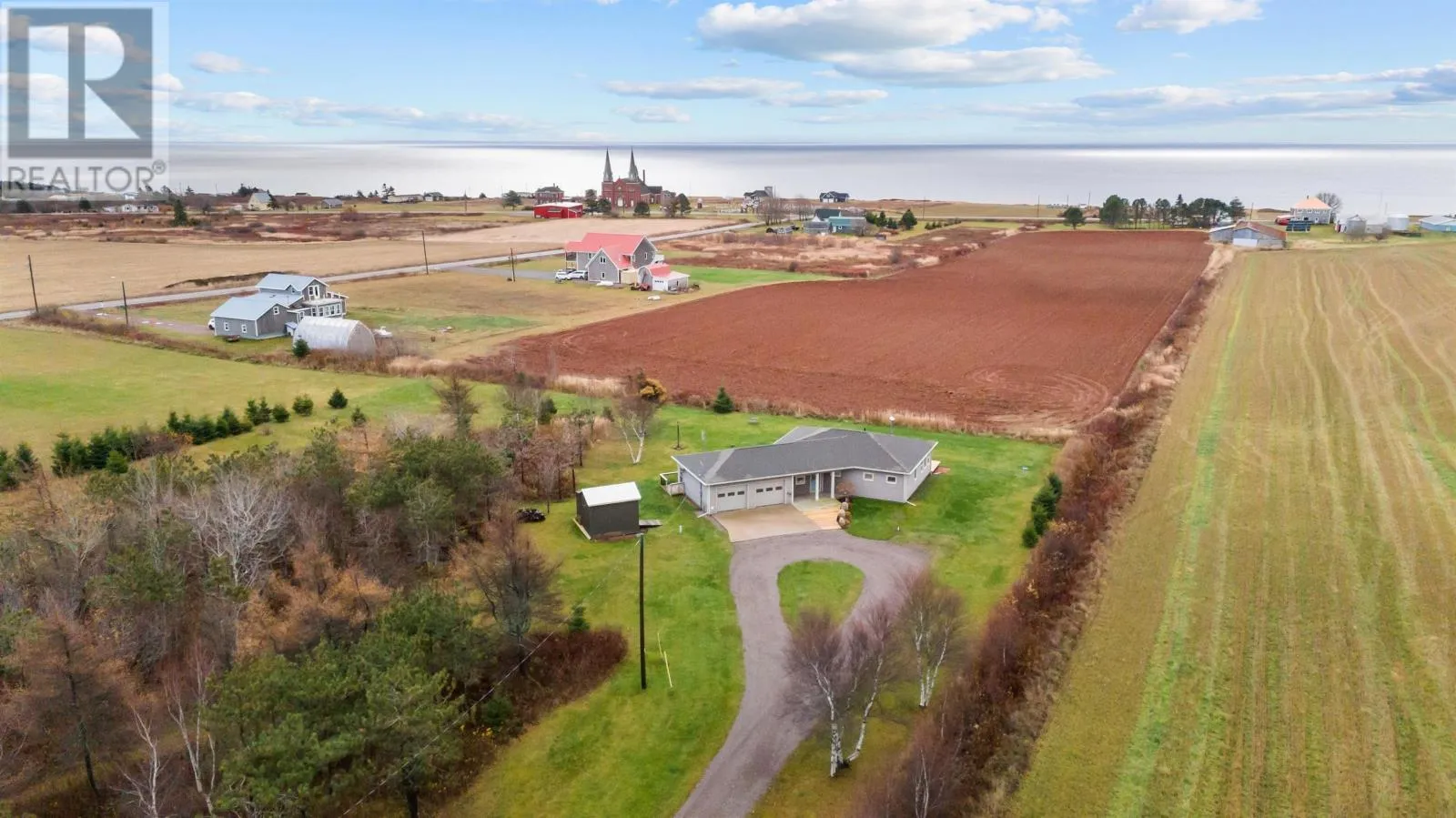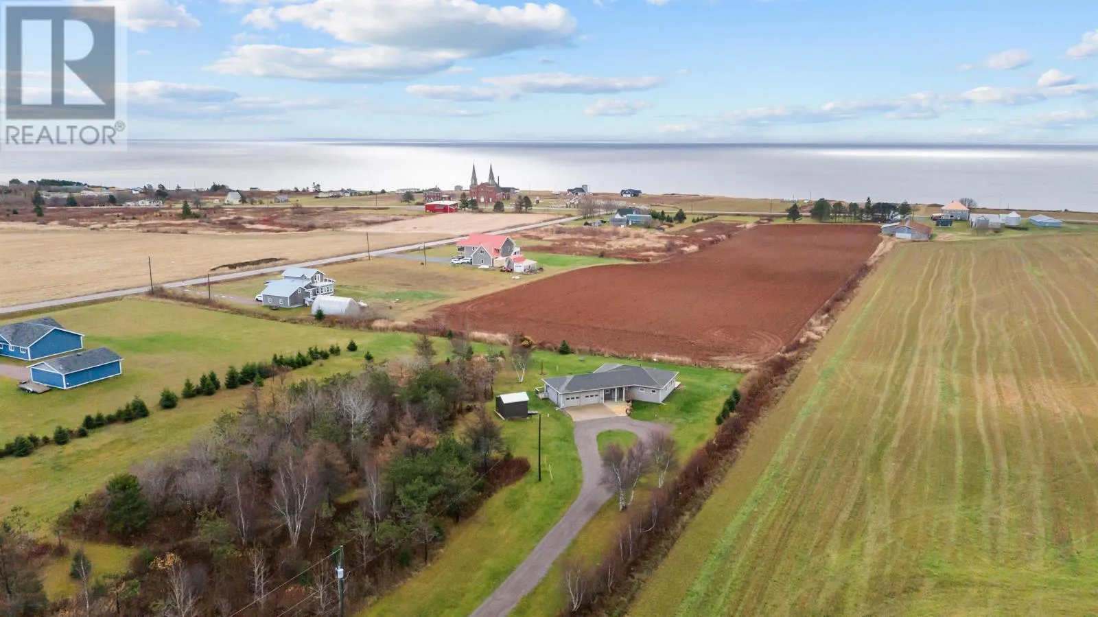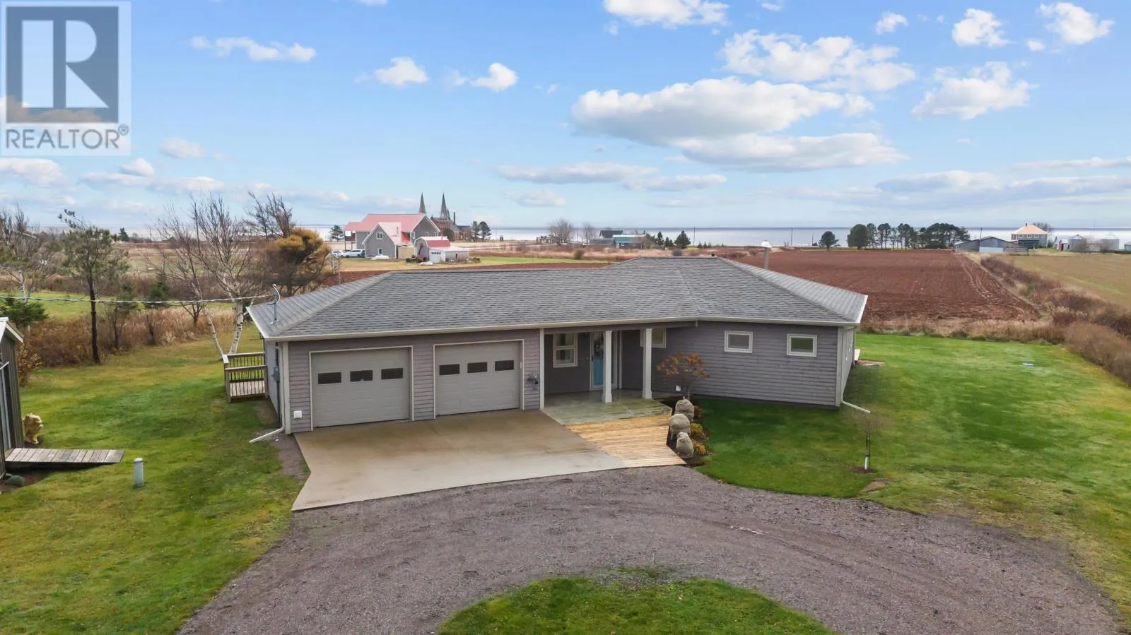 This stunning two-bedroom, two-bathroom home sits on 3.67 acres with views of the Northumberland Strait and the iconic Mont Carmel Church from its cozy sunroom. The house features a beautifully designed kitchen with a convenient walk-in pantry, a spacious and heated two-car wired garage, and has been exceptionally well maintained, offering a move-in-ready experience. The property boasts a long private driveway, an additional barn for extra storage, and plenty of outdoor space to enjoy. New deck added and wood stove added in 2025. Located just 15 minutes from Summerside, this home offers the perfect balance of peaceful rural living and easy access to amenities. With its charm, privacy, and functionality, this property is ideal for those seeking a serene and scenic retreat. (id:27476)