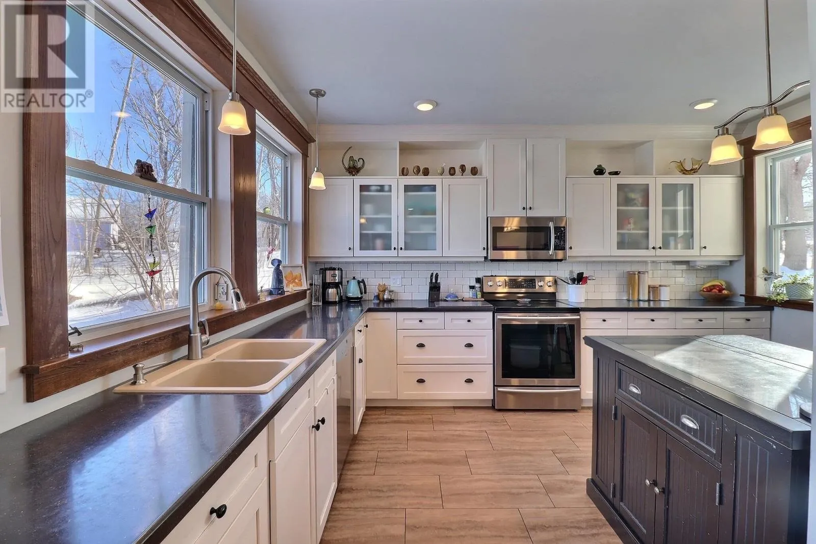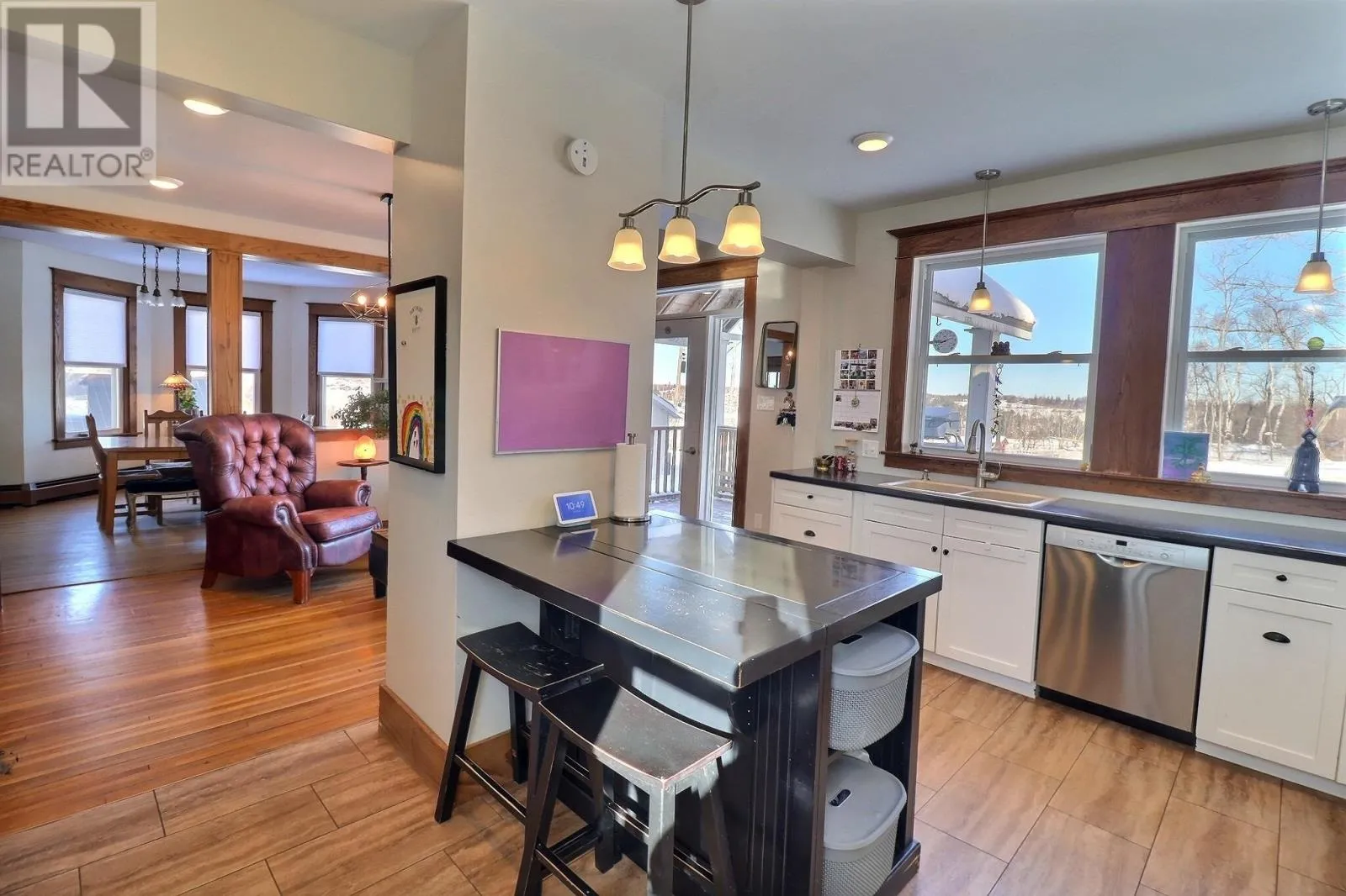 Main Street, continuing across bridge towards Lower Montague, Home is on the Left ( waterside) When Viewing This Property On Realtor.ca Please Click On The Multimedia or Virtual Tour Link For More Property Info. This stately historic home blends modern amenities with classic charm and offers a partial water view. The main floor features a bright kitchen, dining room, family room with a Quadra-Fire pellet stove, powder room, large living room, and formal entry. A thoughtful renovation preserves the 1920s character. Relax on the front porch or the covered rear porch with views of the Montague River. The second floor has four spacious bedrooms, a bathroom with an original pedestal sink, and a bedroom with a wood-burning fireplace. The finished attic includes a games/music room with natural wood and exposed brick. The basement offers a mudroom, storage, and insulation for low heating costs. The two-bay garage is insulated, wired, and ideal for a workshop. Schedule your visit today! *All measurements are estimates and to be verified by the purchaser. (id:27476)