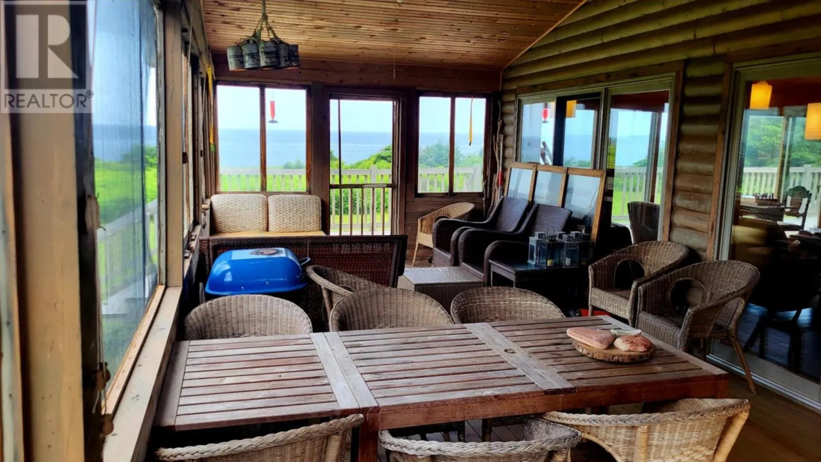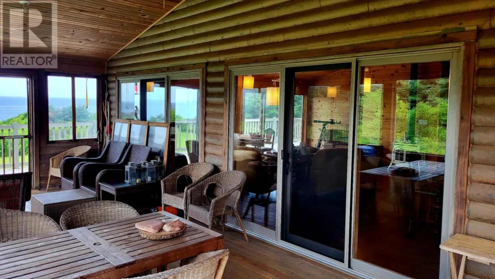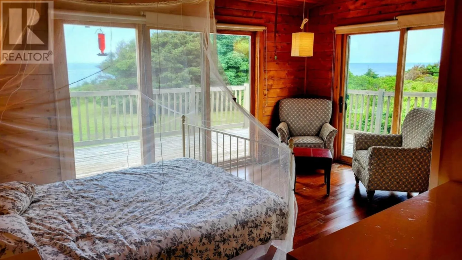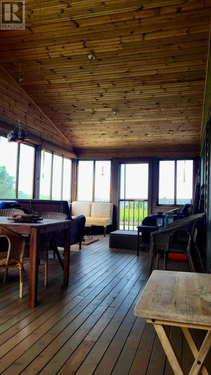 Marion Way is between the neighnoring houses. It may look like a driveway but this is Marion Way that leads to the oceanfront log home. Nestled on 25 acres along Monticello?s picturesque coastline is this Riverbend Log Home offering a private oceanfront retreat. This selcuded oasis is surrounded by nature?s finest, this property is a haven for nature lovers, enveloped by the dramatic beauty of red cliffs, wild roses, and fragrant thyme, with rabbits hopping by, eagles and hawks soaring overhead, and whales occasionally gracing the horizon. This private, 4+ bedroom log home, used as a three-season home, is designed for comfort and sustainability, boasting exceptional energy efficiency with spray foam insulation in both floor and ceiling, ensuring significant energy savings and comfort. With a few thoughtful modifications, this home could easily be adapted for year-round living. The home?s ocean-facing side is a masterpiece of design, featuring near floor-to-ceiling glass through expansive patio doors that capture the ever-changing beauty of the ocean and sky. Monticello is one of the rare gems in the world where you can enjoy both sunrises and sunsets six months of the year over the water, adding to its allure. The heart of the home is the expansive great room, complete with cathedral ceilings, a cozy gas fireplace, and a large kitchen island perfect for gatherings. A screened in porch runs the width of the home and is also attached by an almost wall of glass, ideal for joying the sweet, salty sea air. This wall of patio doors leads to a stunning 65? x 6' wraparound deck, offering sweeping views of the coastline. The master bedroom is a serene escape, featuring an ensuite bathroom and its own private deck for quiet moments by the sea. Thoughtful details include two sun tunnels that bathe the interior hallway in natural light and a cell phone booster for modern connectivity. The sprawling 25-acre estate ensures continued privacy and abundant opportunities for future development, if desired. (id:27476)