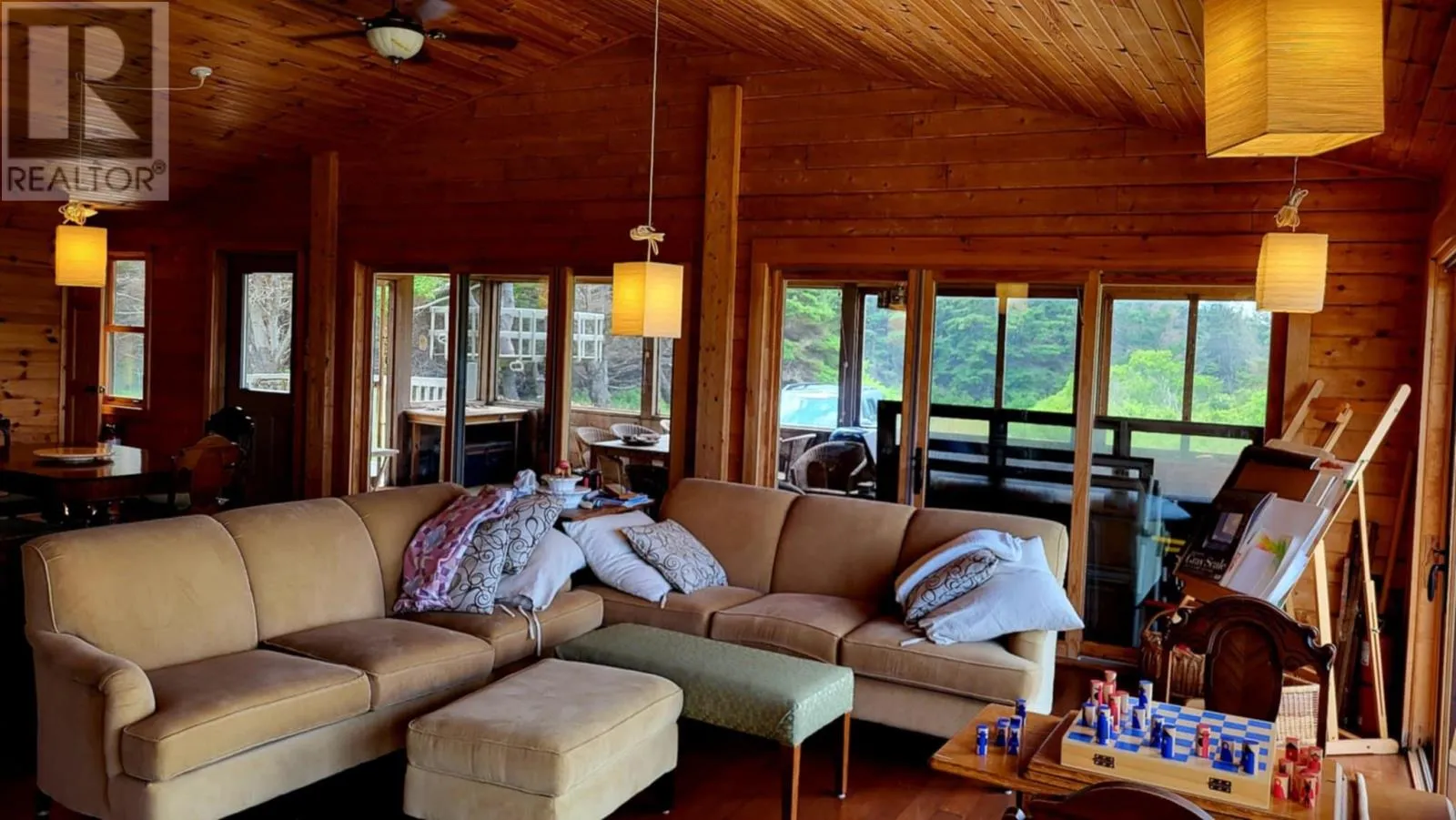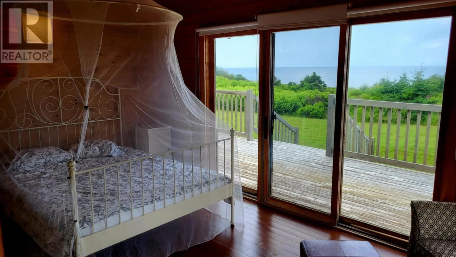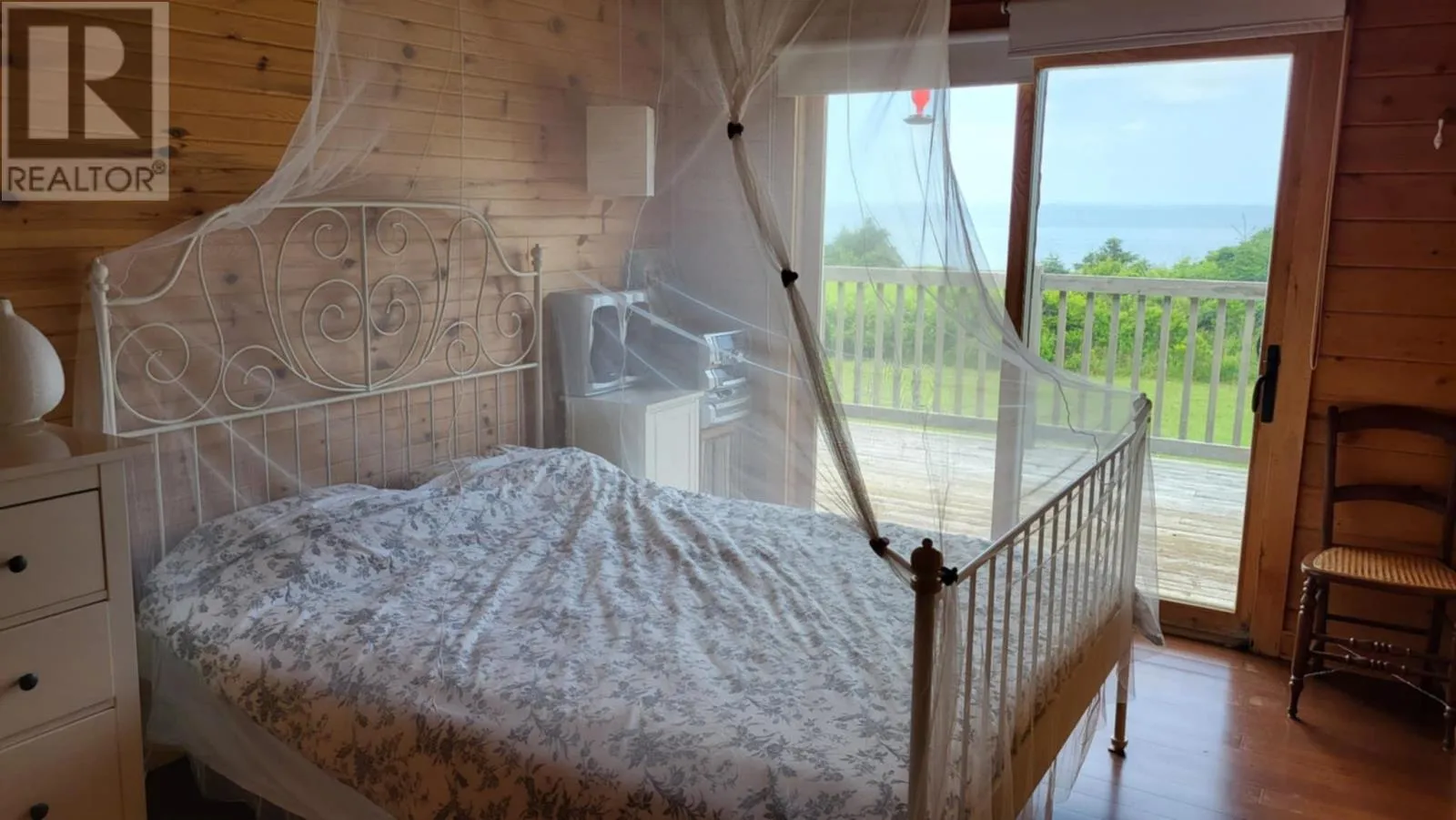 Marion Way is between the neighnoring houses. It may look like a driveway but this is Marion Way that leads to the oceanfront log home. Nestled on 25 acres along Monticello?s picturesque coastline is this Riverbend Log Home offering a private oceanfront retreat. This selcuded oasis is surrounded by nature?s finest, this property is a haven for nature lovers, enveloped by the dramatic beauty of red cliffs, wild roses, and fragrant thyme, with rabbits hopping by, eagles and hawks soaring overhead, and whales occasionally gracing the horizon. This private, 4+ bedroom log home, used as a three-season home, is designed for comfort and sustainability, boasting exceptional energy efficiency with spray foam insulation in both floor and ceiling, ensuring significant energy savings and comfort. With a few thoughtful modifications, this home could easily be adapted for year-round living. The home?s ocean-facing side is a masterpiece of design, featuring near floor-to-ceiling glass through expansive patio doors that capture the ever-changing beauty of the ocean and sky. Monticello is one of the rare gems in the world where you can enjoy both sunrises and sunsets six months of the year over the water, adding to its allure. The heart of the home is the expansive great room, complete with cathedral ceilings, a cozy gas fireplace, and a large kitchen island perfect for gatherings. A screened in porch runs the width of the home and is also attached by an almost wall of glass, ideal for joying the sweet, salty sea air. This wall of patio doors leads to a stunning 65? x 6' wraparound deck, offering sweeping views of the coastline. The master bedroom is a serene escape, featuring an ensuite bathroom and its own private deck for quiet moments by the sea. Thoughtful details include two sun tunnels that bathe the interior hallway in natural light and a cell phone booster for modern connectivity. The sprawling 25-acre estate ensures continued privacy and abundant opportunities for future development, if desired. (id:27476)