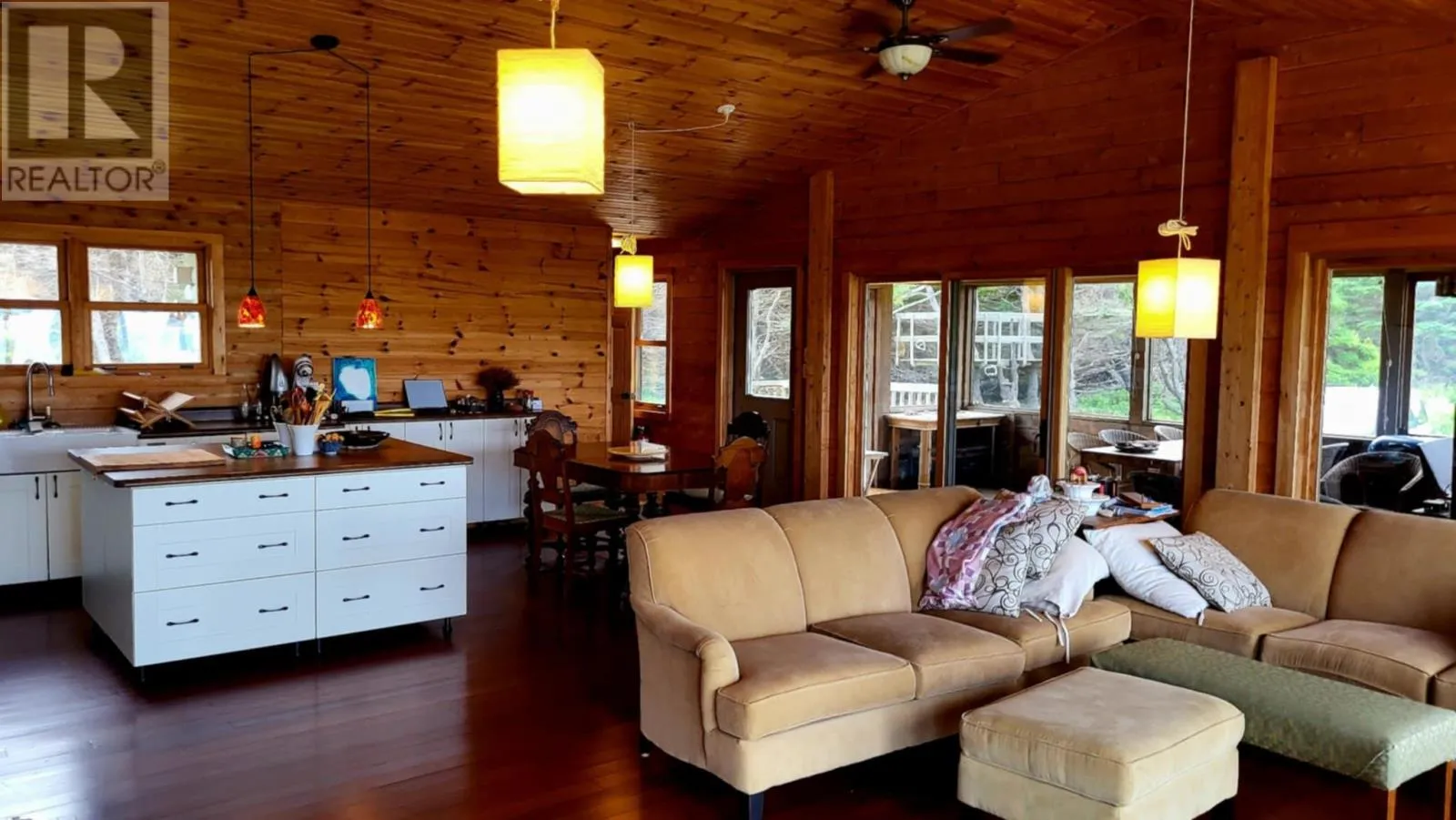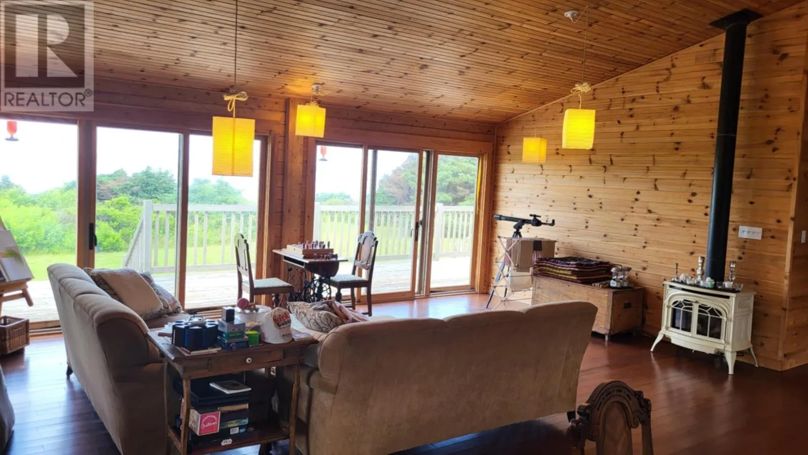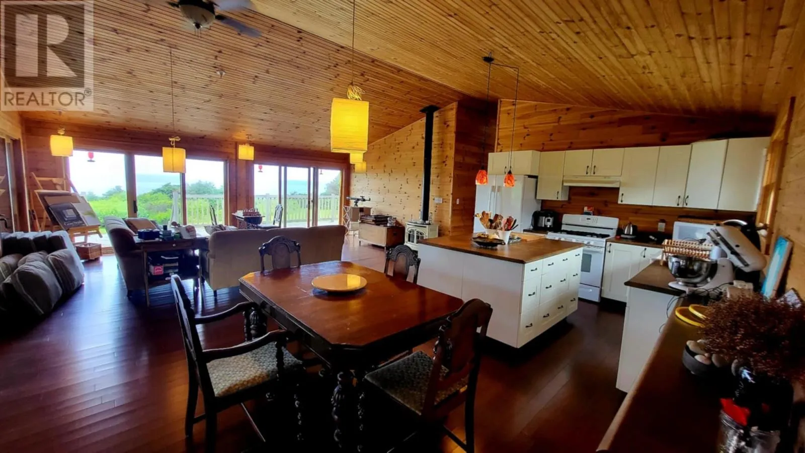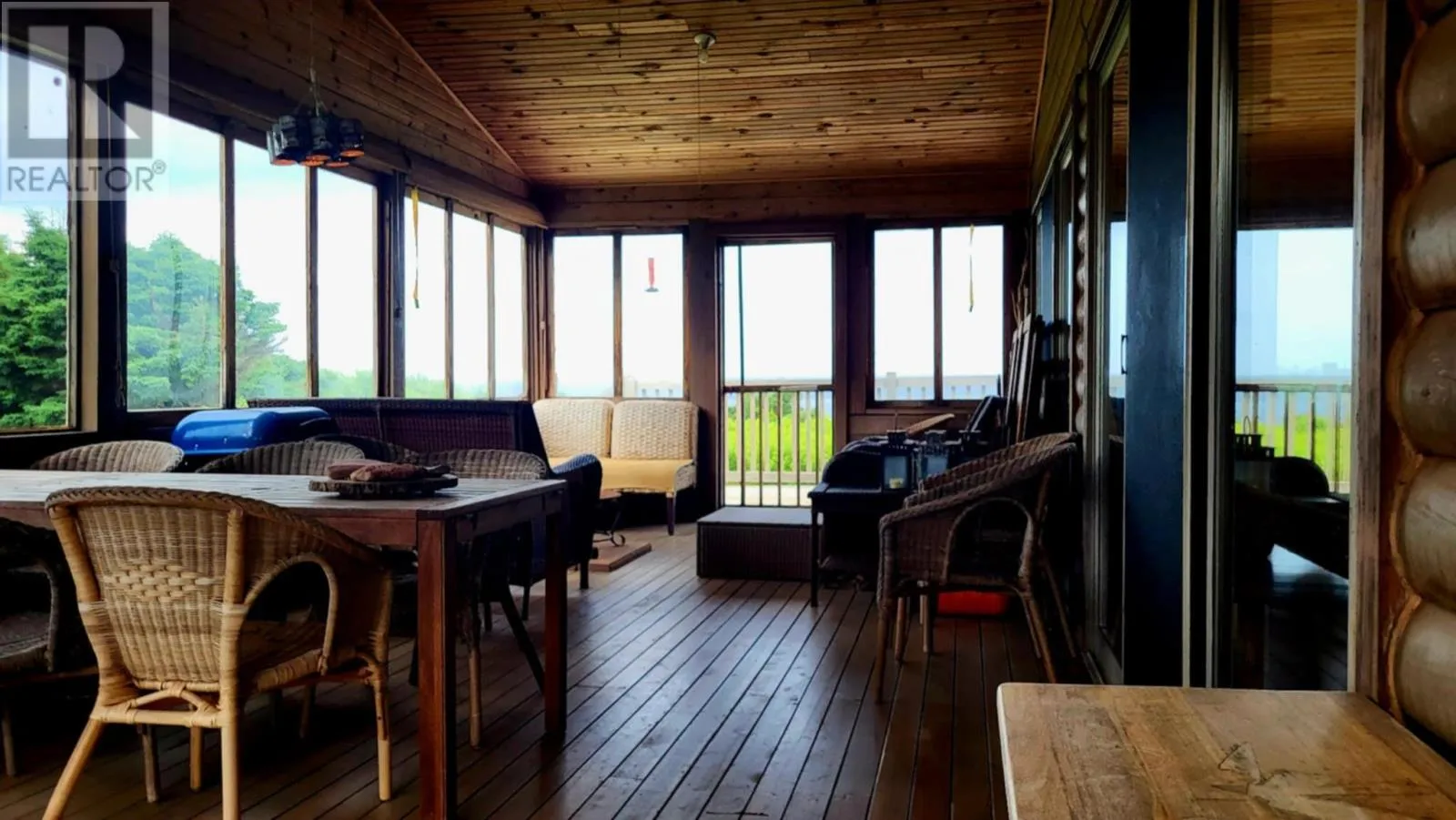 Marion Way is between the neighnoring houses. It may look like a driveway but this is Marion Way that leads to the oceanfront log home. Nestled on 25 acres along Monticello?s picturesque coastline is this Riverbend Log Home offering a private oceanfront retreat. This selcuded oasis is surrounded by nature?s finest, this property is a haven for nature lovers, enveloped by the dramatic beauty of red cliffs, wild roses, and fragrant thyme, with rabbits hopping by, eagles and hawks soaring overhead, and whales occasionally gracing the horizon. This private, 4+ bedroom log home, used as a three-season home, is designed for comfort and sustainability, boasting exceptional energy efficiency with spray foam insulation in both floor and ceiling, ensuring significant energy savings and comfort. With a few thoughtful modifications, this home could easily be adapted for year-round living. The home?s ocean-facing side is a masterpiece of design, featuring near floor-to-ceiling glass through expansive patio doors that capture the ever-changing beauty of the ocean and sky. Monticello is one of the rare gems in the world where you can enjoy both sunrises and sunsets six months of the year over the water, adding to its allure. The heart of the home is the expansive great room, complete with cathedral ceilings, a cozy gas fireplace, and a large kitchen island perfect for gatherings. A screened in porch runs the width of the home and is also attached by an almost wall of glass, ideal for joying the sweet, salty sea air. This wall of patio doors leads to a stunning 65? x 6' wraparound deck, offering sweeping views of the coastline. The master bedroom is a serene escape, featuring an ensuite bathroom and its own private deck for quiet moments by the sea. Thoughtful details include two sun tunnels that bathe the interior hallway in natural light and a cell phone booster for modern connectivity. The sprawling 25-acre estate ensures continued privacy and abundant opportunities for future development, if desired. (id:27476)