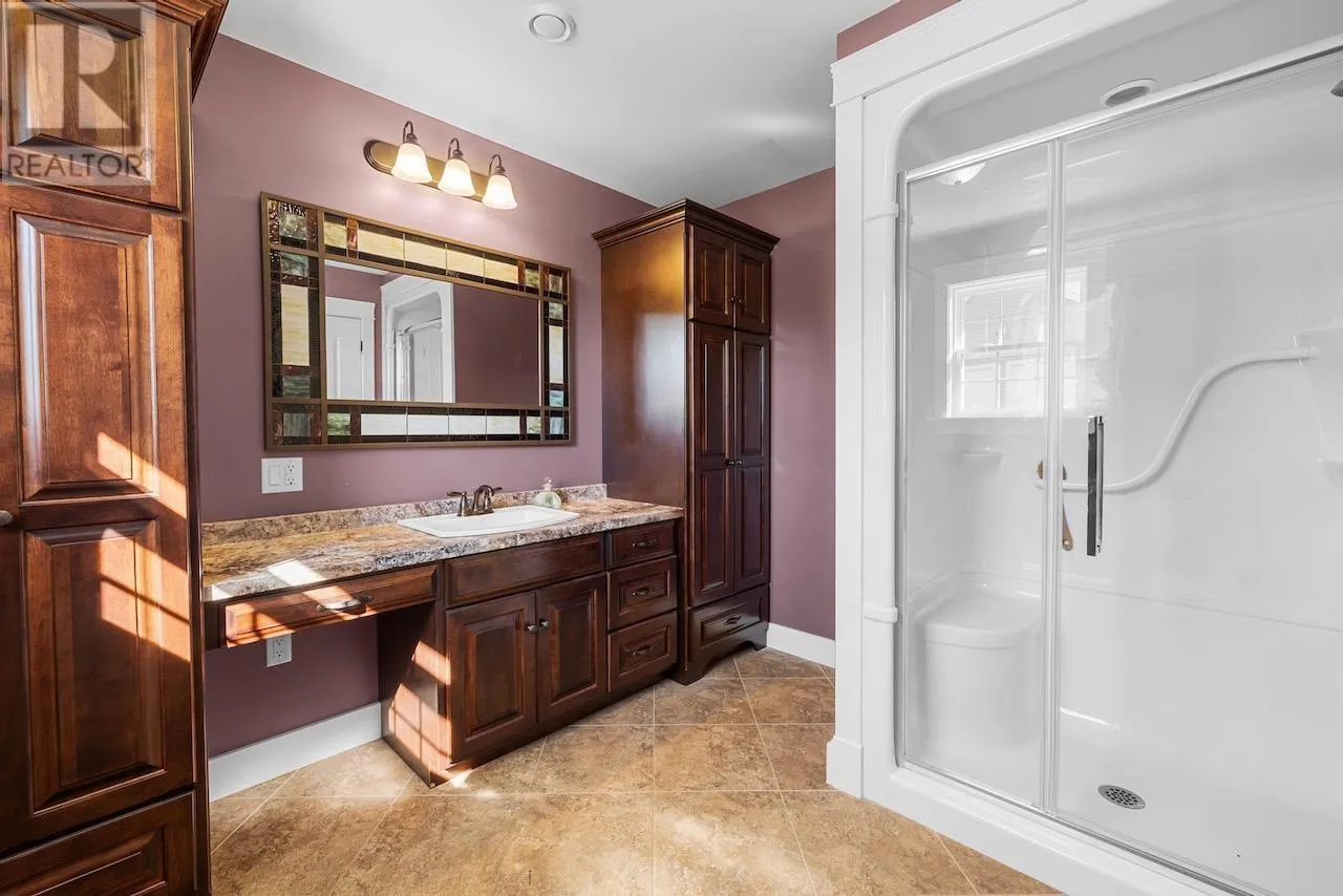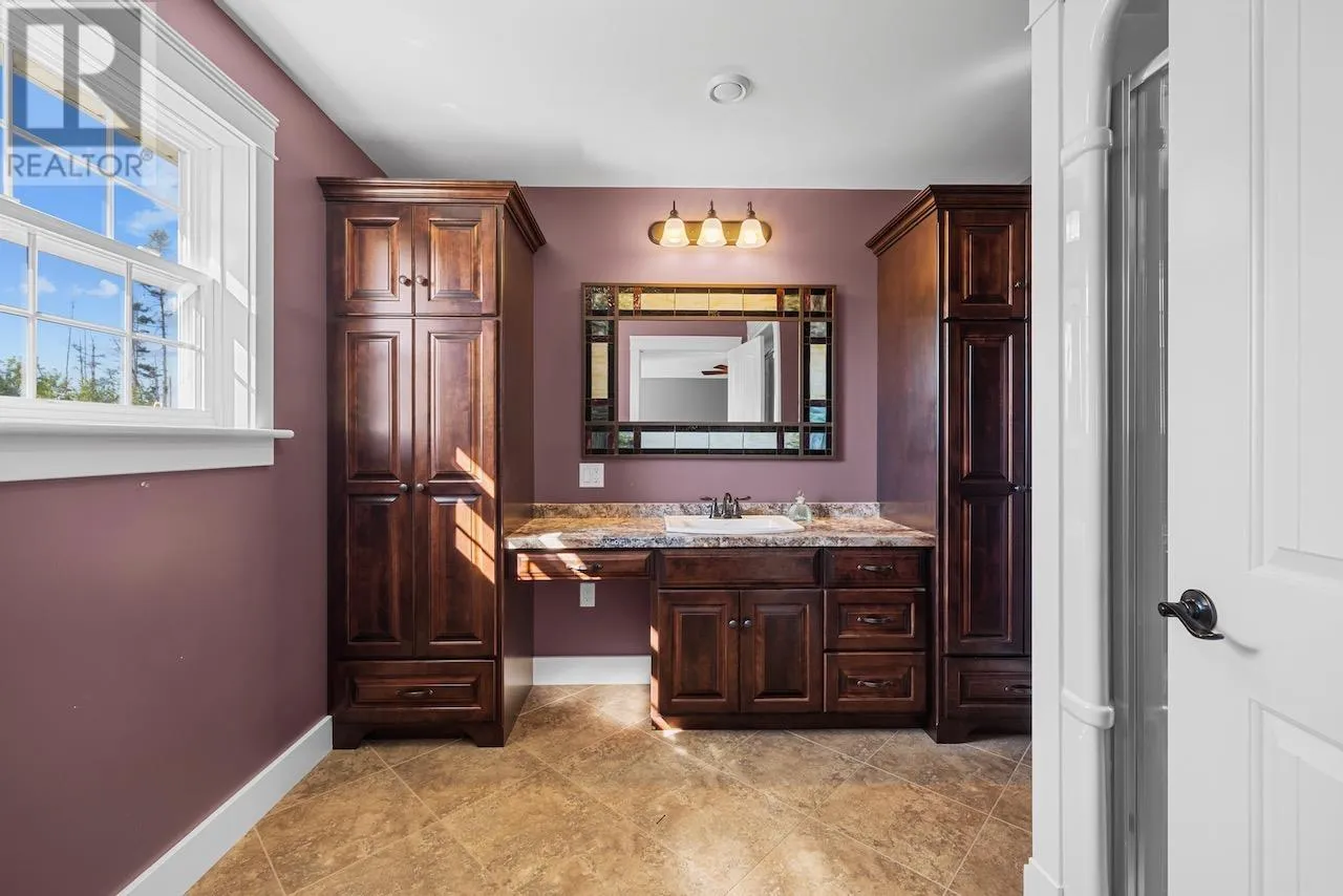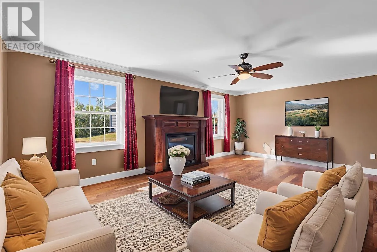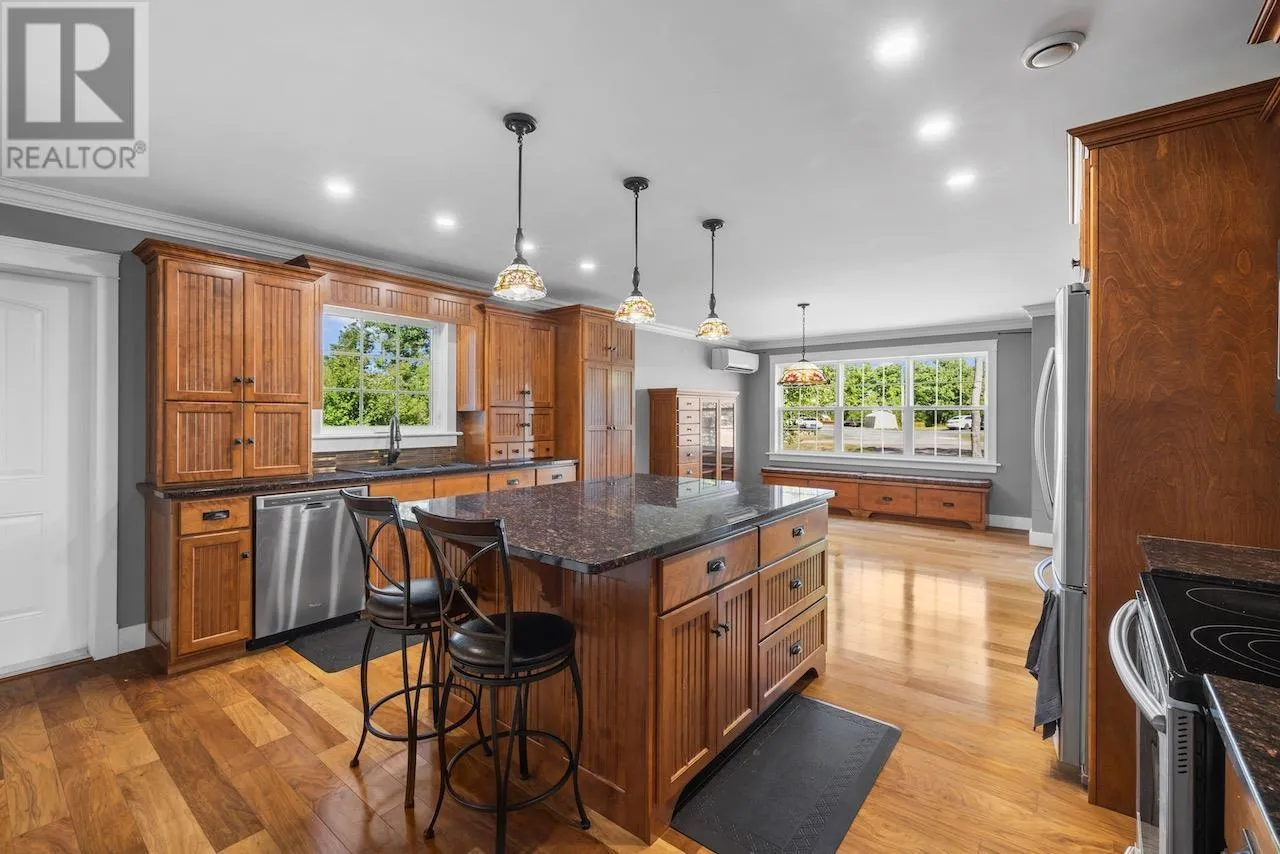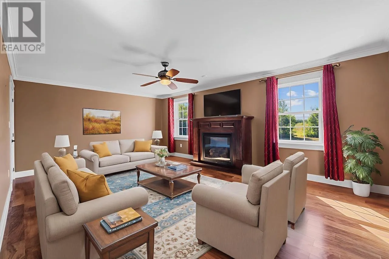Just moments from one of PEI's most popular lakeside beaches, this stunning home offers comfort, space, and thoughtful design both inside and out. Set on a beautifully landscaped 0.673-acre lot, it provides the perfect blend of coastal living and modern convenience. Inside, no detail has been spared. The spacious kitchen boasts an abundance of well-planned cabinetry, seamlessly flowing into the bright dining area and family room. The home features three generous bedrooms, including a luxurious primary suite with a large ensuite bath and walk-in closet. A cozy living room with a propane fireplace makes the perfect gathering place on cooler evenings. Additional highlights include a home office, convenient laundry room, and a second full bathroom. For parking and storage, this property delivers in a big way. The attached heated double garage includes a large storage loft above, while a detached outbuilding offers space for two more vehicles, making it ideal for hobbyists, workshops, or additional storage needs. The interlocking circular paved driveway adds both beauty and function to the property's curb appeal. Whether you're seeking a year-round residence or a serene retreat close to the water, this property has it all. Measurements are approximate and should be verified by interested purchasers. Some photos have been virtually staged. (id:27476)