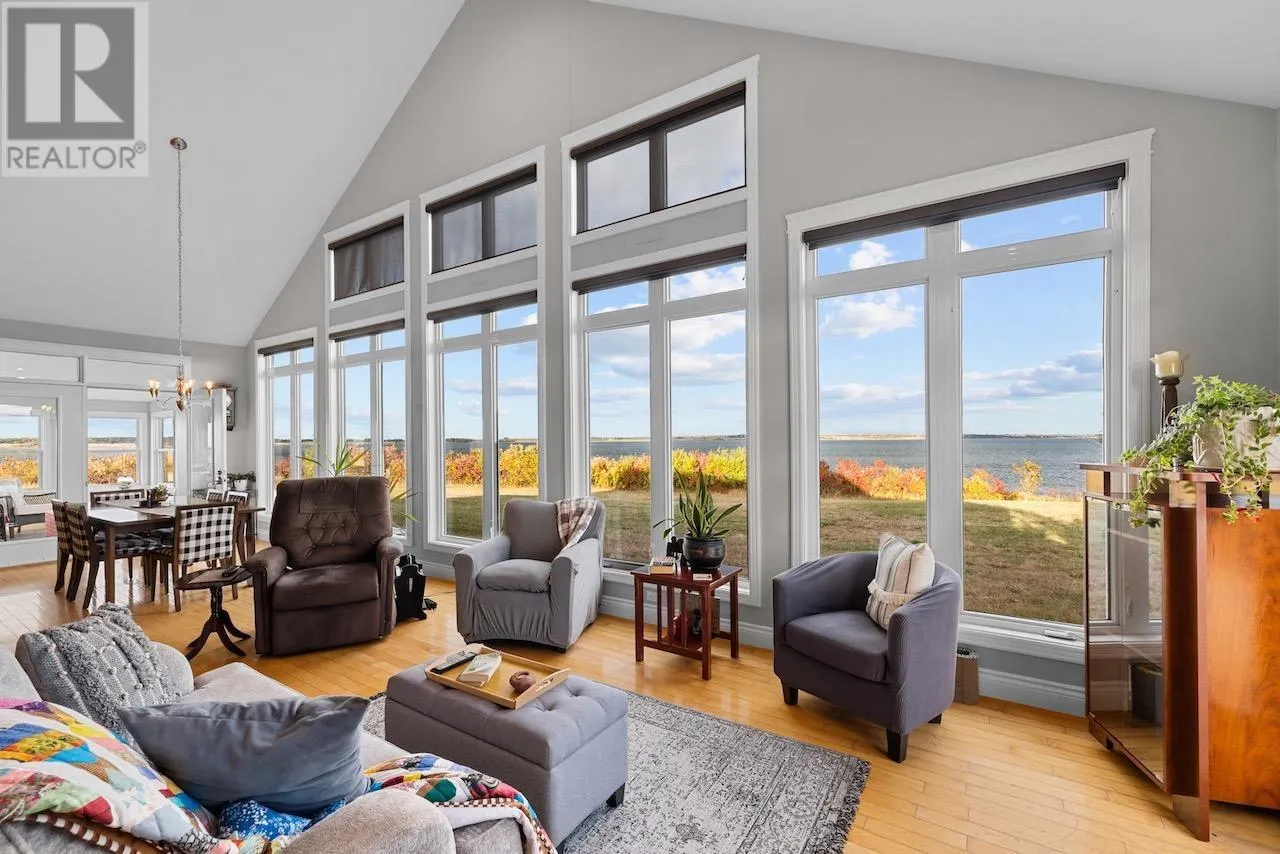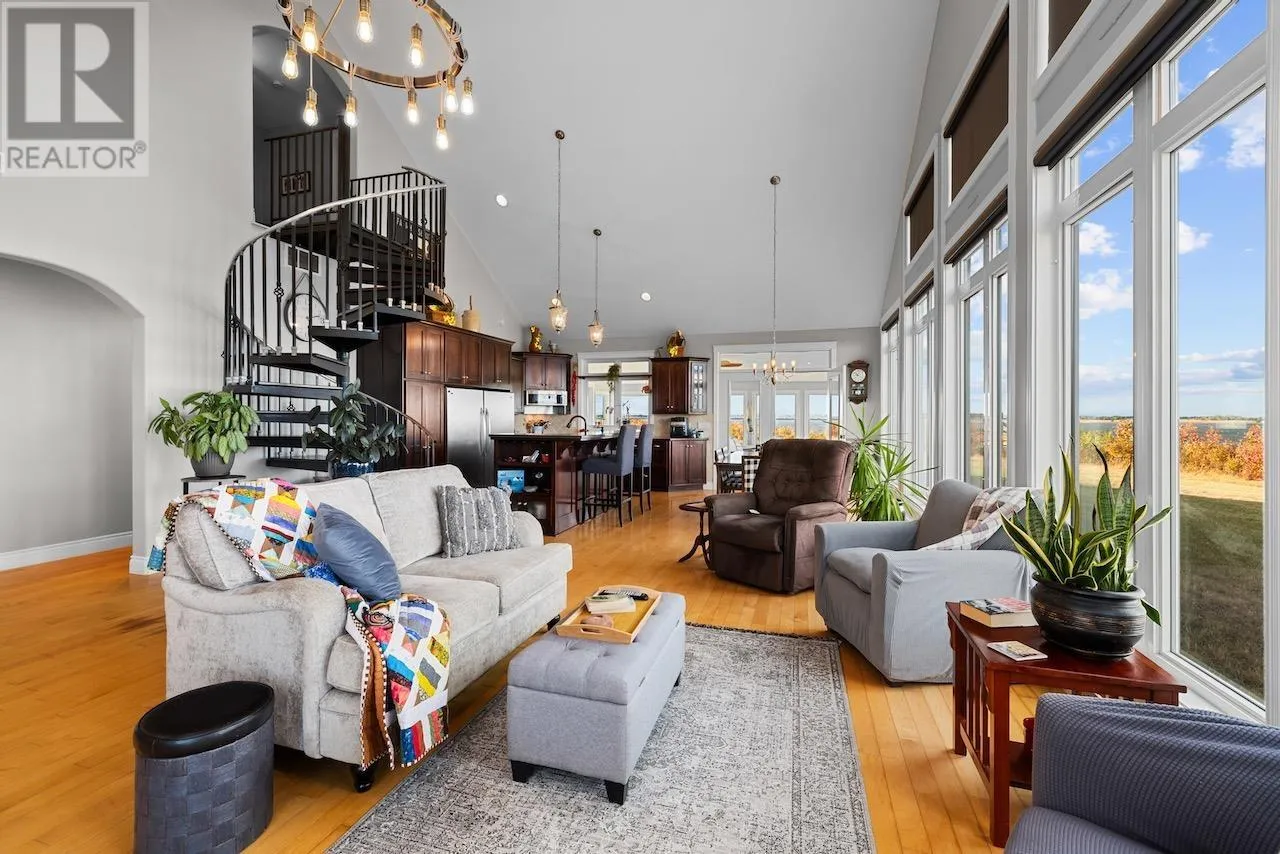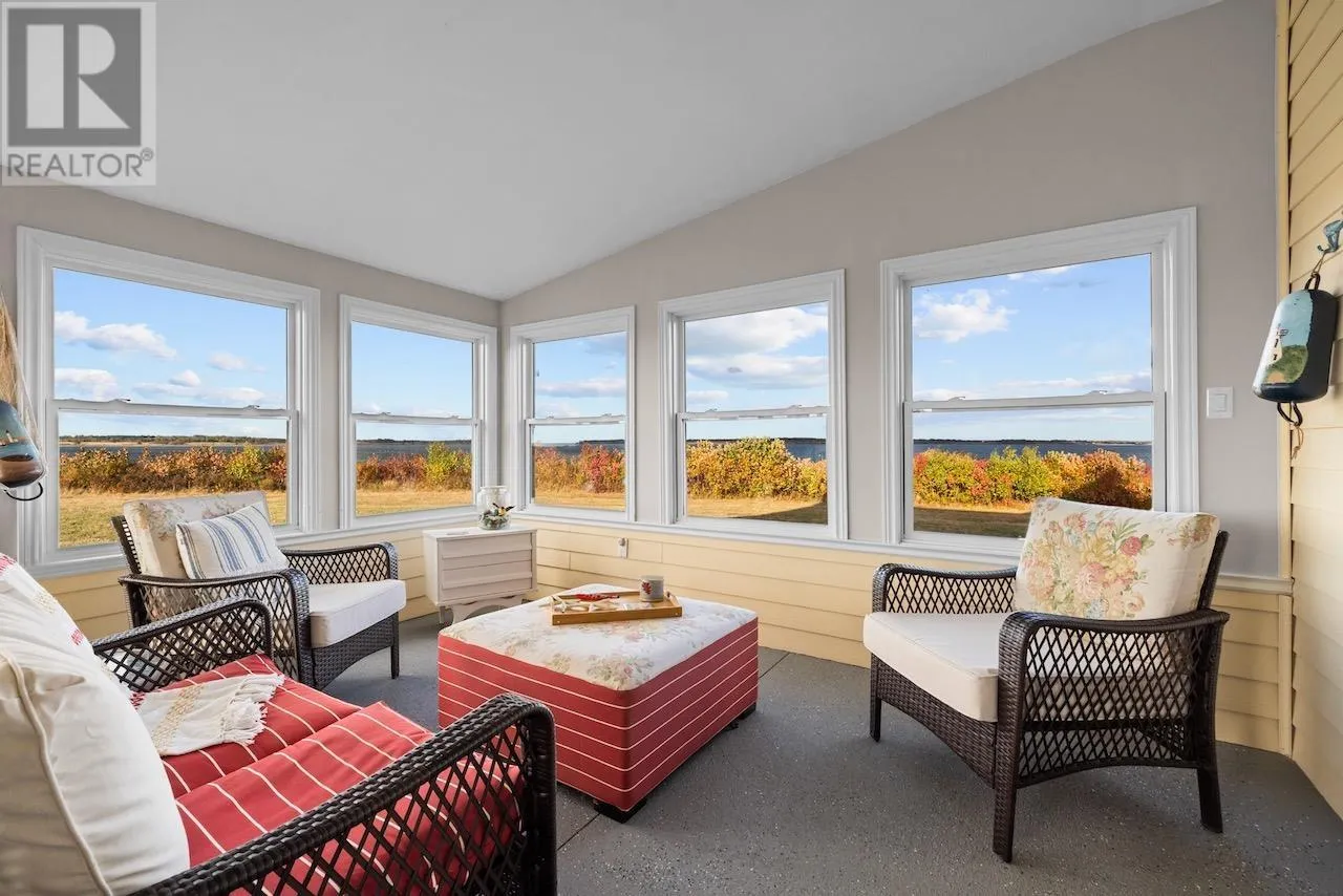 Welcome to 128 Red Head Road, an extraordinary waterfront estate where quaity meets country elegance. Nestled on 20 pristine acres with over 720 feet of private shoreline, this magnificent 3-bedroom, 4-bathroom residence embodies refined rural living at its finest, offering sweeping panoramic views and world-class equestrian amenities. Upon arrival, the grandeur begins with a 36?x28? heated, powered garage, complemented by an impressive 34?x48? + 32?x15?10? barn featuring multiple stalls and direct access to 8 acres of fully fenced paddocks - a dream come true for horse lovers. Step inside and be welcomed by a spacious foyer leading to the attached heated garage, complete with a utility room, half bath, and washer/dryer. The heart of the home is the great room, where soaring ceilings and floor-to-ceiling windows bathe the space in natural light. Here, custom cabinetry, a two-tier island, and a sandstone-hearth propane fireplace create a warm yet sophisticated atmosphere. The open layout flows effortlessly to the outdoor sitting area and the tranquil sunroom, designed for comfort with insulated walls, vinyl windows, and breathtaking views of the bay. The primary suite is a serene retreat, featuring a private entrance to the sunroom, walk-in closet, ensuite with double vanity, laundry area, and its own heat pump. Upstairs, two elegant bedrooms share a Jack & Jill bathroom; one opens to a private balcony overlooking the shimmering water. A dedicated office and generous storage complete this level. Every detail has been meticulously designed for comfort and performance, including geothermal heating and cooling, generator hookup, ultraviolet water purification, 200-amp electrical service, and provisions for additional underground power lines. A rare offering of beauty, function, and serenity - 128 Red Head Road is more than a home; it?s a lifestyle defined by sophistication, space, and peace. (All measurements approximate; buyers to verify.). (id:27476)