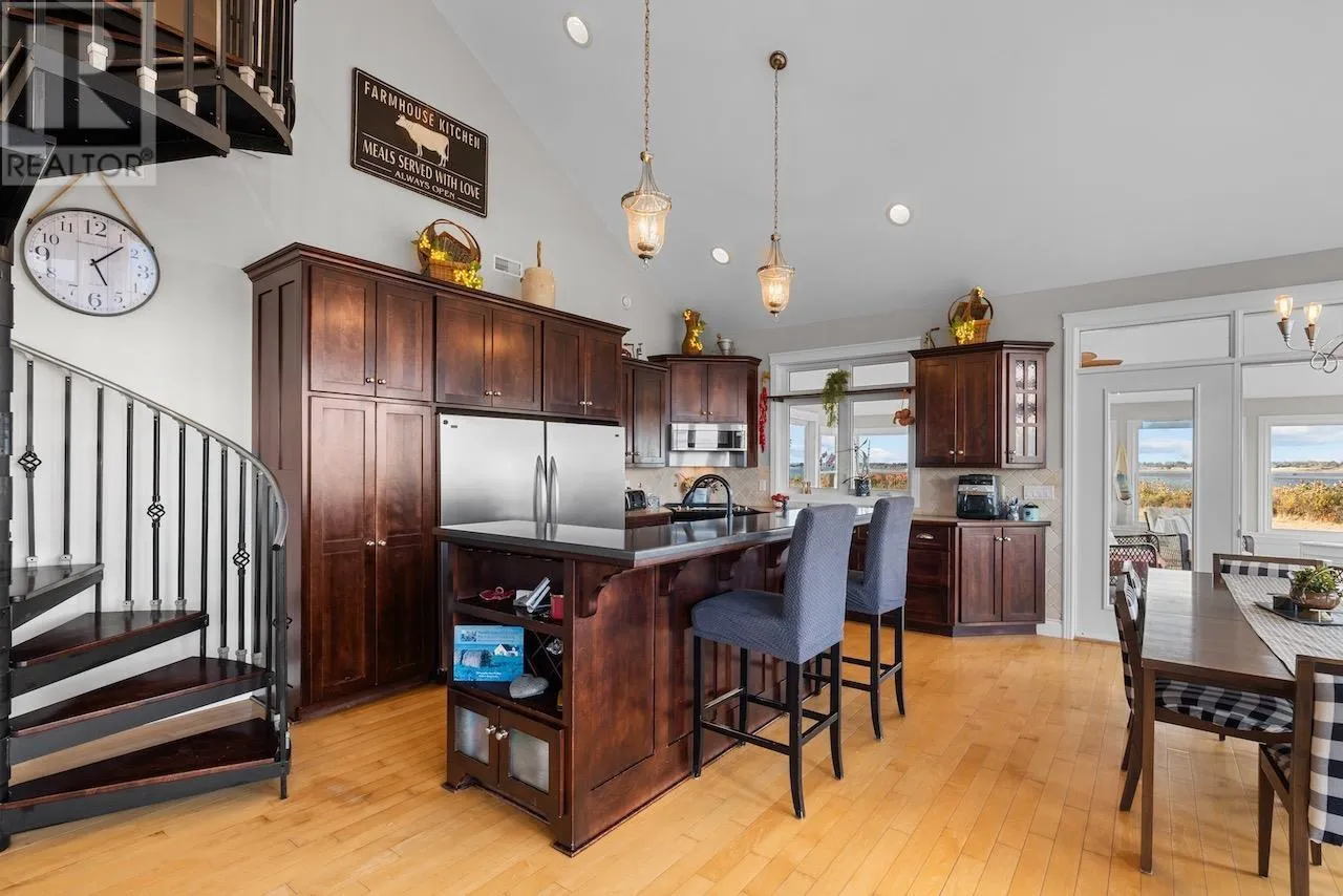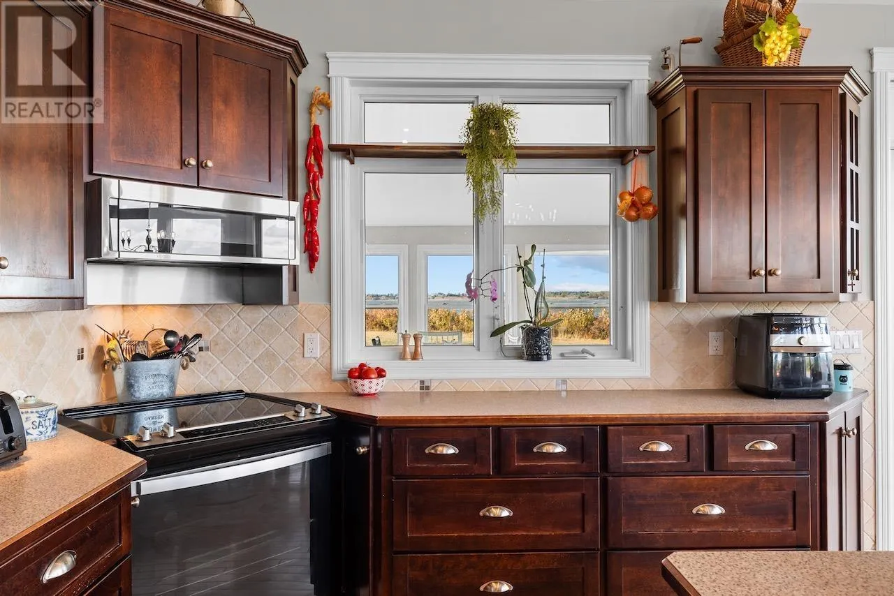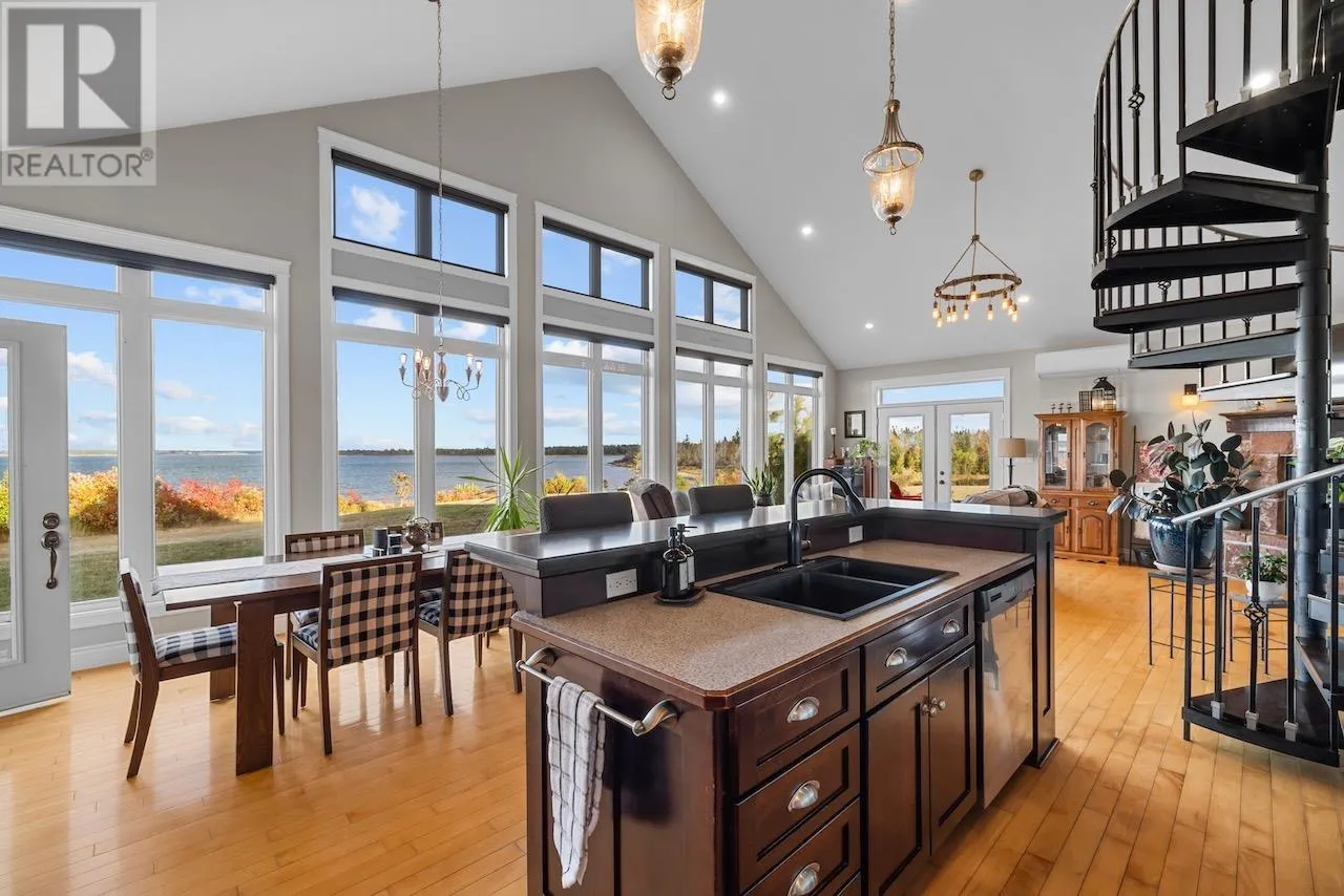 Welcome to 128 Red Head Road, an extraordinary waterfront estate where quaity meets country elegance. Nestled on 20 pristine acres with over 720 feet of private shoreline, this magnificent 3-bedroom, 4-bathroom residence embodies refined rural living at its finest, offering sweeping panoramic views and world-class equestrian amenities. Upon arrival, the grandeur begins with a 36?x28? heated, powered garage, complemented by an impressive 34?x48? + 32?x15?10? barn featuring multiple stalls and direct access to 8 acres of fully fenced paddocks - a dream come true for horse lovers. Step inside and be welcomed by a spacious foyer leading to the attached heated garage, complete with a utility room, half bath, and washer/dryer. The heart of the home is the great room, where soaring ceilings and floor-to-ceiling windows bathe the space in natural light. Here, custom cabinetry, a two-tier island, and a sandstone-hearth propane fireplace create a warm yet sophisticated atmosphere. The open layout flows effortlessly to the outdoor sitting area and the tranquil sunroom, designed for comfort with insulated walls, vinyl windows, and breathtaking views of the bay. The primary suite is a serene retreat, featuring a private entrance to the sunroom, walk-in closet, ensuite with double vanity, laundry area, and its own heat pump. Upstairs, two elegant bedrooms share a Jack & Jill bathroom; one opens to a private balcony overlooking the shimmering water. A dedicated office and generous storage complete this level. Every detail has been meticulously designed for comfort and performance, including geothermal heating and cooling, generator hookup, ultraviolet water purification, 200-amp electrical service, and provisions for additional underground power lines. A rare offering of beauty, function, and serenity - 128 Red Head Road is more than a home; it?s a lifestyle defined by sophistication, space, and peace. (All measurements approximate; buyers to verify.). (id:27476)