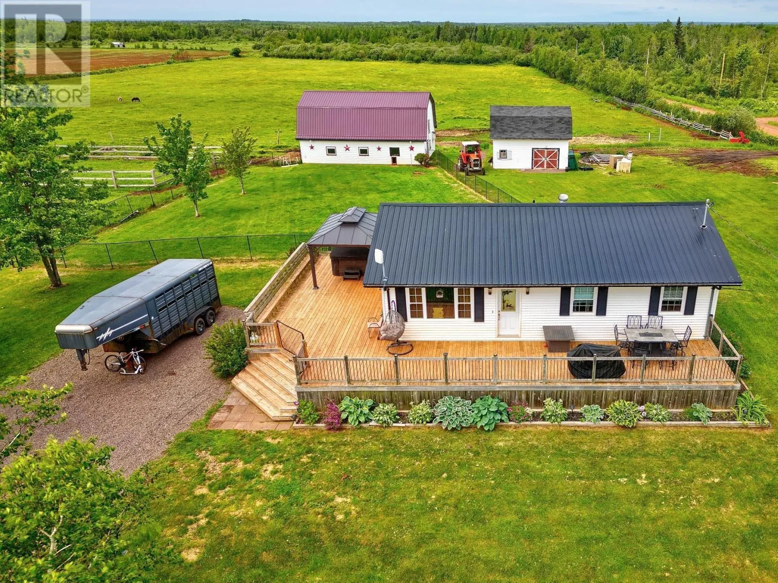 Welcome to your own private slice of PEI countryside?an exceptional 23.39-acre hobby farm in Mount Pleasant. This property offers the perfect blend of rural living, usable land, and a cozy home, ideal for hobby farmers, equestrians, or those seeking space and privacy. The 3-bedroom, 1-bathroom bungalow sits on a paved road and features a functional layout with a bright country kitchen overlooking the fenced backyard and pastures beyond. The living room is warm and inviting with a large front window and access to the spacious front deck?perfect for entertaining. A fenced deck and hot tub off the side entrance create a great space to relax and unwind. The unfinished basement offers excellent potential for future development. Outside, the property is well-equipped for farming or animals, with most fields already fenced for pasture. A 6-stall barn with a 12-ft loft provides ample hay storage and includes its own hydro panel and well with new pump. A drive shed offers additional storage for equipment or recreational vehicles. A stream runs along the back of the property, adding to the natural charm. Ride your horses directly to the beach via nearby Ballum Road?an incredible bonus for equestrian enthusiasts. Recent updates include metal roofs on the house and barn, 200-amp electrical service with updated wiring, new well pump in the barn, fenced pastures, and new appliances. Located just 30 minutes from Summerside, this property offers the peace of country living with convenient access to amenities. Seller is willing to sever the home with approximately 5 acres, offering flexibility for buyers and potential to avoid IRAC requirements (buyer to verify). Don?t miss this unique opportunity to own a versatile hobby farm in a beautiful setting. (id:27476)