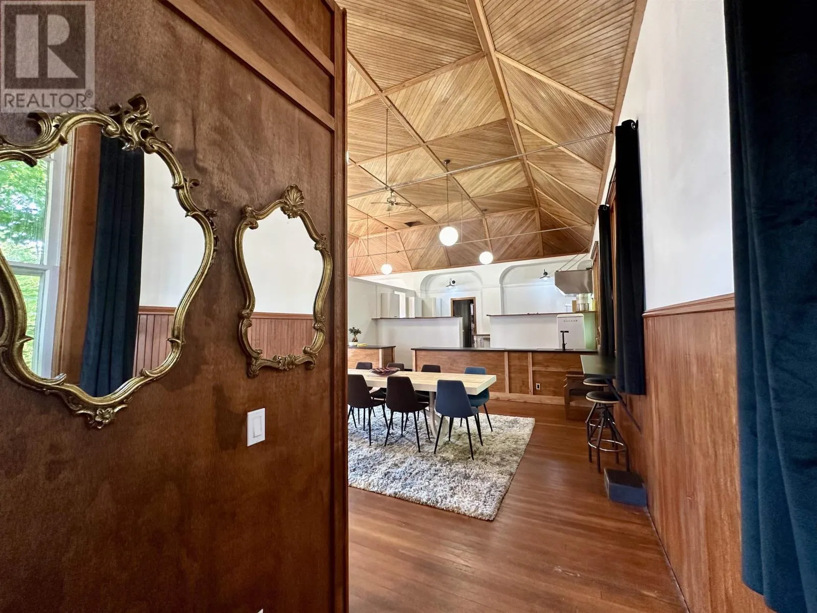 Nestled in a charming village in southeastern PEI, this historic church has been thoughtfully transformed into 2 stunning and modern apartments. Perfect for a family with teenagers seeking independence, a combined generational family dwelling, or two separate apartments with a push-code dividing door, this property offers flexibility with modern convenience. Located just a short walk from the wharf, where you can watch the boats come and go or grab a bite at your local eatery. You are also a short drive from many beautiful beaches. There is a convenience store and a liquor outlet in the village so you'll never be without essentials, and you are only a short 20-minute drive to Montague which provides everything else you may need. Every detail in the restoration of this historic building has been carefully considered, with custom finishes and furniture that maintain its original character while adding luxury and modern amenities. Each apartment features a spacious open concept living space with a high-end custom kitchen, a seamless flow from the kitchen to the living and dining areas (perfect for entertaining), one bedroom and one custom bathroom (one with a double shower head), laundry facilities, and private entry for convenience and privacy. A push-code door allows for separate or combined living arrangements. The property also boasts a full basement under half of the building, adding more potential living space. Modern finishes blend harmoniously with the meticulously preserved original character of the church, creating a unique living experience in a serene maritime setting. Additional features include a UV light system, German electric on-demand hot water system, water softener, 2 breakfast nooks, 3 lounge/seating areas, 2 dining areas, a 400-amp electrical service, and municipal sewer. Zoned as Comm. Mixed Use, this 0.26 acre property offers endless options. Whether you're looking for a unique family home or a versatile investment, this pro (id:27476)
