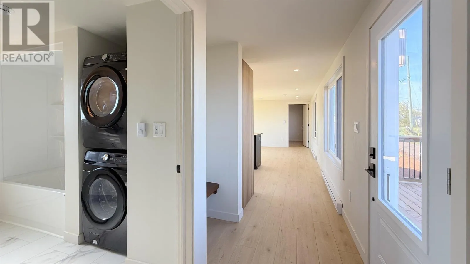Take Steel Road to the end turn right onto Fox Trail Lane property at the end on both left and right side. Waterfront Atlantic Modern Home with Stunning Malpeque Bay Views. This superior-built Atlantic Modern home offers the perfect blend of quality craftsmanship, energy efficiency, and coastal lifestyle ? all set on a picturesque waterfront lot with sweeping views of Malpeque Bay. Set back from the shoreline for privacy and serenity, this home is ideal for enjoying PEI?s natural beauty year-round.. Inside, the bright and open layout features frameless-style kitchen cabinets with soft-close doors and drawers, complemented by a peninsula with overhang ? perfect for casual dining and entertaining.The home includes 2 spacious bedrooms, with the primary bedroom featuring elegant built-in cabinetry and his-and-her closets at either end of the room. A stylish main bathroom includes a porcelain vanity sink and stackable high-end laundry machines for modern convenience. Additional highlights include: 200 AMP electrical service, High-efficiency electric heating, ICF foundation for durability and energy savings, Front and back decks for enjoying sunrise or sunset, Crawl space with exterior hatch for storage or seasonal access, Quiet, private setting with breathtaking waterfront views.This property includes four PID numbers, two Water front and 2 row back. Whether you're looking for a year-round home, seasonal getaway, or investment property, this unique offering on Malpeque Bay is not to be missed. (id:27476)