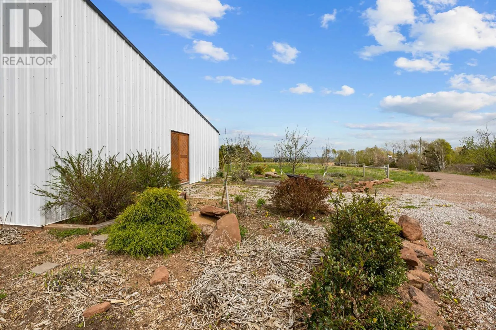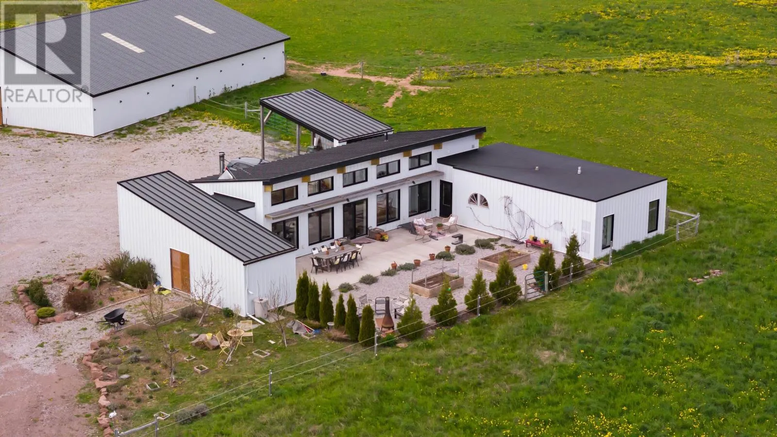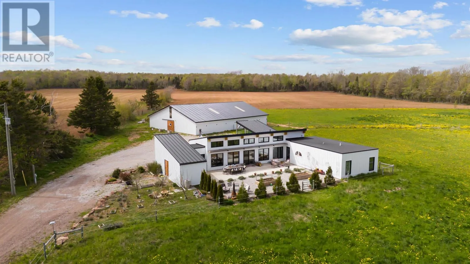 Custom-Built Hobby Farm Oasis Just Minutes from the City Welcome to this stunning five-year-old custom-designed home, nestled on a picturesque 7.5-acre hobby farm with sweeping views of PEI?s south shore. Located just eight minutes from Cornwall and fifteen minutes from Charlottetown, this property offers the perfect balance of peaceful rural living and convenient access to city amenities. Inside, the home impresses with its architectural charm, featuring custom-crafted beams and a vaulted ceiling that draws your eye toward the expansive courtyard. The European-inspired design delivers both character and high energy efficiency, creating a warm and functional living space. This thoughtfully designed home includes: Two bedrooms and two full bathrooms, An open-concept layout that?s ideal for entertaining, A large storage area easily convertible into a third bedroom, A 60x80 livestock arena with direct access to the pasture fields. Enjoy daily convenience with nearby access to a grocery store, bakery, pharmacy, hair salon, and physiotherapy clinic?all within a short drive. For those seeking adventure and outdoor leisure, the area is rich with recreational destinations. Nearby highlights include Argyle Shore Provincial Park, Bonshaw Provincial Park, Skmaqn?Port-la-Joye?Fort Amherst National Historic Site, and three golf courses. The renowned Matos Winery and Distillery also provides the perfect local spot for wine tasting and weekend outings. Whether you're starting a hobby farm, seeking privacy, or simply looking for a unique and peaceful place to call home, this property delivers on all fronts?comfort, charm, functionality, and natural beauty. Schedule your private showing today and experience the unmatched lifestyle this property has to offer. (id:27476)