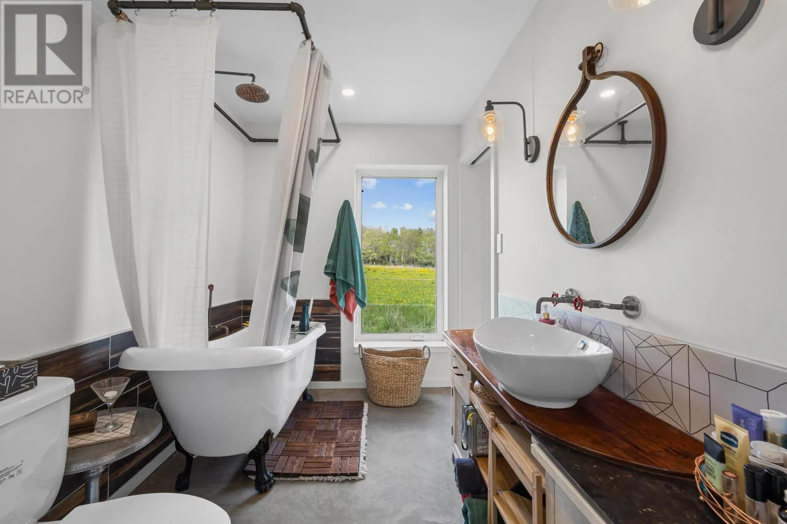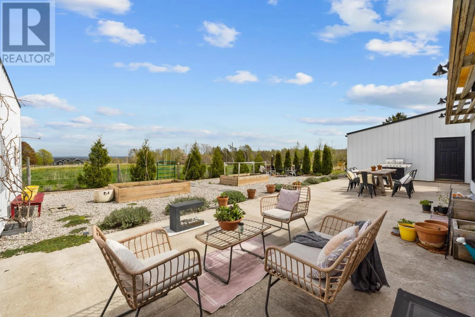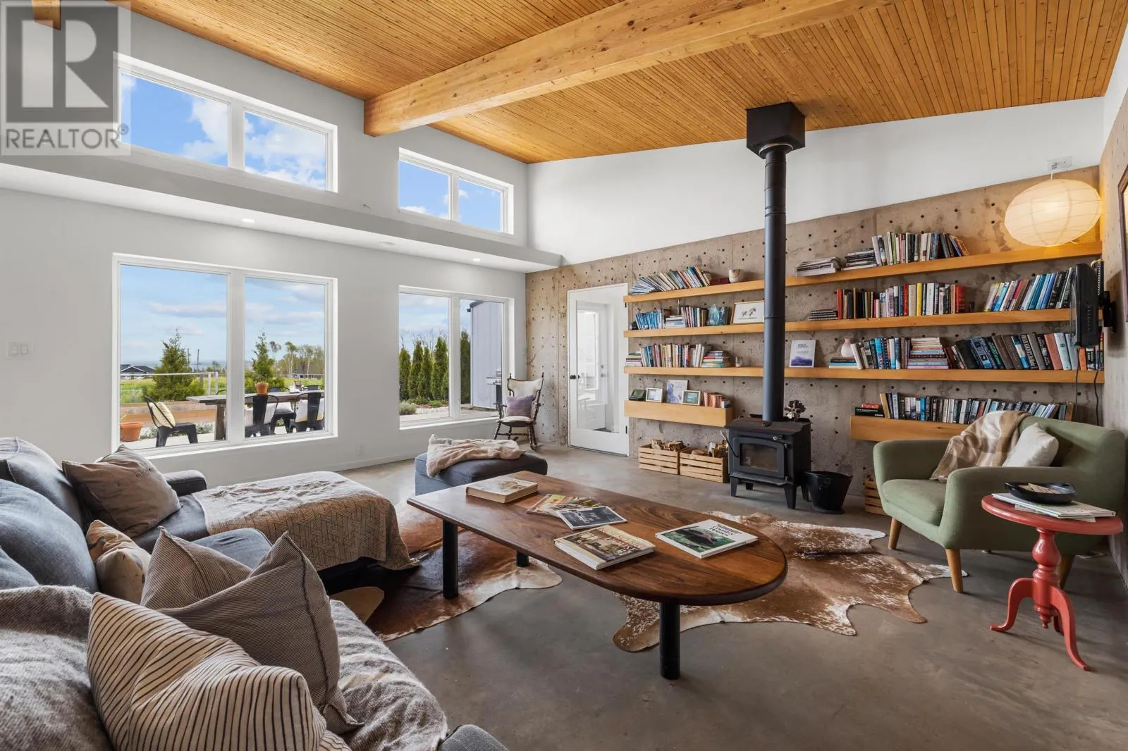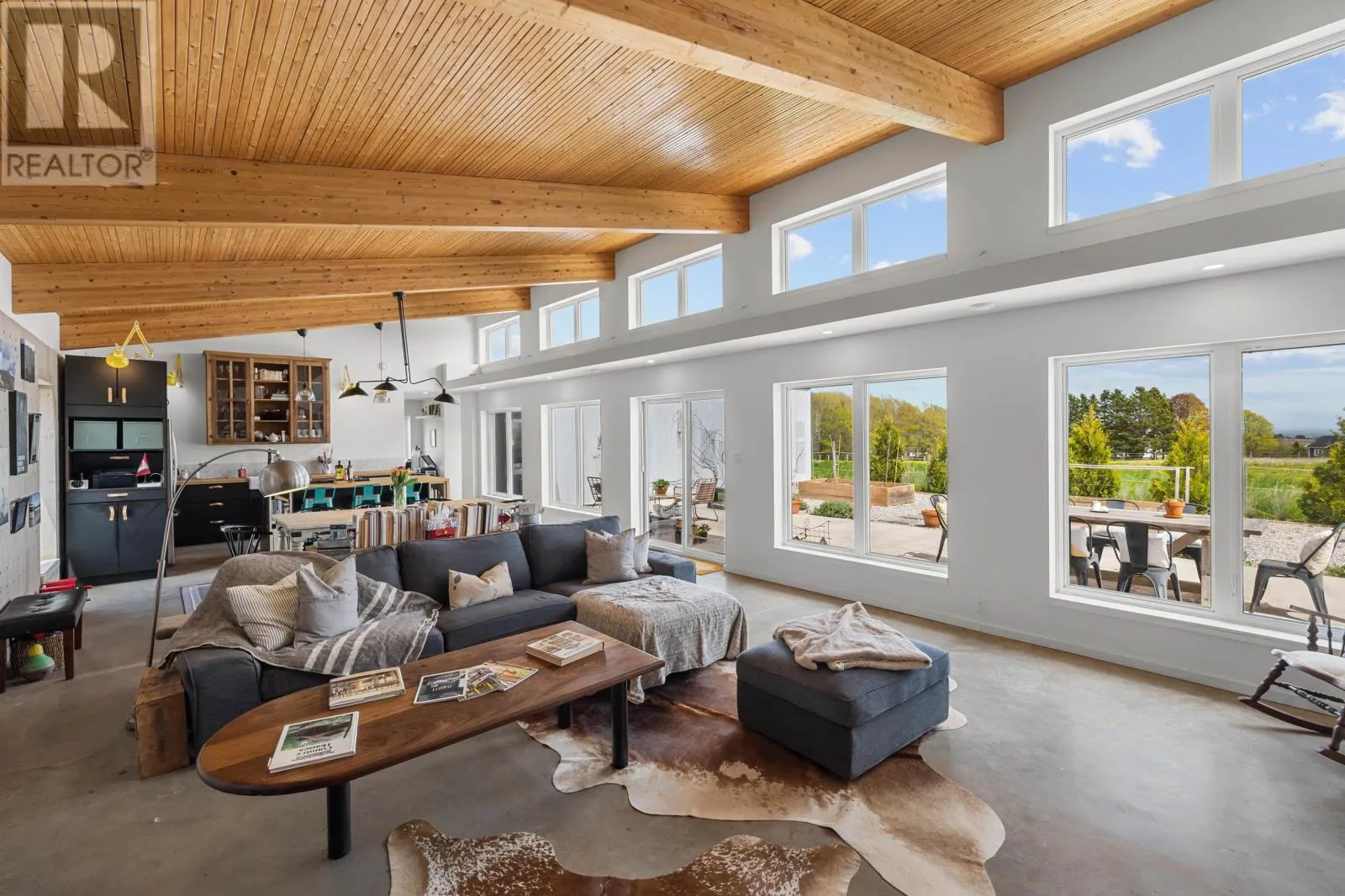 Custom-Built Hobby Farm Oasis Just Minutes from the City Welcome to this stunning five-year-old custom-designed home, nestled on a picturesque 7.5-acre hobby farm with sweeping views of PEI?s south shore. Located just eight minutes from Cornwall and fifteen minutes from Charlottetown, this property offers the perfect balance of peaceful rural living and convenient access to city amenities. Inside, the home impresses with its architectural charm, featuring custom-crafted beams and a vaulted ceiling that draws your eye toward the expansive courtyard. The European-inspired design delivers both character and high energy efficiency, creating a warm and functional living space. This thoughtfully designed home includes: Two bedrooms and two full bathrooms, An open-concept layout that?s ideal for entertaining, A large storage area easily convertible into a third bedroom, A 60x80 livestock arena with direct access to the pasture fields. Enjoy daily convenience with nearby access to a grocery store, bakery, pharmacy, hair salon, and physiotherapy clinic?all within a short drive. For those seeking adventure and outdoor leisure, the area is rich with recreational destinations. Nearby highlights include Argyle Shore Provincial Park, Bonshaw Provincial Park, Skmaqn?Port-la-Joye?Fort Amherst National Historic Site, and three golf courses. The renowned Matos Winery and Distillery also provides the perfect local spot for wine tasting and weekend outings. Whether you're starting a hobby farm, seeking privacy, or simply looking for a unique and peaceful place to call home, this property delivers on all fronts?comfort, charm, functionality, and natural beauty. Schedule your private showing today and experience the unmatched lifestyle this property has to offer. (id:27476)