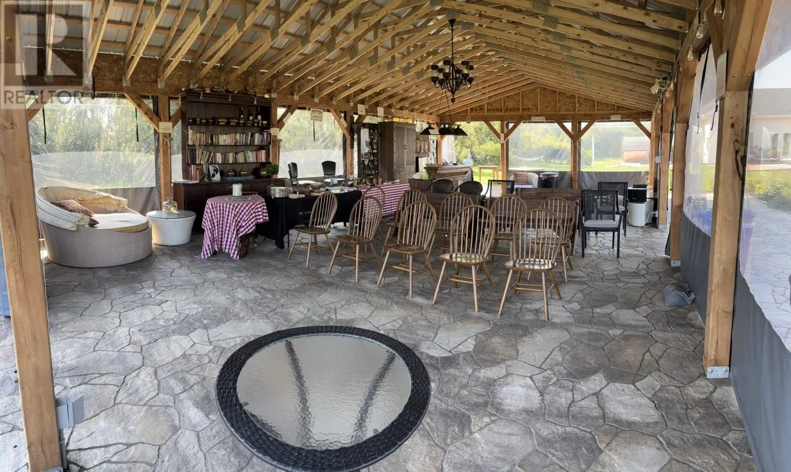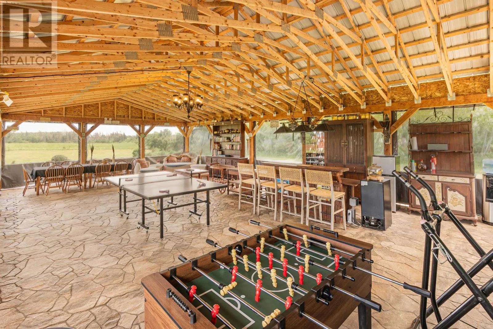 Seize a rare chance to own a magnificent, custom-designed estate in beautiful Prince Edward Island, perfectly positioned as a turnkey hospitality business. This expansive property is an established destination, offering eight luxurious rooms, each with its own en-suite bathroom, capable of comfortably accommodating up to 18 guests for full-house rentals. The main floor is an entertainer's dream, featuring a spacious dining room ideal for large gatherings, a gourmet kitchen equipped for high-volume catering, and a welcoming family room that enhances guest experience. Year-round amenities include a large indoor heated saltwater pool and an outdoor hot tub and sauna, providing unparalleled guest comfort and extending the operational season. Beyond the main residence, an impressive outdoor event pavilion is a key asset, providing a dedicated, income-generating space for a variety of functions. This versatile venue is perfectly suited for hosting weddings, special celebrations, corporate retreats, and more, offering substantial revenue diversification and growth potential. Strategically located in Prince Edward Island, this estate offers guests the ultimate convenience. It is just minutes away from championship golf courses, pristine beaches, acclaimed restaurants, and popular family fun parks, ensuring a constant draw for visitors and enhancing the property's appeal as a prime tourist destination. This is more than just real estate; it's a strategically designed and fully operational business poised for continued success in PEI's thriving tourism and event market. There is also a 2-bed, 1-bath residence for owners or staff. (id:27476)