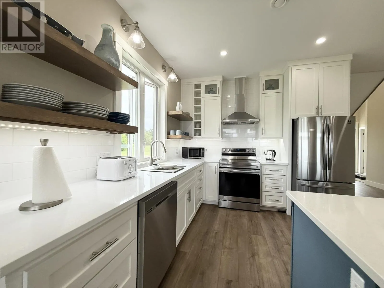 Experience coastal living at its finest in this charming two-story modern home, boasting a timeless exterior design that perfectly complements its picturesque surroundings. This stunning 4 bedroom, 2 bathroom residence offers breathtaking water views and a thoughtfully designed interior and approx 1,800 square feet. The main floor features a spacious open-concept kitchen, living, and dining area, Ideal for entertaining family and friends. You will also find a convenient laundry/utility room, a comfortable bedroom, and a luxurious master suite complete with an ensuite bathroom. Upstairs, two additional bedrooms, a full bathroom, and a versatile great room provide ample space for family and guests. This home is ideally situated near the renowned North Rustico Beach, top notch golf courses, delightful local restaurants, a charming bakery, a newly renovated grocery store, and a state of the art Olympic sized rink and fitness center. Families will appreciate the proximity to a school that offers both English and French. Enjoy leisurely strolls in nearby parks, indulge in treats from local ice cream shops, and immerse yourself in all the charm the North Shore has to offer. Furniture is included with this amazing home and there is a home warranty. (id:27476)