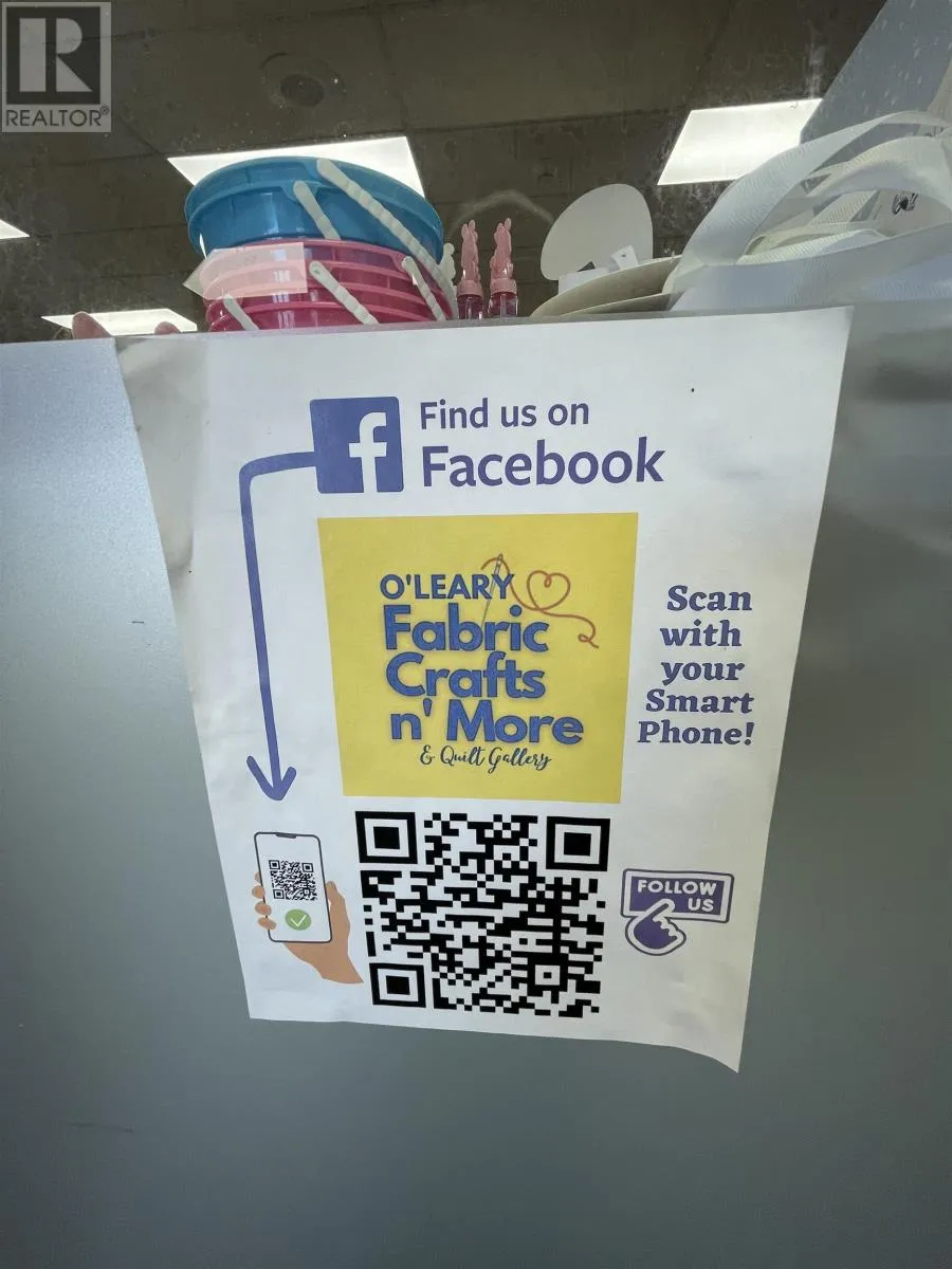 Located in O'Leary at 536 Main Street Here is an opportunity to own your own business. Known as Fabric Crafts n More and Quilt Gallery. It offers the best selection of the best 100% cotton fabrics, yarns, crafts and notions east of Montreal. Own your own in house manufacturing blanket facility with 3500 + bolts of fabric to choose from. Includes a Janome long arm Quilting Machine as well as many other Janome sewing machines and this business is also a representative dealer for Janome Sewing Machines. This business for over 30 years has been well established and the go to location for the many quilters, crafters and hobbyists for supplies. See their extensive array of products online or visit the store.. This unique and professional business is easily found online from goggle, tourism sites, trip advisor, facebook, local directories, and as well their quilting blog. You can easily expand and sell and market everything you have from your store with online sales orders and the new shopify, the possibilities are endless. Island vendors and outlets now carry blankets and other gifts made from the Gallery. Tech support and staff are also available for training or coaching should the new owner need support. This turn key business has an exclusive Anne of Green Gables prints for wall hangings, blankets etc and the newest prints of Island Lighthouses is ready to be marketed around the globe. The main location is leased at 536 Main Street, O'Leary with opportunity for expansion and enough product for the 2nd island location. Call today. (id:27476)