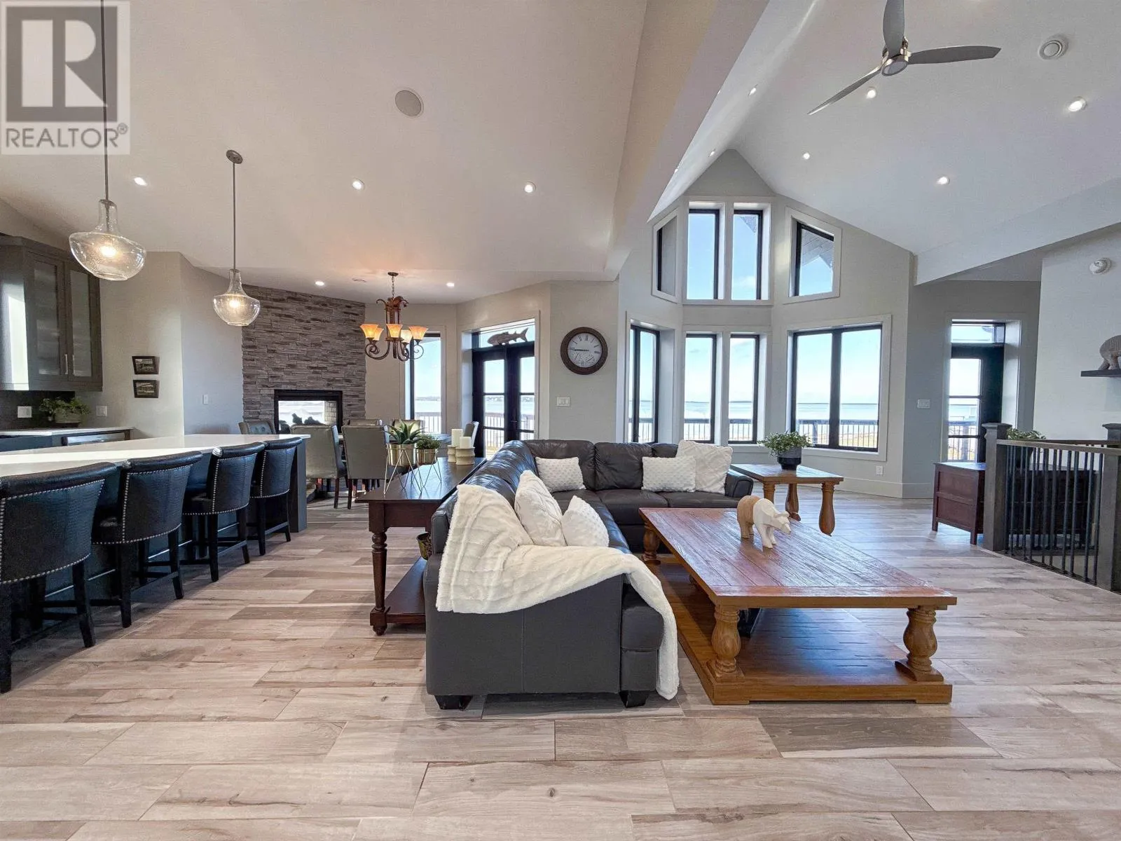 From Charlottetown, take Brackley Point Road North to Brackley Beach. Turn Left on Route 6/Portage Road, to Oyster Bed Bridge, to Sunset Drive on Right. Follow Lane toward water to #151. Experience Custom Luxury Craftsmanship on the Water! This stunning, Custom-Built ICF chalet-style home is situated on a beautiful 1 Acre lot that overlooks the waterfront of Rustico Bay. This home features a blend of architectural elegance and energy efficiency. Step inside to find a breathtaking open-concept living space defined by soaring ceilings and sweeping panoramic water views. The chef-inspired kitchen is a showpiece, featuring a massive island with quartz countertops, a walk-in pantry, and high-end appliances. The dining area features a unique double-sided indoor/outdoor propane fireplace that is open to the interior great room and to the exterior massive back deck. Whether you are hosting inside or enjoying the covered outdoor sitting area, this space is designed for entertaining and relaxation, complemented by the integrated speaker system throughout the home. The main floor has a bright, primary suite designed as a true sanctuary overlooking the water, complete with a large walk-in closet and a spa-like ensuite bath. The walk-out lower level is equally impressive, offering a Family Room and Gym plus two additional generously sized guest bedrooms, each featuring its own ensuite bathroom, perfect for family and/or friends to enjoy total comfort and privacy. A large Laundry room and plenty of storage space complete the lower level. Constructed fully with Insulated Concrete Forms (ICF) for superior insulation, soundproofing and high efficiency. Year-round comfort is provided by luxurious in-floor propane heating and a heat pump providing both heating and cooling. This home was designed to Balance Indoor and Outdoor living seamlessly. A Fantastic Beach Front Estate just a short drive into Charlottetown. (id:27476)