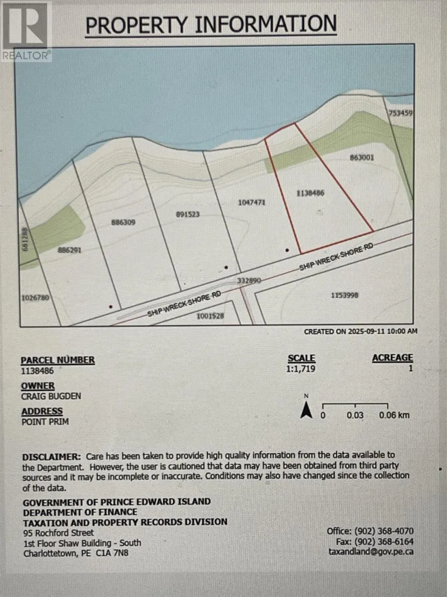 Escape the hustle and bustle of the city and own a piece of paradise in the spectacular Point Prim. Over the years, Point Prim has become a must-see area of Prince Edward Island and a sought-after area to vacation or summer seasonal residency. Enjoy the amazing sunsets as well as watching many cruise ships coming to and from the Charlottetown Harbour. This 1 Acre lot is two miles from one of the best seafood restaurants on PEI and the view is second to none. There is a protective 60-foot buffer to the top of the bank allowing each lot access to a new shared aluminum staircase for your access to the beach. The lot has been surveyed and has had a perk test done. This is a water lovers dream lot! (id:27476)