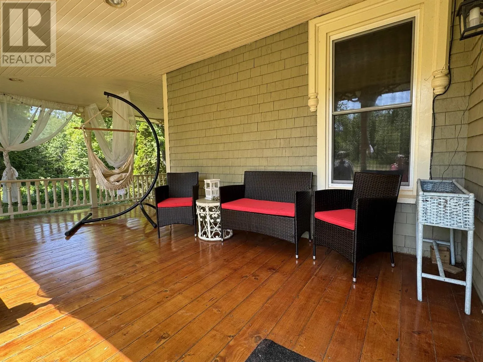 Western Road, Highway 2 to Portage to Bay Road, (see Re/Max Real Estates sign). Nestled amongst the trees is where you will find this beautiful forever home or vacation property. This is a rare opportunity to own a piece of PEI history - the Elmer Sharbell house in Portage. Featuring classic Island architecture inside and out, the home displays craftsmanship of a bygone era including high ceilings, deep baseboards and wide trim, hand-turned posts and balusters, intricately patterned wood floors, and the only Douglas fir veranda in West Prince. Lovingly restored and maintained, the cedar-sided 2.5 storey house has been updated everywhere it counts: 2025 new heat pump with 3 heads - one on each level, 200 amp service, panel and convection heaters, new ensuite bathroom, 2024 new well, water pump, and UV light, 2021 asphalt roof, 2019 septic tank, 2015 high efficiency oil furnace and electric hot water tank, drywall and wiring, central vac ready, poured foundation with gravel basement (crawl space). Consists of 3 bedrooms, 2½ baths, and a finished loft providing 2100 sq.ft. of living space. Relax on the 490 sq.ft., covered veranda or in the 140 sq.ft., enclosed porch. The only house on Bay Road, this lovely home is located only 200 feet from Hwy 2 and a Confederation Trail access point and is surrounded by beautiful mature trees and lawns. Elmer Sharbell a Lebanese immigrant, ran a fish market and seafood shipping business, a hotel, several sawmills, various stores, and was heavily involved in the silver fox industry, making Portage a booming place in his day. Elmer bought his house in Egmont Bay in 1920 and set out to haul it across the ice to Portage. Breaking through at one point near the shore, the 2 1/2-storey structure sat on the bottom of the Bay for the remainder of the winter until a rescue operation involving 26 teams of horses and more than 50 men succeeded in raising the house and pulling it to its present location. The seller will provide a $5,000. cash back at closing towards upgrade som (id:27476)