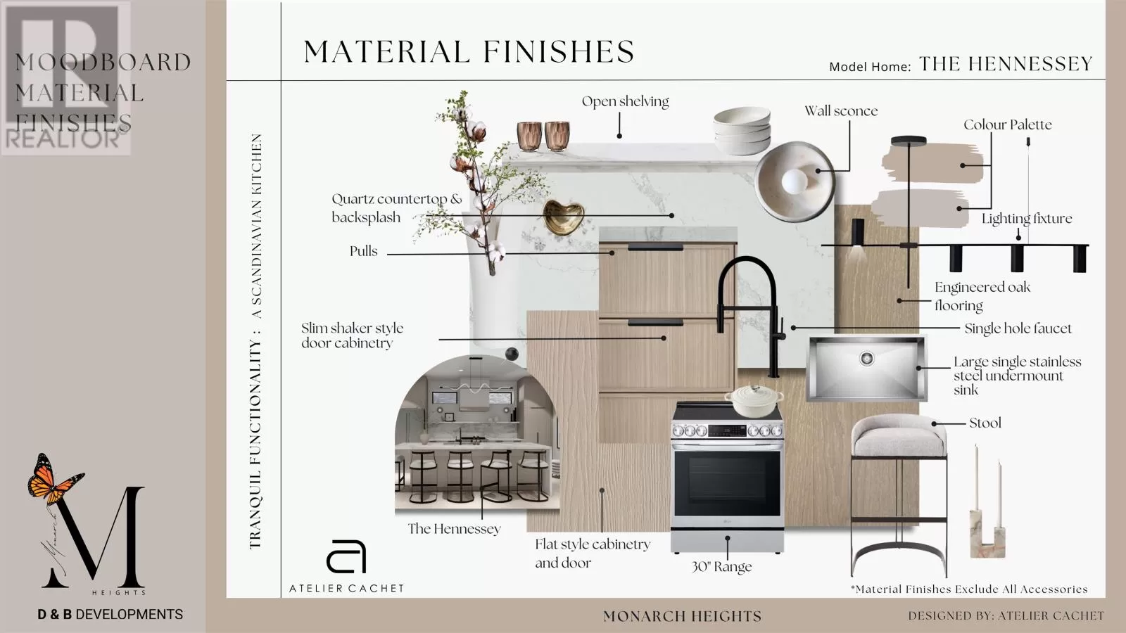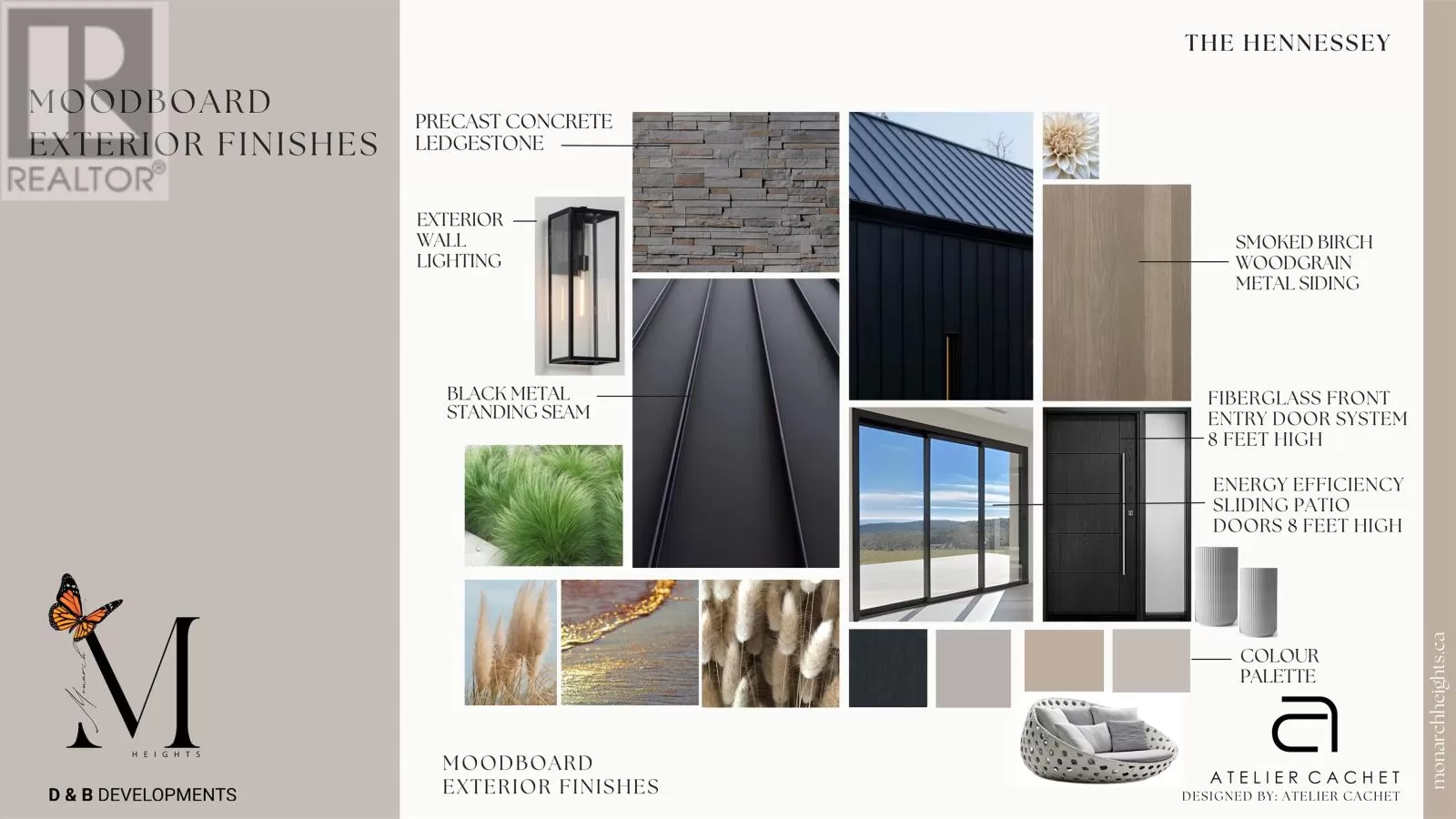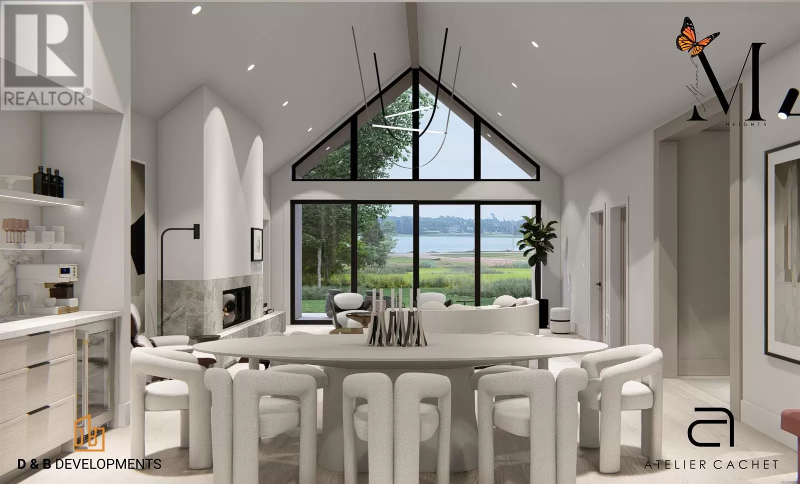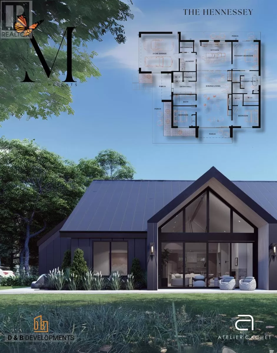 The Hennessey blends striking Scandinavian design with luxurious comfort in a one-level retreat overlooking Rustico Bay. Located in the exclusive Monarch Heights community in Rustico PEI, this 3-bedroom, 3-bath home sits on a .64-acre lot just 15 minutes from Charlottetown. A steep-pitched gable roof, black standing seam metal, and stone exterior give the home bold curb appeal. Inside, vaulted ceilings and floor-to-ceiling windows create a dramatic, light-filled living space. European sliding doors open to the outdoors, while a stunning propane fireplace anchors the living room with elegance and warmth. The designer kitchen features a waterfall quartz island, premium appliances, custom cabinetry, and a built-in coffee bar. The primary suite includes a walk-in closet, a private porch, and a spa like ensuite for everyday indulgence. ICF construction provides exceptional energy efficiency and structural integrity, with the opportunity for buyers to work with an award-winning designer to personalize select finishes. The Hennessey offers modern coastal sophistication - refined, resilient, and beautifully crafted. (id:27476)