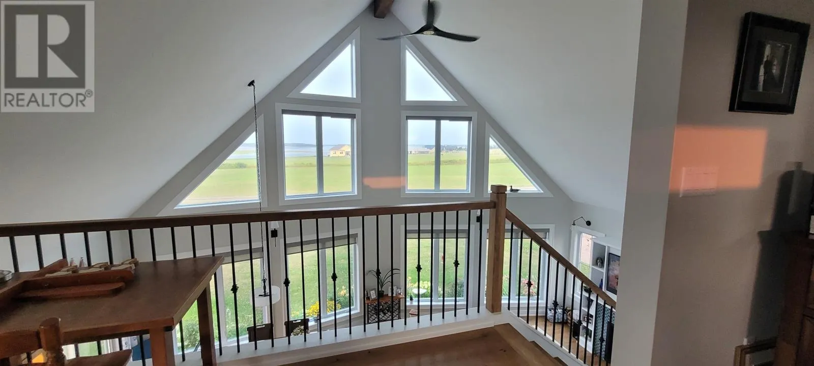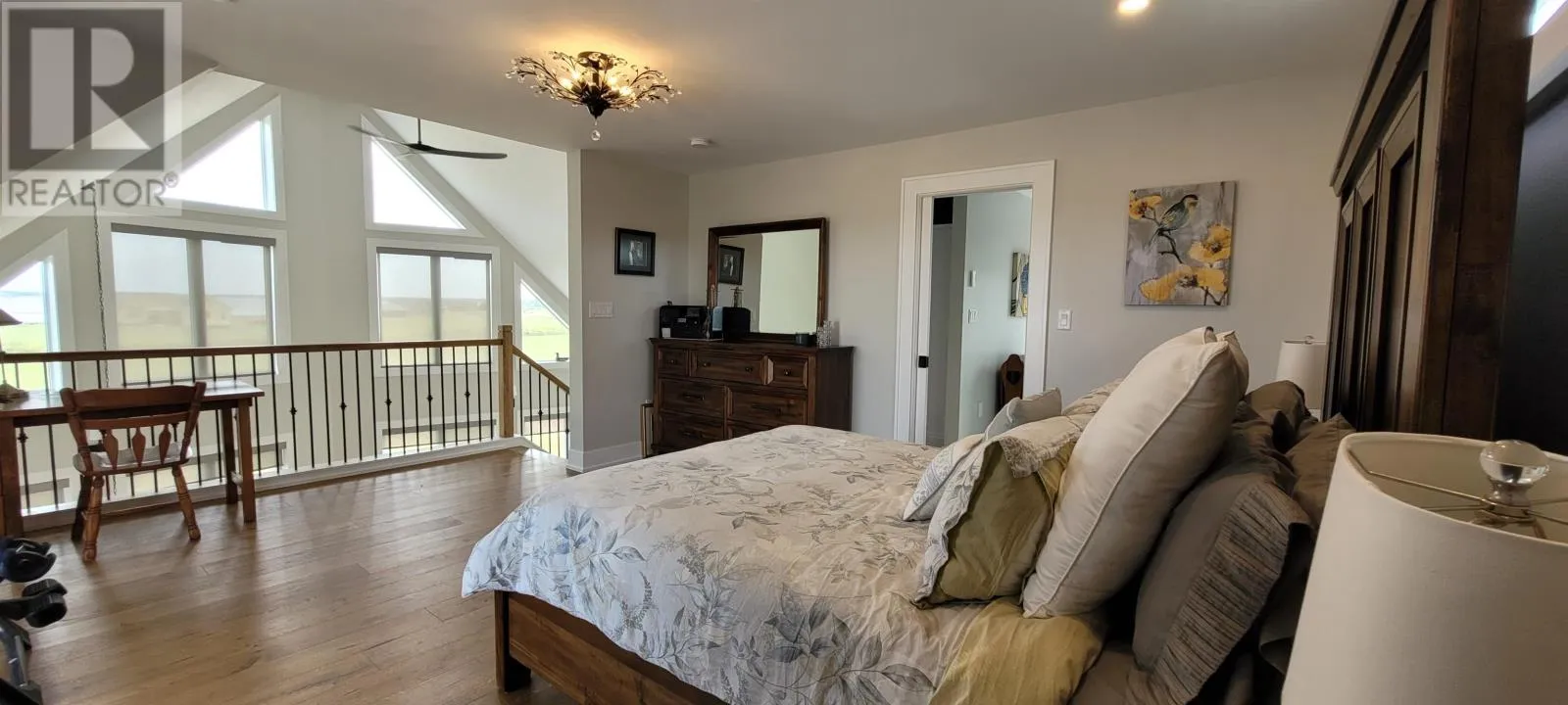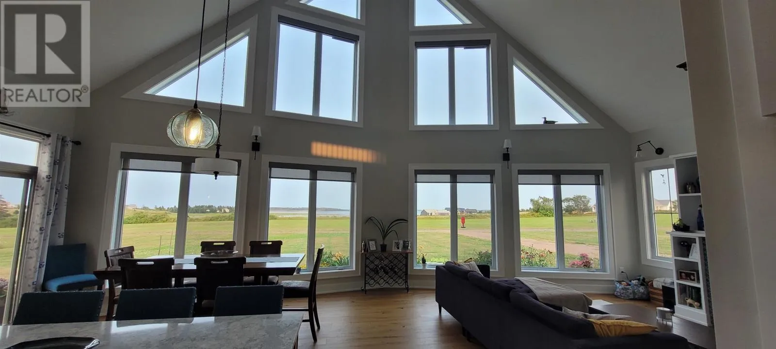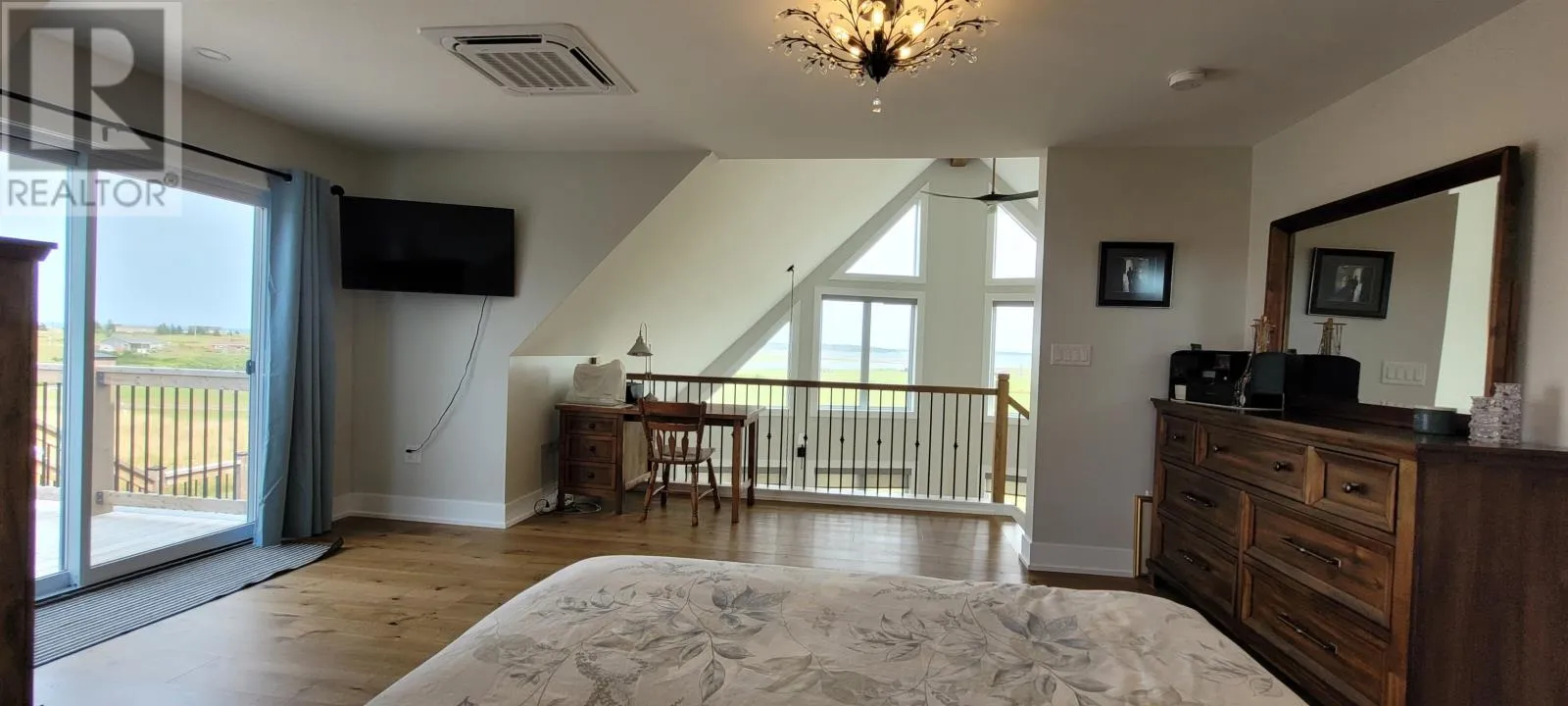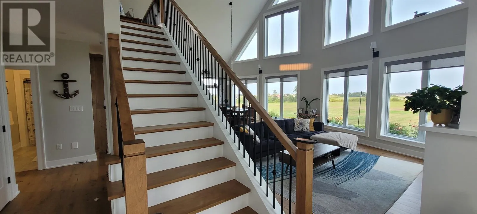 Off Rte # 6 at Gallants Clover Farm Store onto Rte # 243 approx 2 kms on right onto Ocean Vista Dr to last home on left. Custom Built Contemporary Chalet style Waterview home only 2 years old, built with Exceptional Quality throughout on a large level lot in the sought after area of South Rustico within 3 mins of Grocery store with home made baking goods and Gas Bar; a short distance to some of PEI's best Beaches. Also within 10 mins to 6 Golf courses , many Gourmet Restaurants and only 20 mins to the Capital city of Charlottetown & Airport. This home was custom designed by the owners and as soon as you enter the property you get the feel the Owners have put lots of thought into creating a beautiful country paradise. As you enter the home you will feel the spaciousness with the Cathedral ceilings and floor to ceiling windows. The Living/Greatroom with Mantel & Custom Cabinetry encasing the Propane Fireplace and TV. Amazing waterviews, not to mention the Sunrises while having your morning coffee. The Custom built Kitchen C/W Granite Countertops, S/S Appliances, Large Island, Pantry with pullouts & Built in Microwave and High volume Range hood over propane Cooktop & Oven and 36" Fridge. Dining room off kitchen with Patio Door to 28' x 14' Concrete Patio. A Guest bedroom , Full Bath c/w Heated floor, Laundry room c/w Heated floor & Washer & Dryer and Utility room complete main floor. Engineered Hardwood flooring throughout. Beautiful open Staircase leads to Owners suite with spacious Bedroom, En-Suite bath with walk-in shower c/w Heated floor and large Walk-in Closet along with another Patio Door to a 10' x 14' Deck with views of the Ocean!! and stairs to concrete patio. Many built-ins throughout add to the convenience for storage. The detached 24' x 28' Heated Garage with 10'6 Ceiling is ideal to keep you Vehicle and any other pcs of equipment along with a great workshop. A very nice garden producing your own Vegetables and flowers with Sunflowers , etc. This home is a Must to view!! Note: All measurements are approximate and should be ver (id:27476)